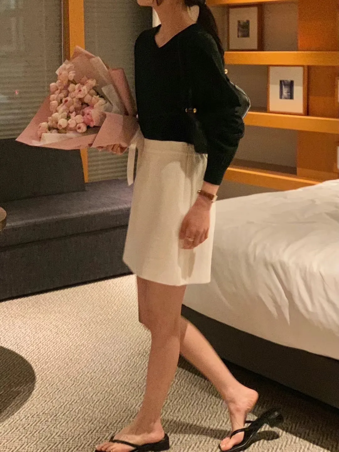 TA594質感印花A字裙 白 黑 官網價$960 線上價$930
