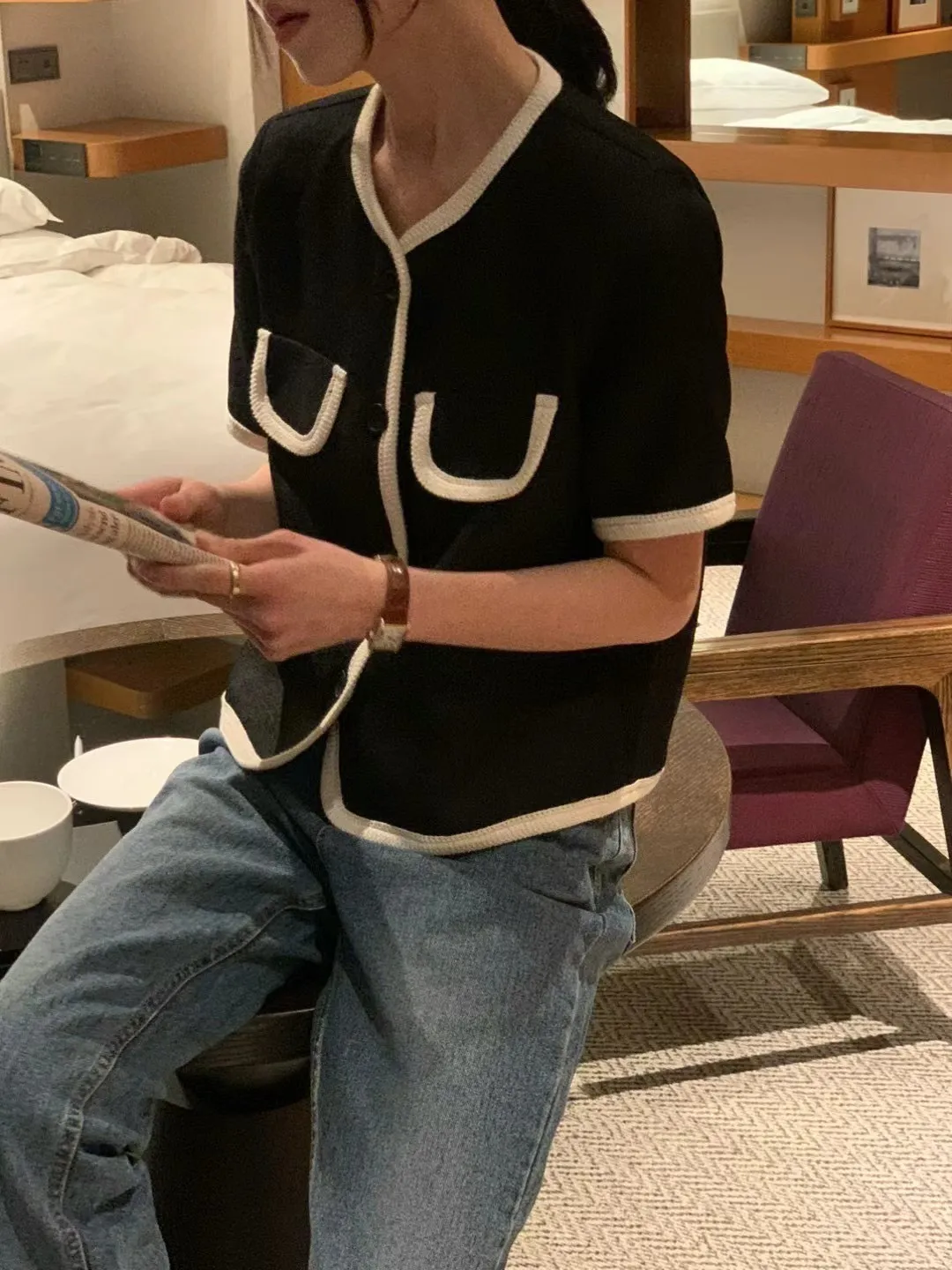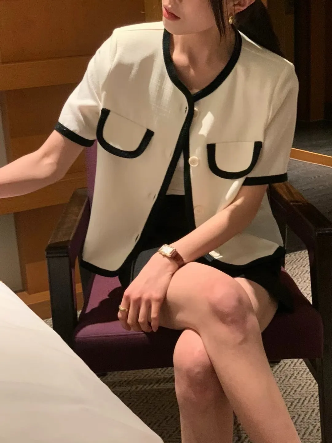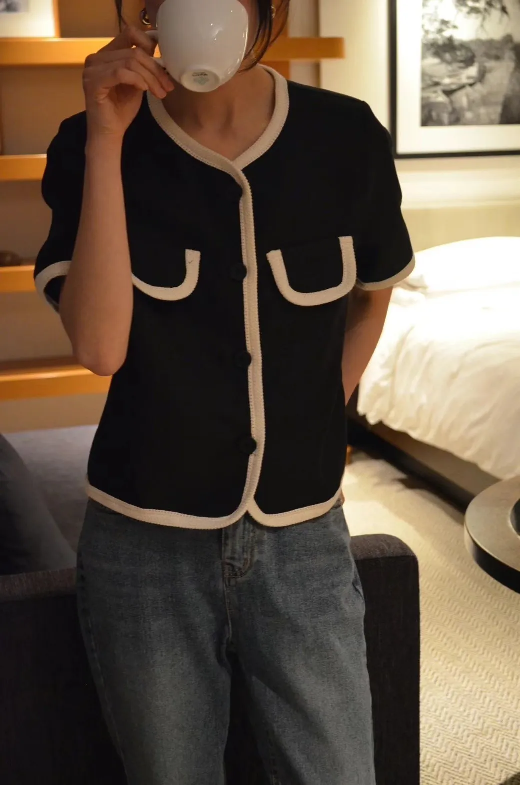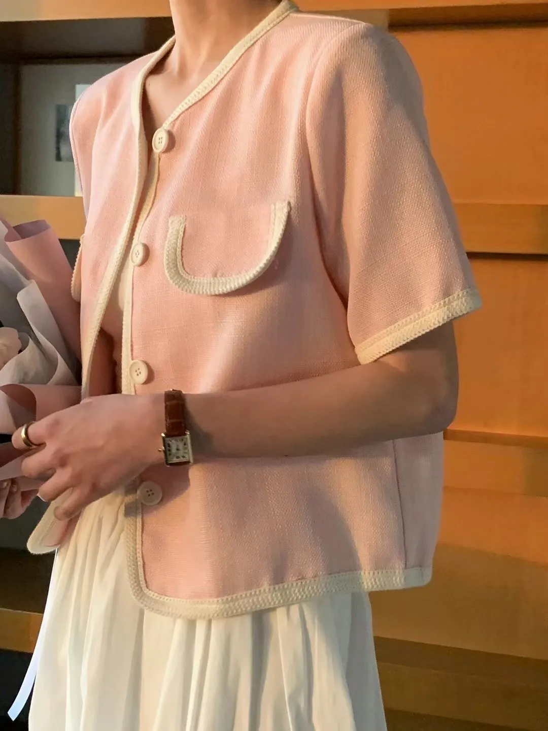 TA602天絲跳色滾邊小香風外套 白 粉 黑 官網價$1720 線上價$1790