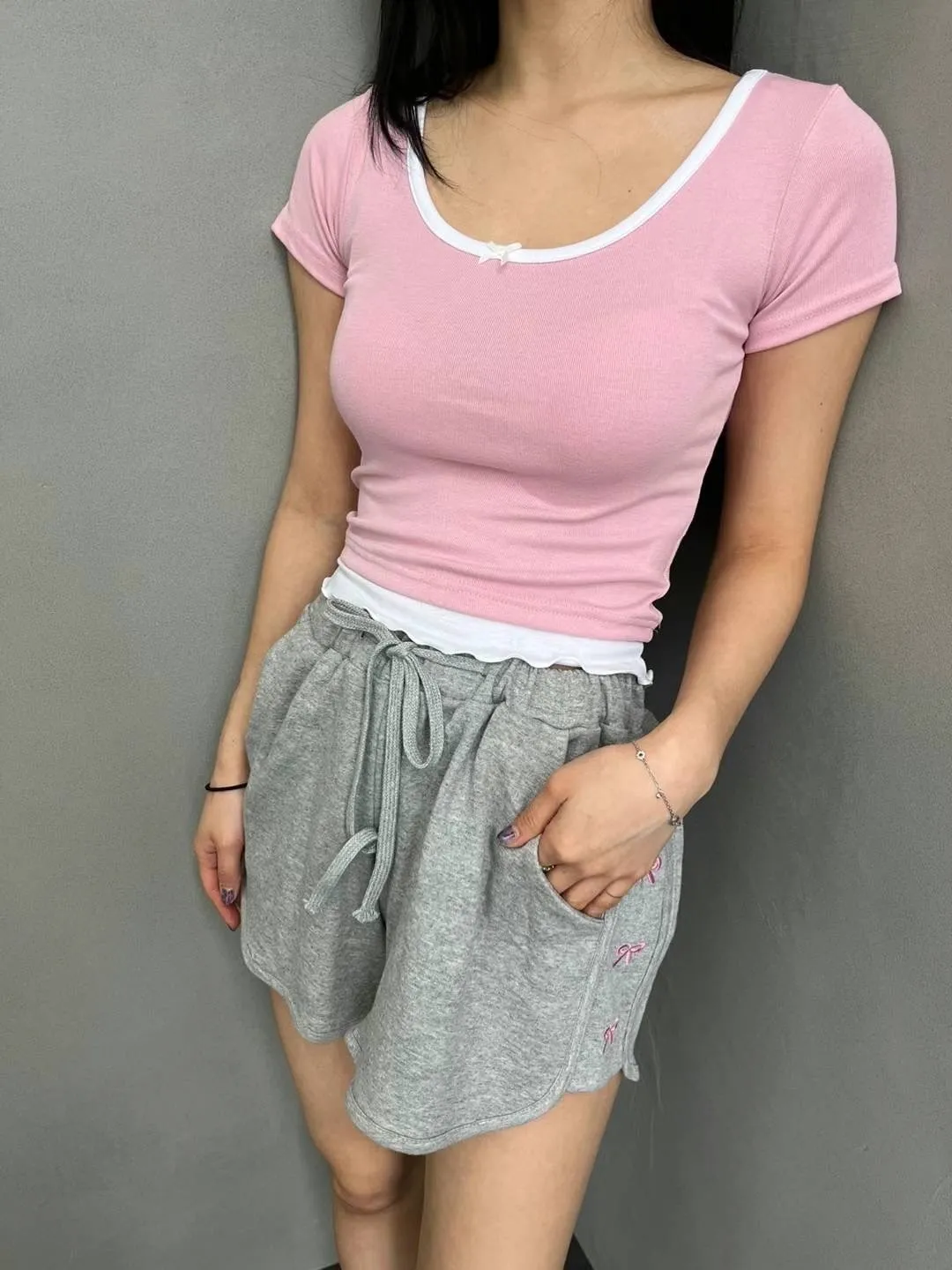 棉,全腰鬆緊有抽繩 側面刺繡蝴蝶結 有口袋
