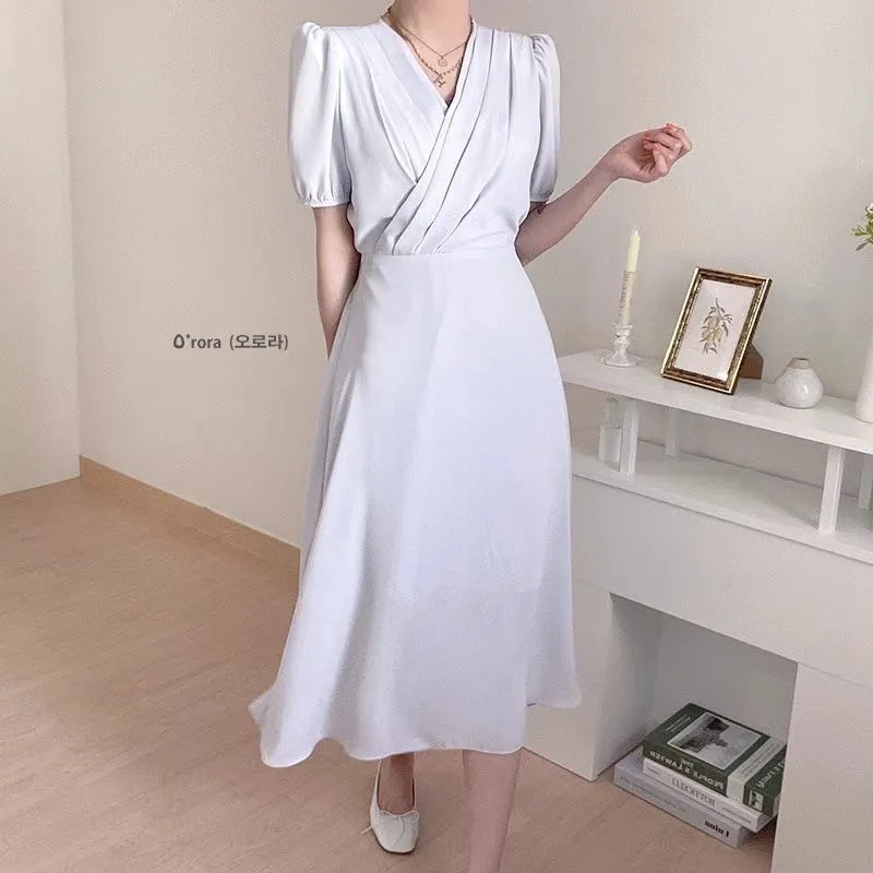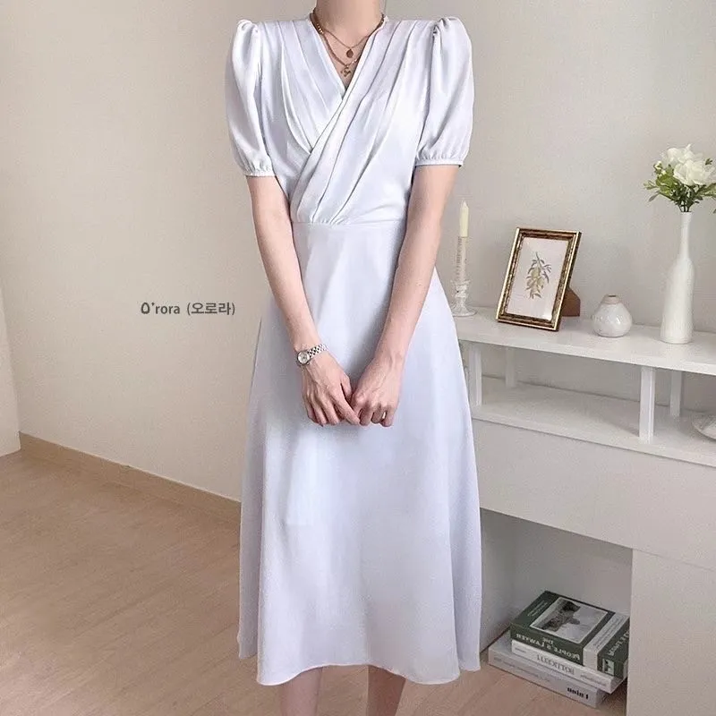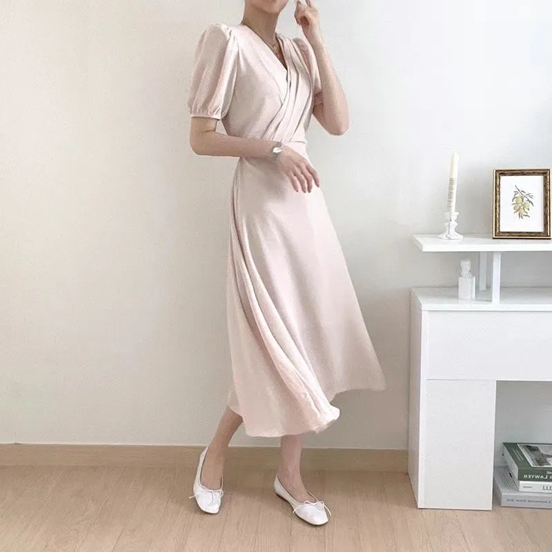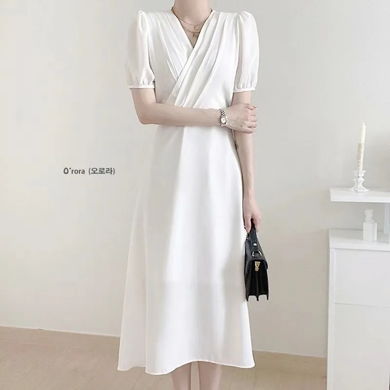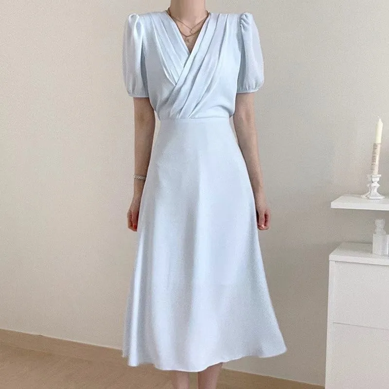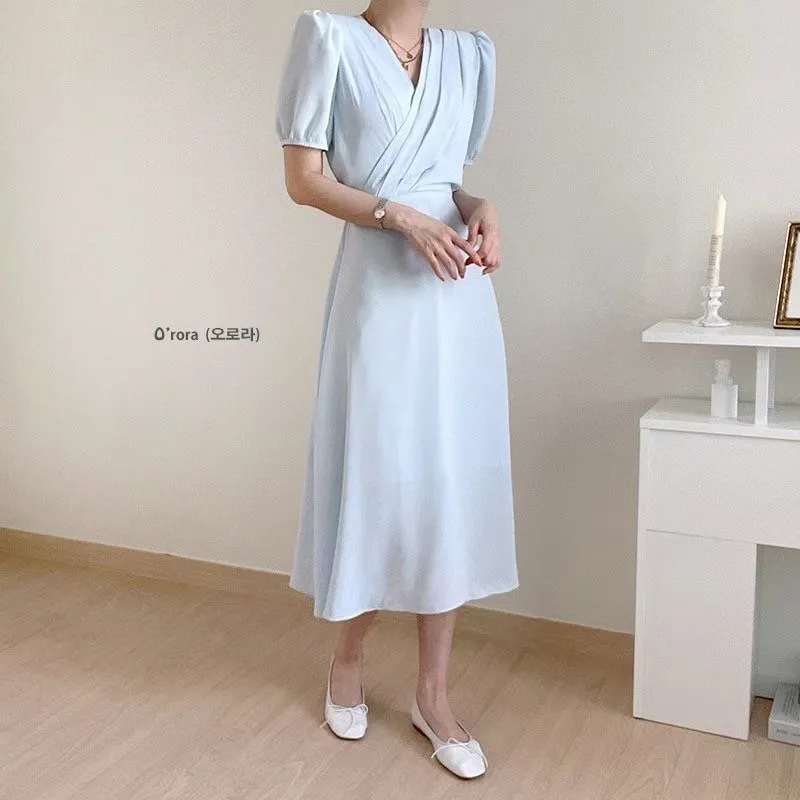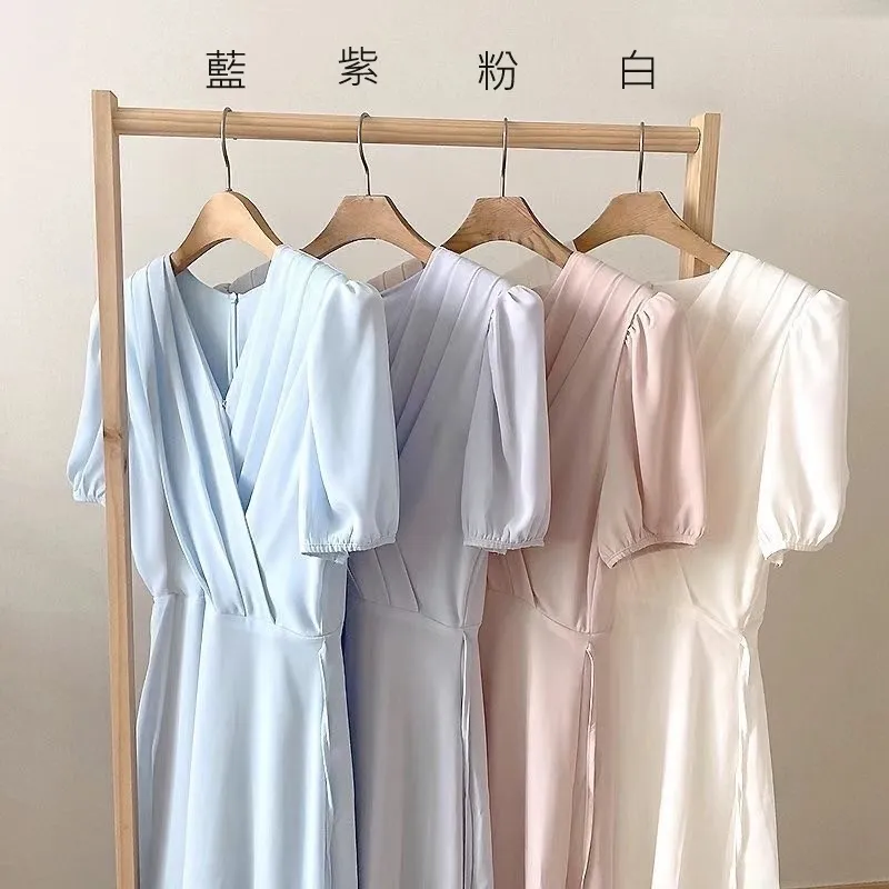 TA642女神交叉V領短袖洋裝 藍 紫 粉 白 官網價$1020 線上價$990