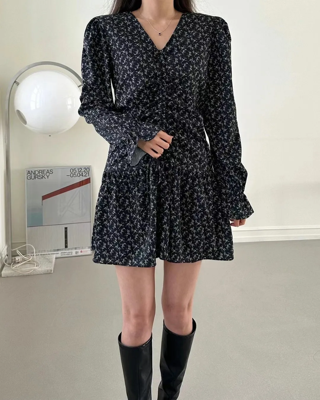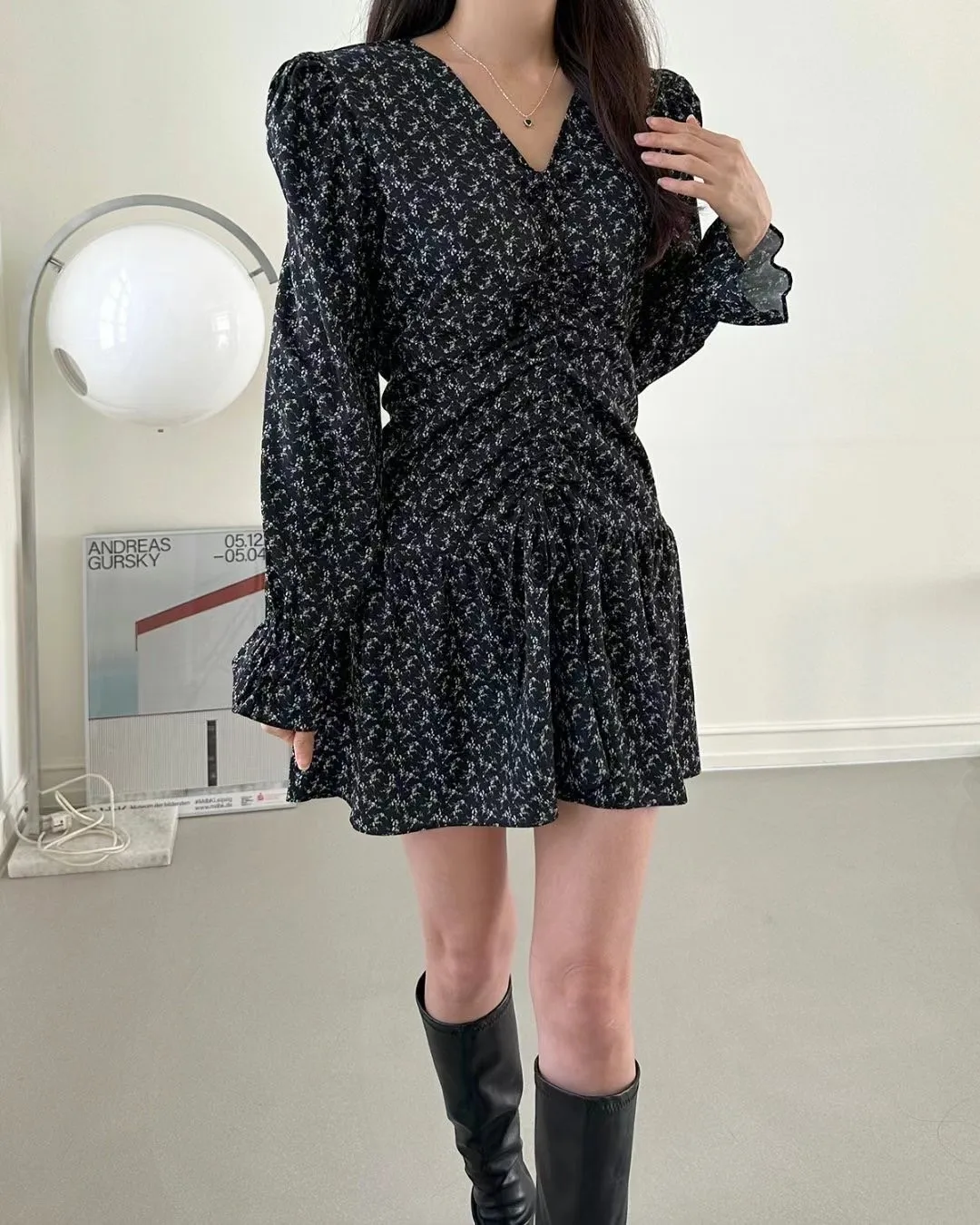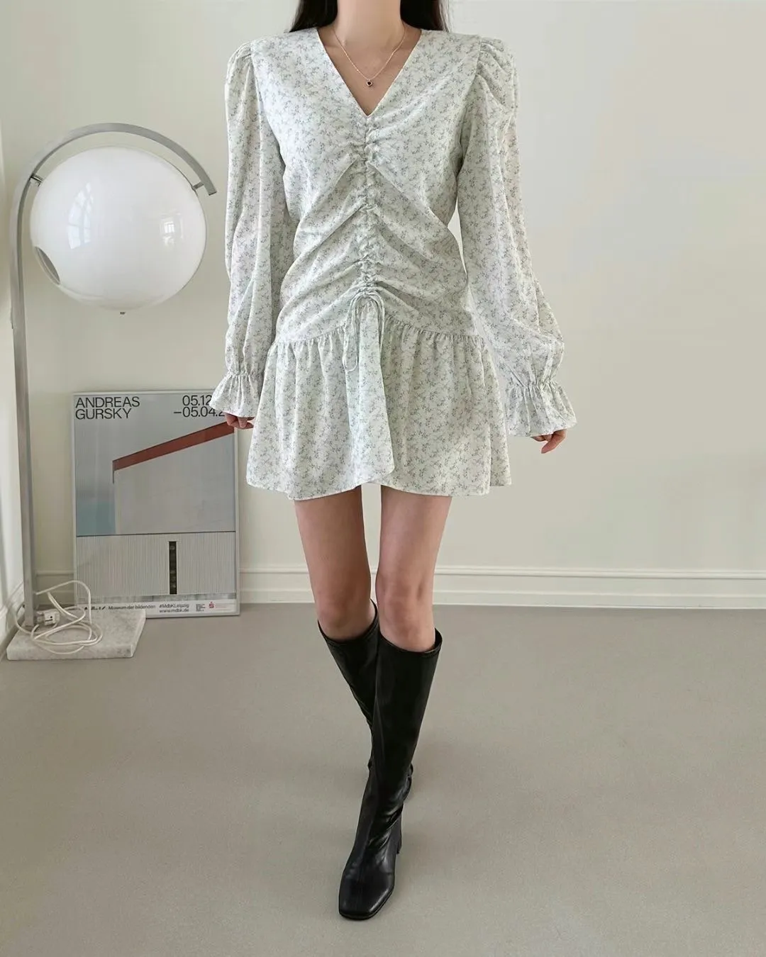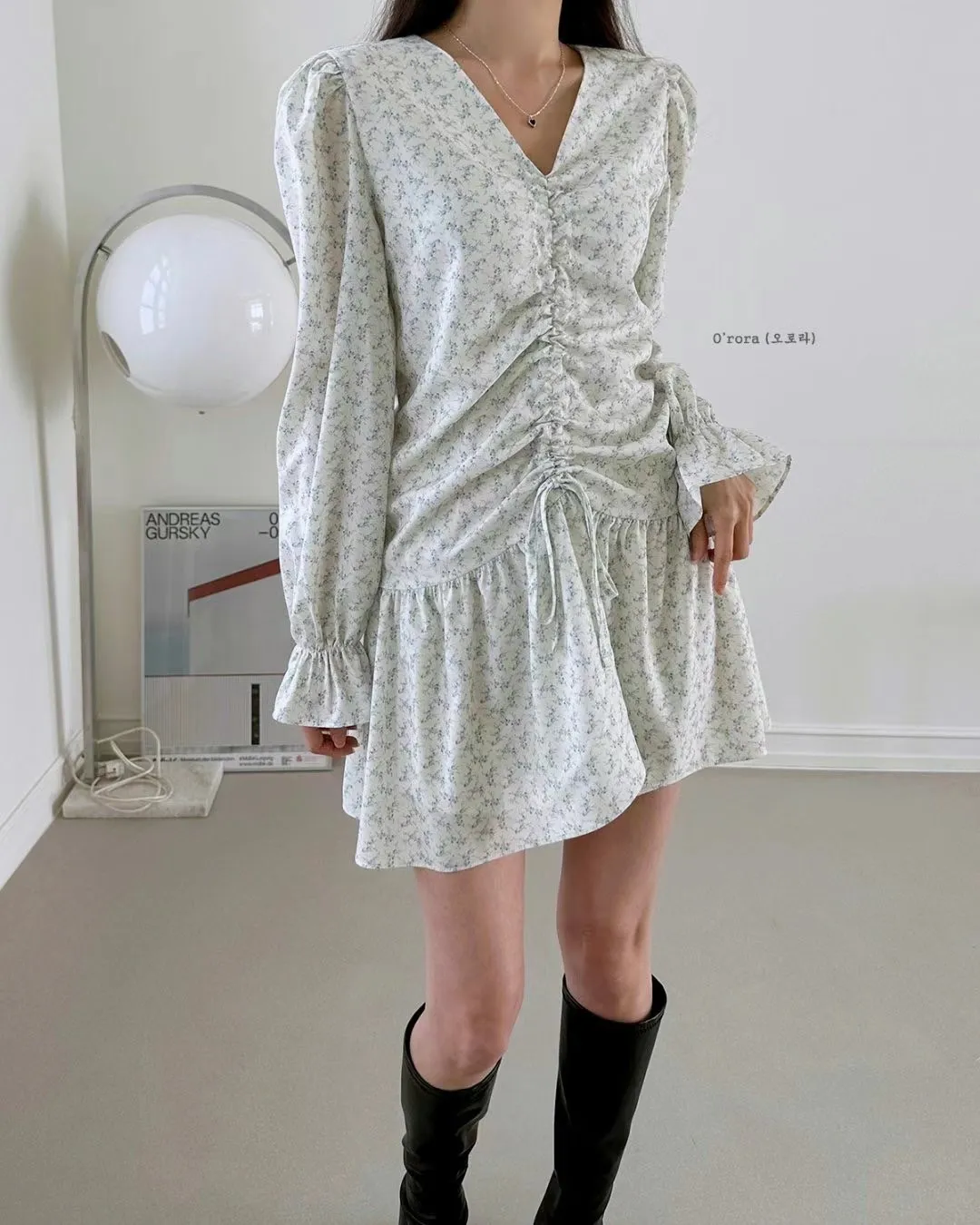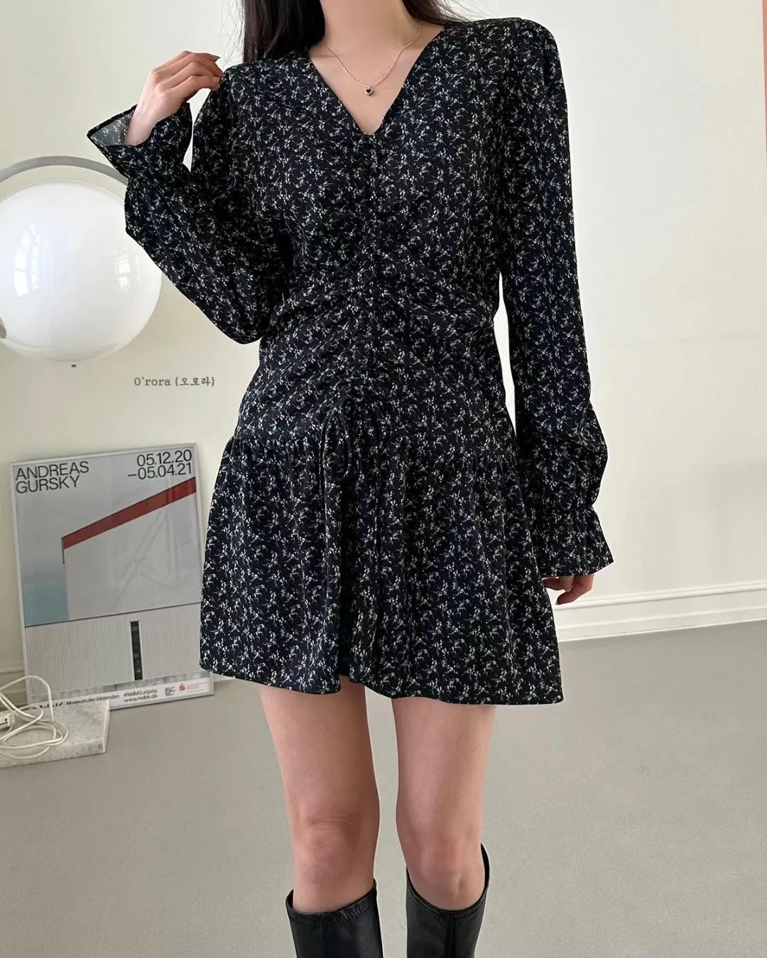 TA650縲縈抓皺抽繩V領洋裝 綠 黑 官網價$1150 線上價$1120