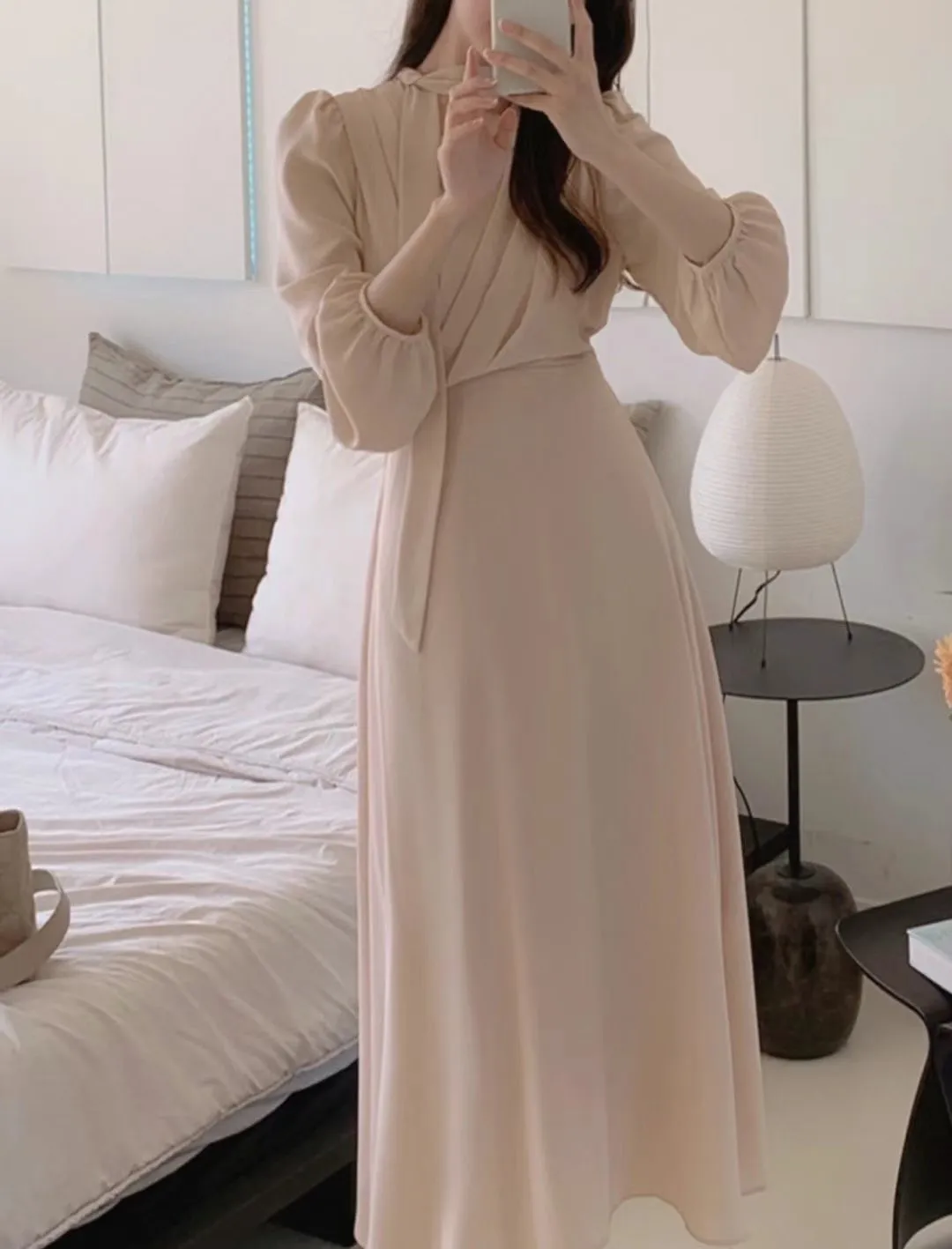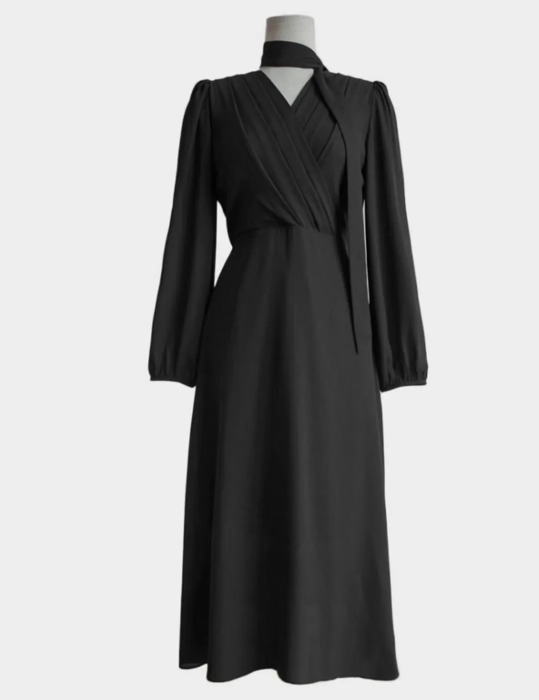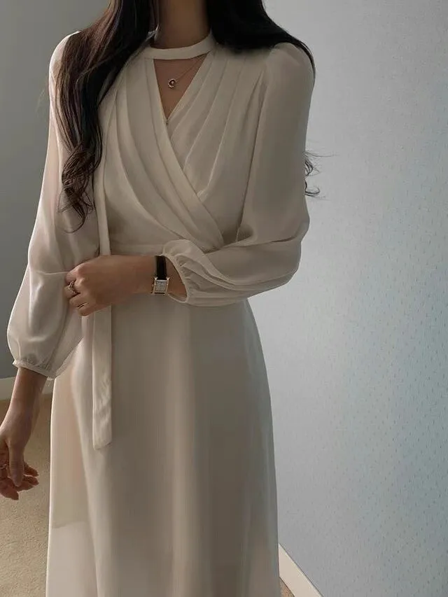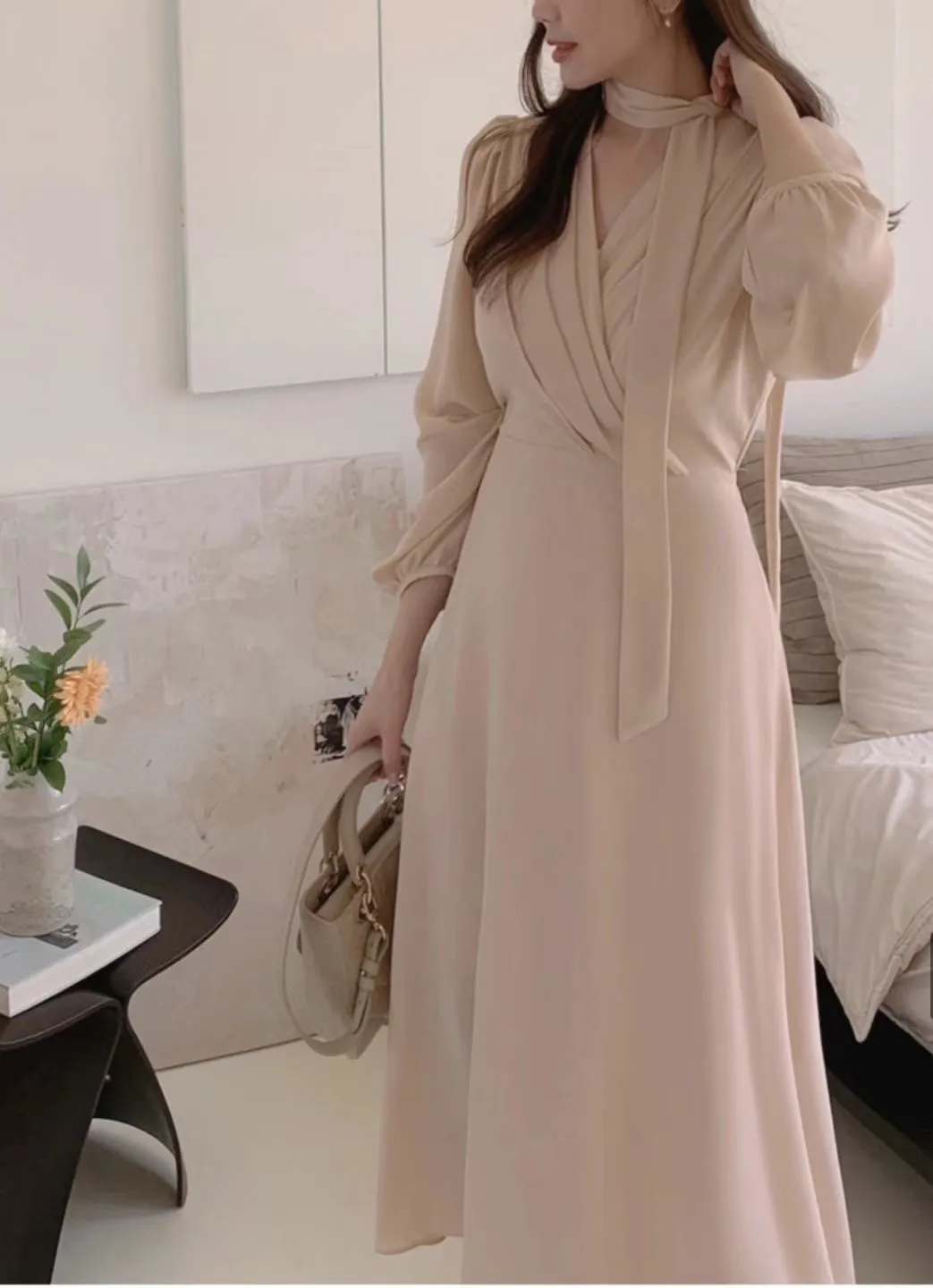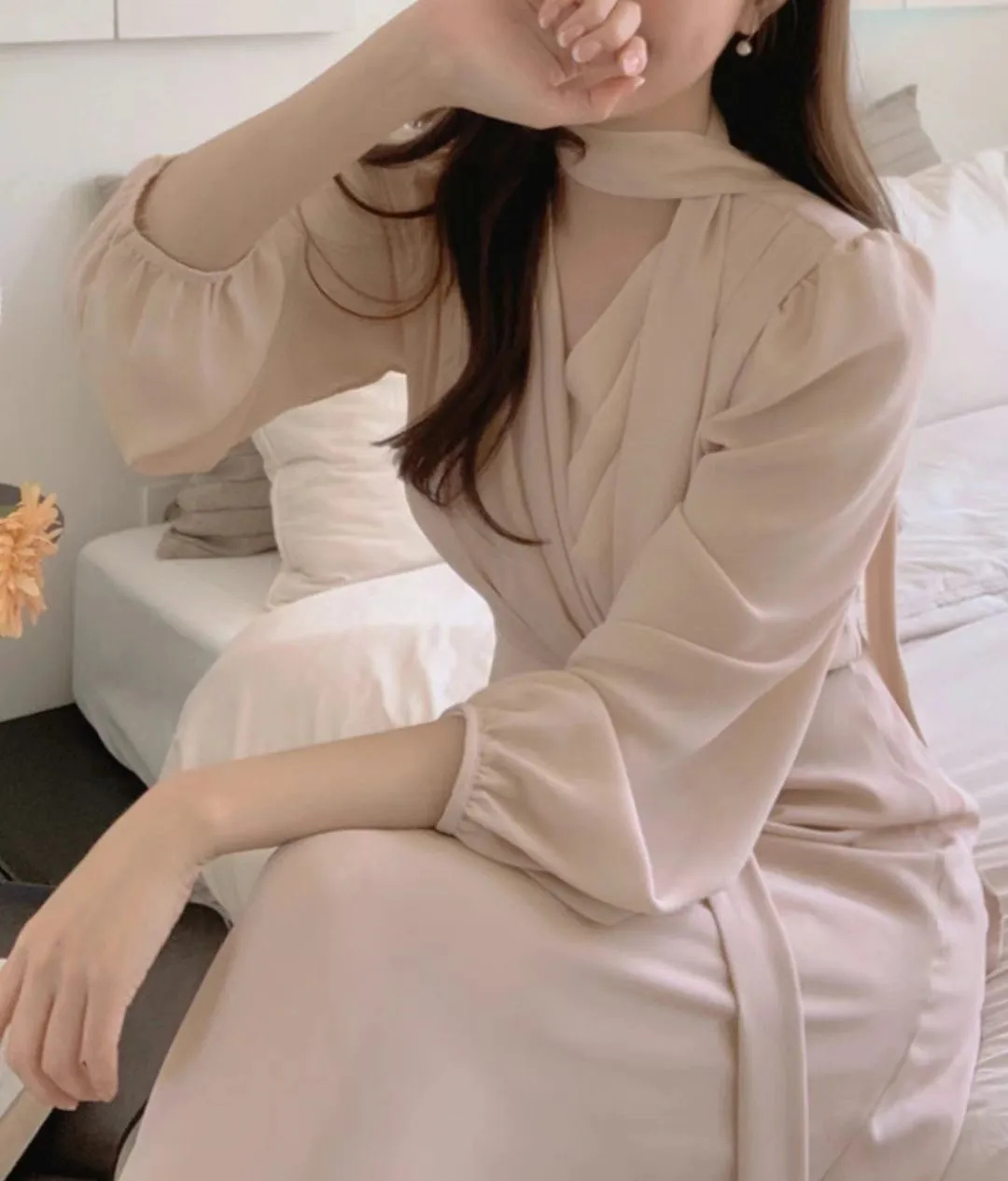 雪紡 拉鍊穿脫 V領胸前有暗釦 微墊肩 有兩個綁帶