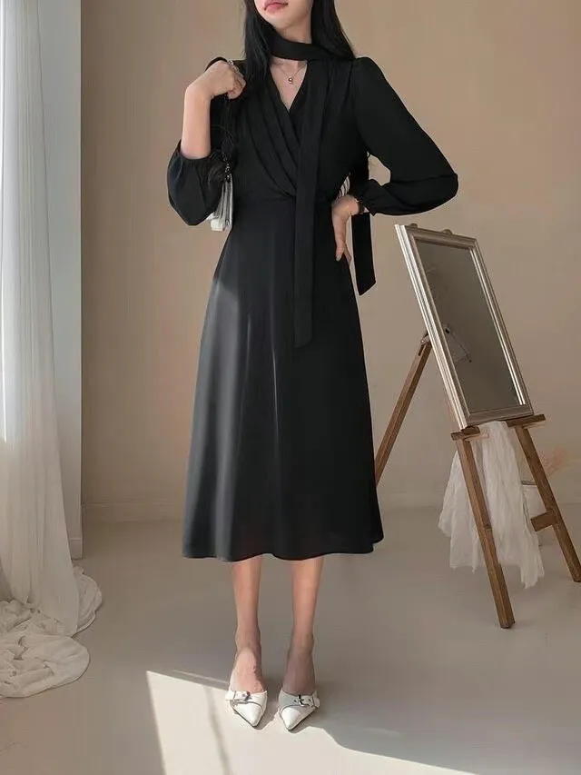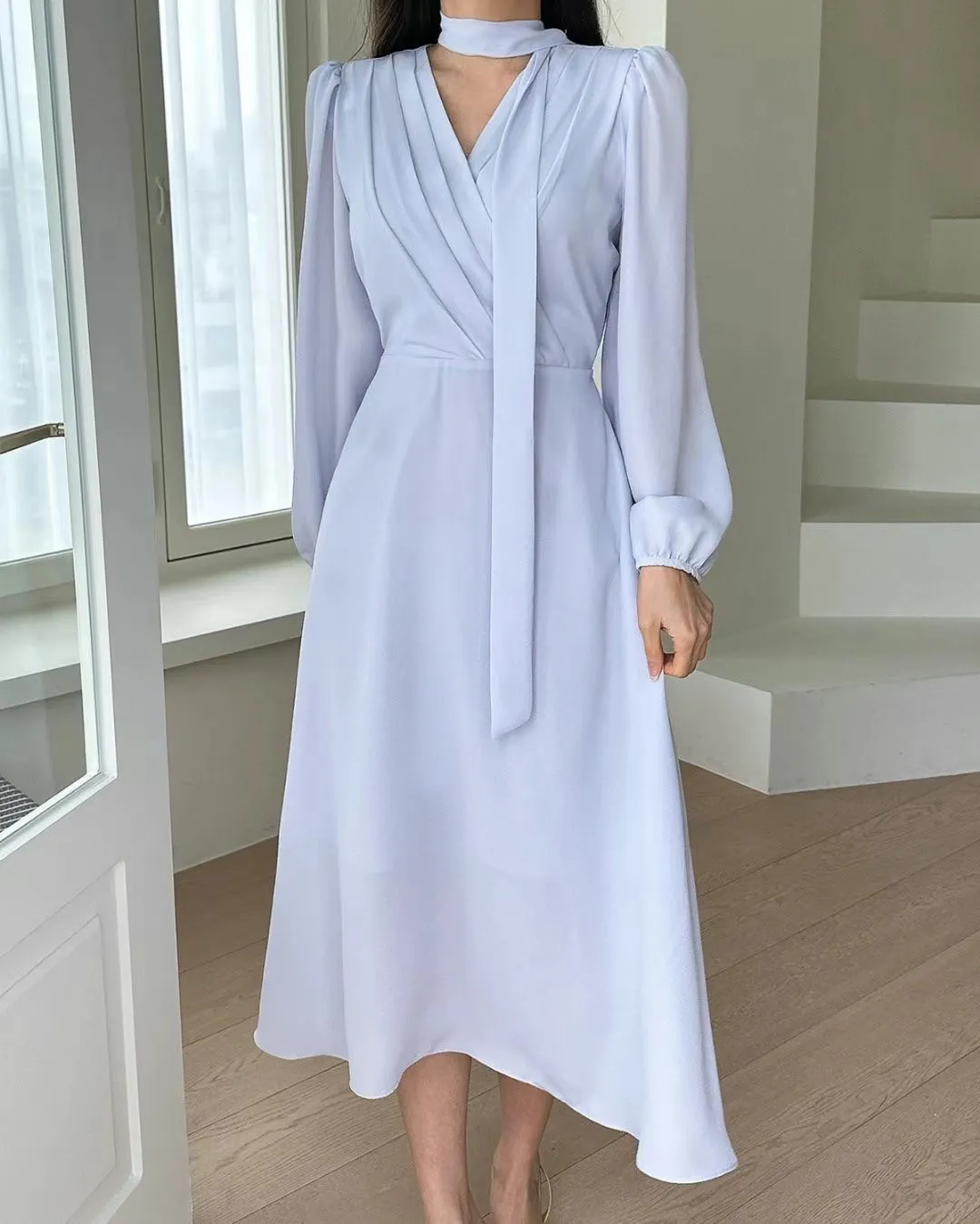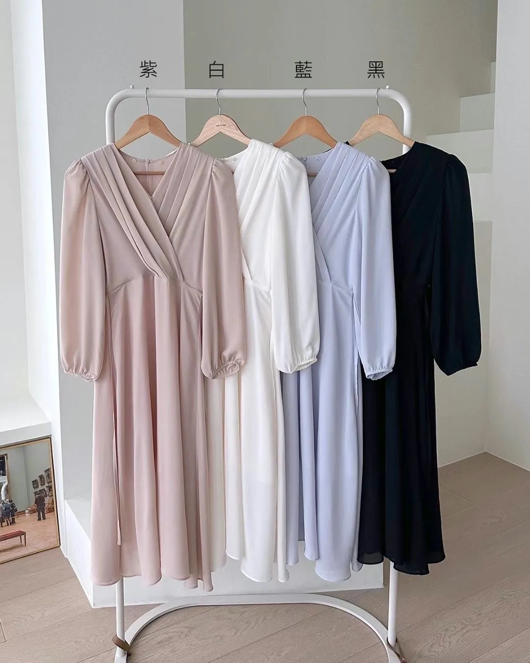 TA653氣質層次V領洋裝(附綁帶) 紫 白 藍 黑 官網價$1090 線上價$1060