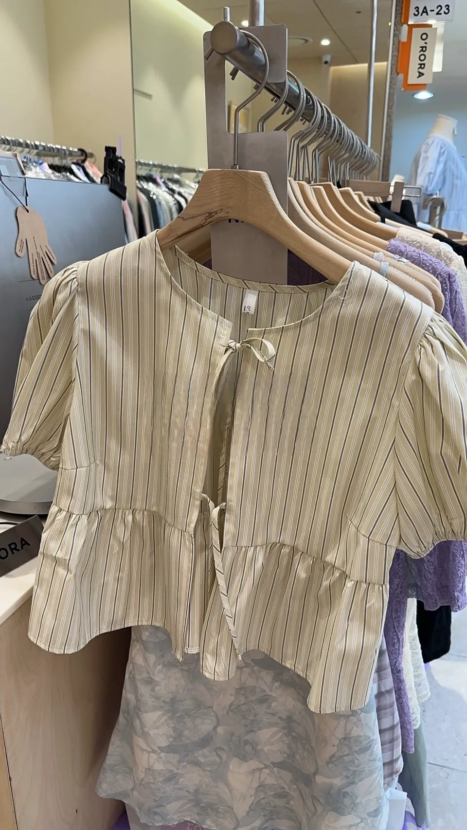 TA659直條紋蝴蝶結綁帶上衣外套 藍 奶茶 官網價$770 線上價$740