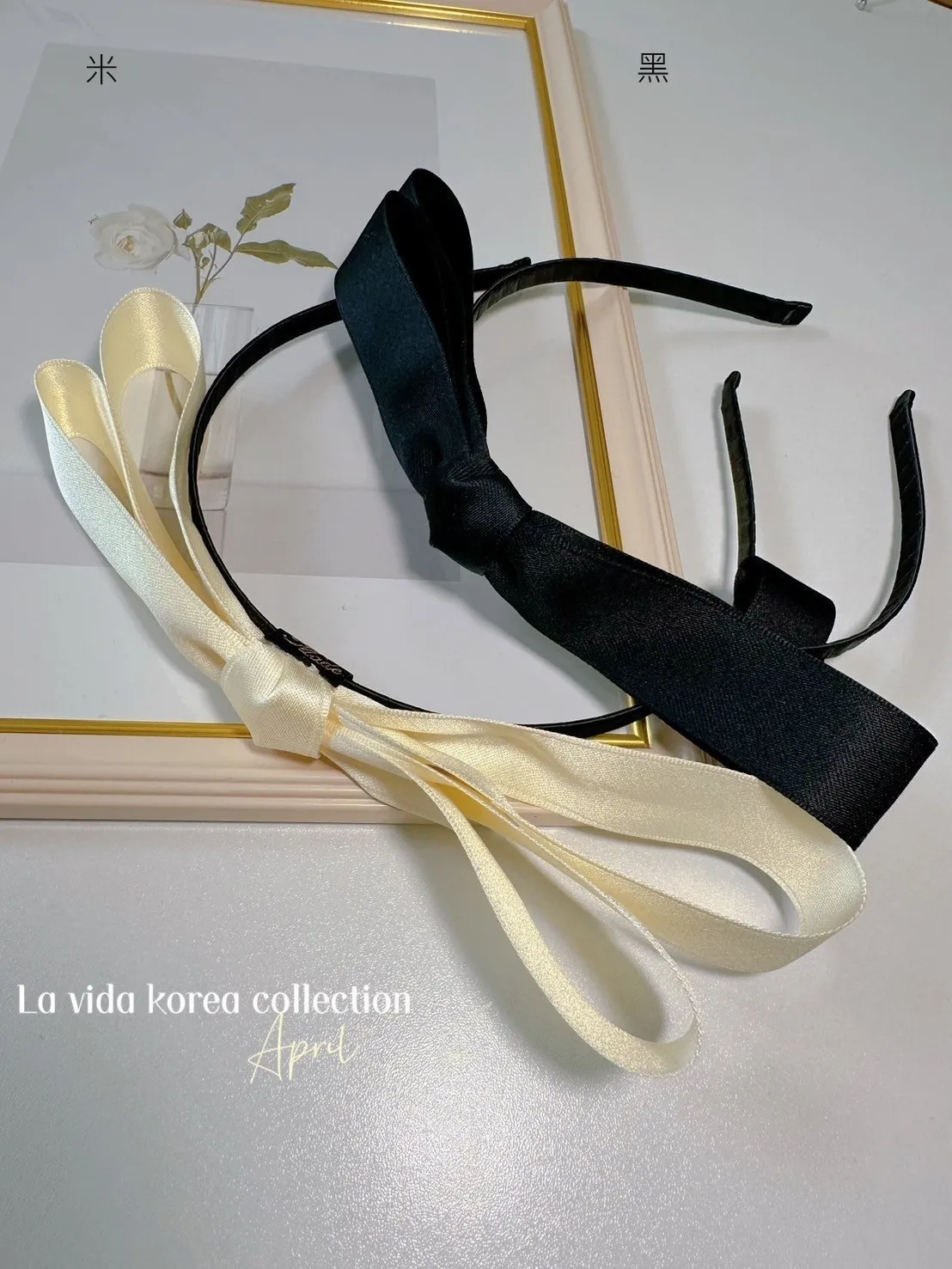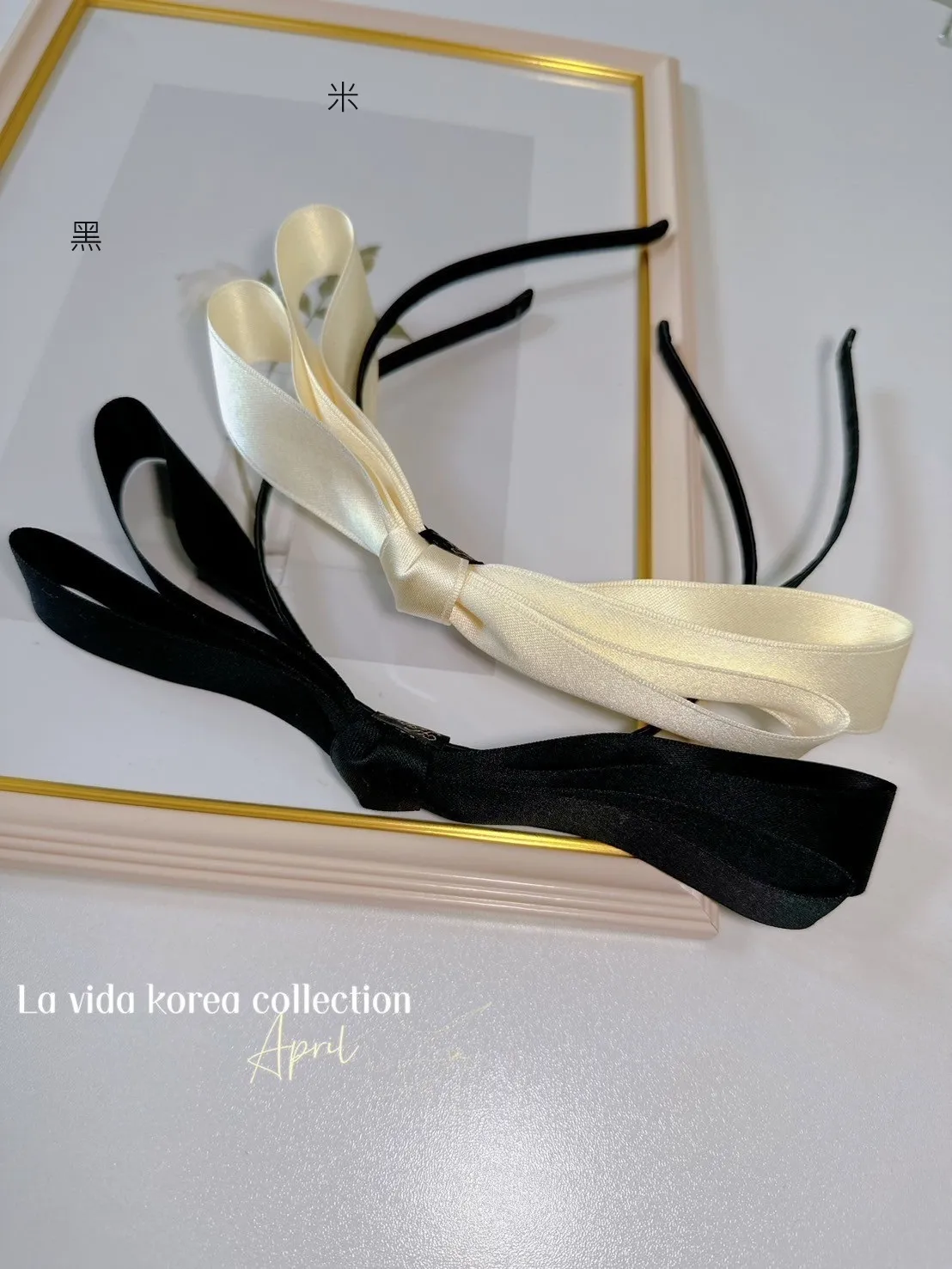 TA695法式雙層緞帶蝴蝶結髮箍 米 黑 官網價$198 線上價$188