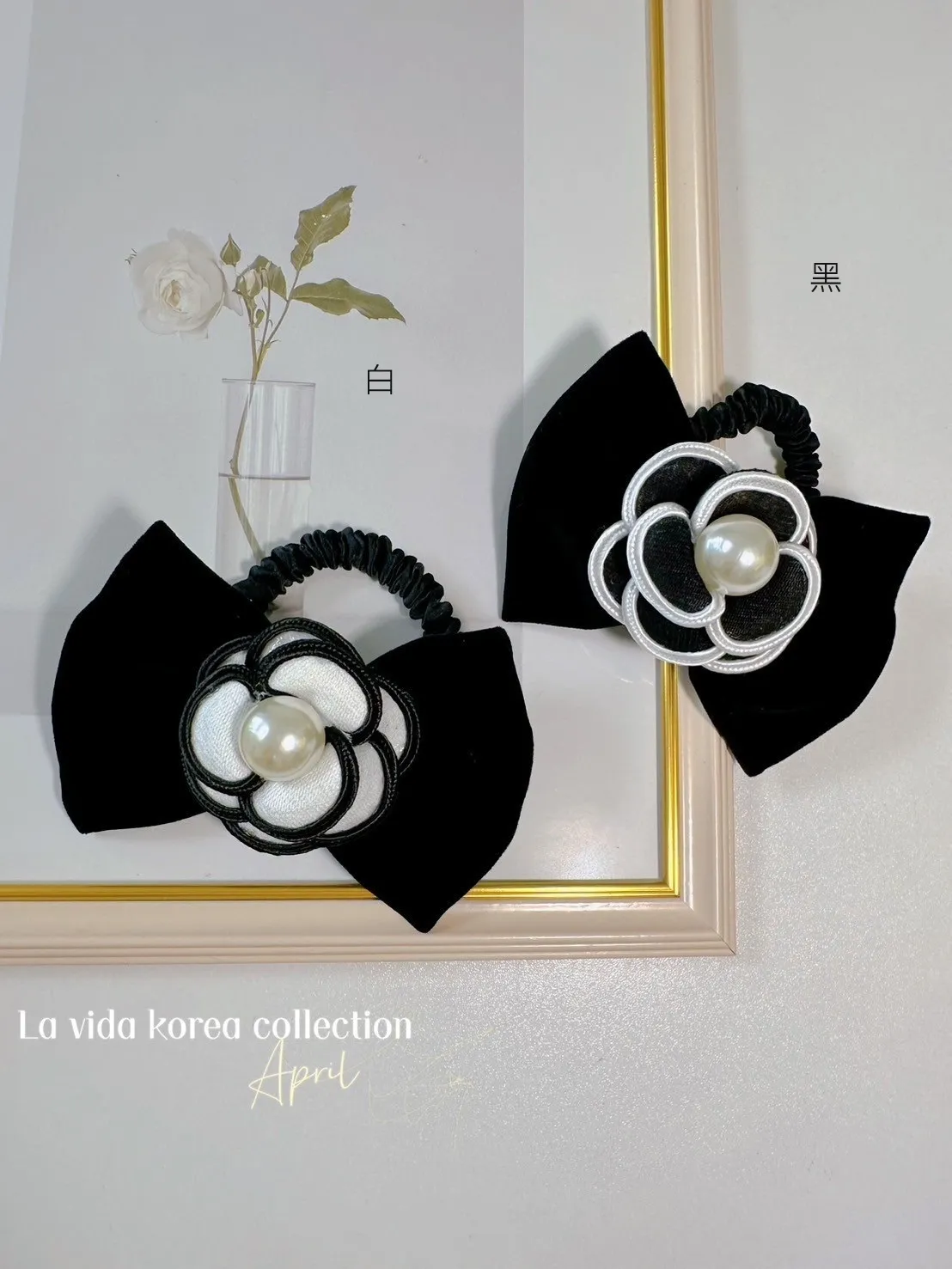 TA696山茶花珍珠髮圈 黑 白 官網價$120 線上價$110