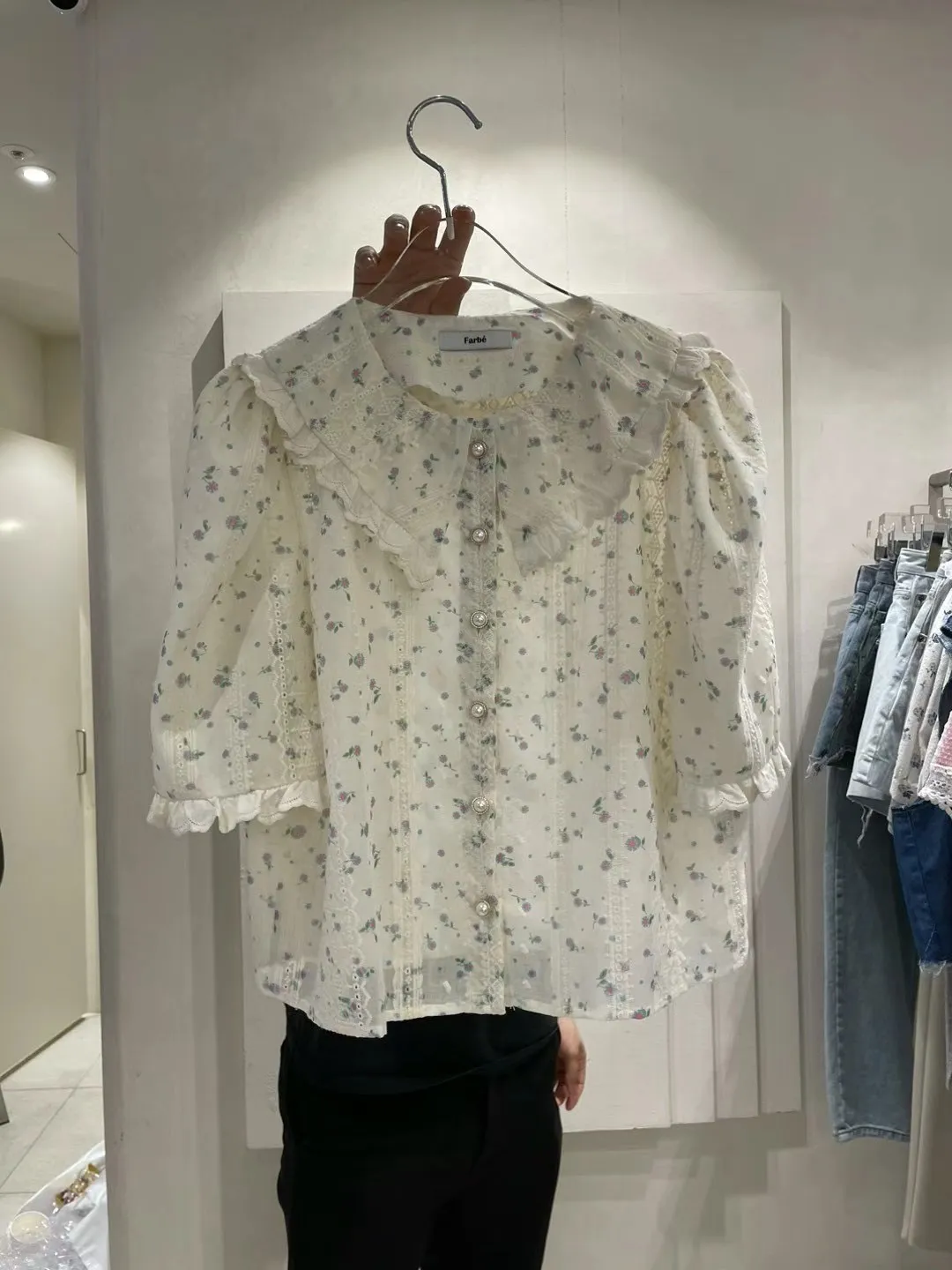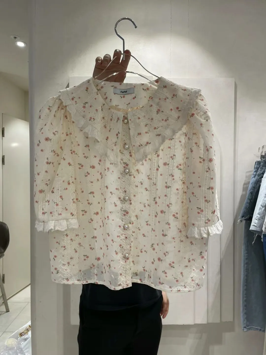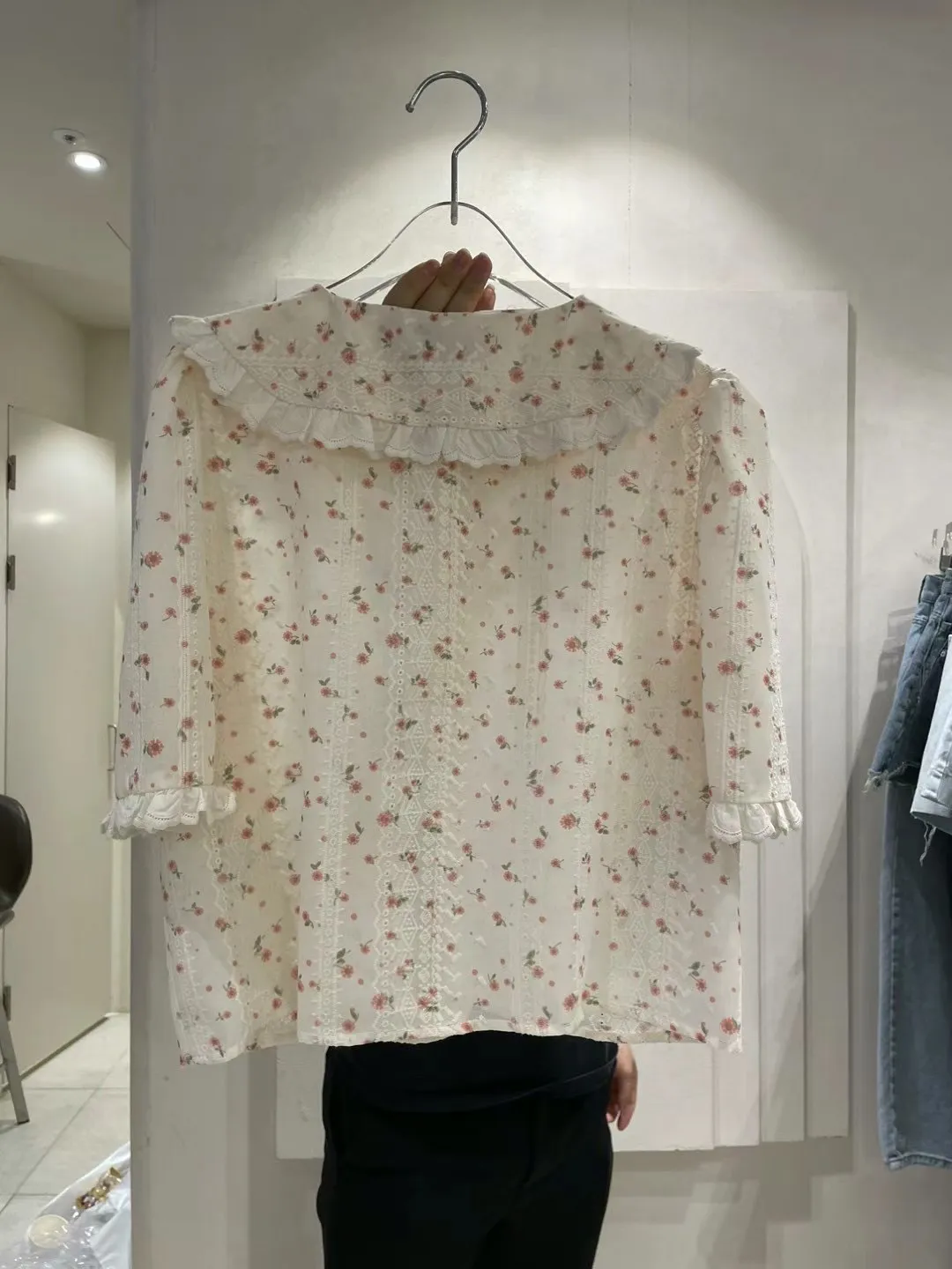 TA710精緻小花美領透光上衣 藍 紅 官網價$1220 線上價$1190