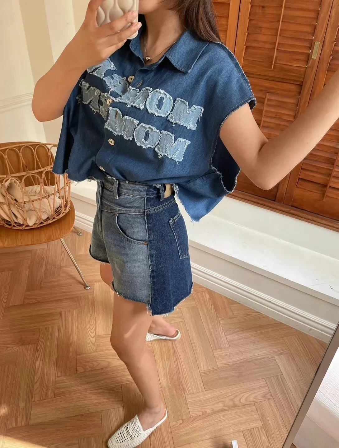 TA711推薦款極薄V腰不收邊牛仔短褲 S M L 官網價$1120 線上價$1090