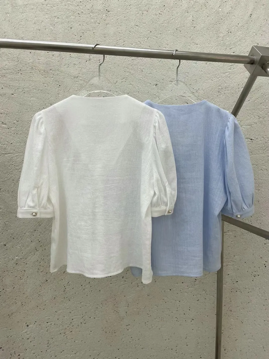 棉 不易皺斜紋棉 材質舒服 珍珠釦 跳色緞帶