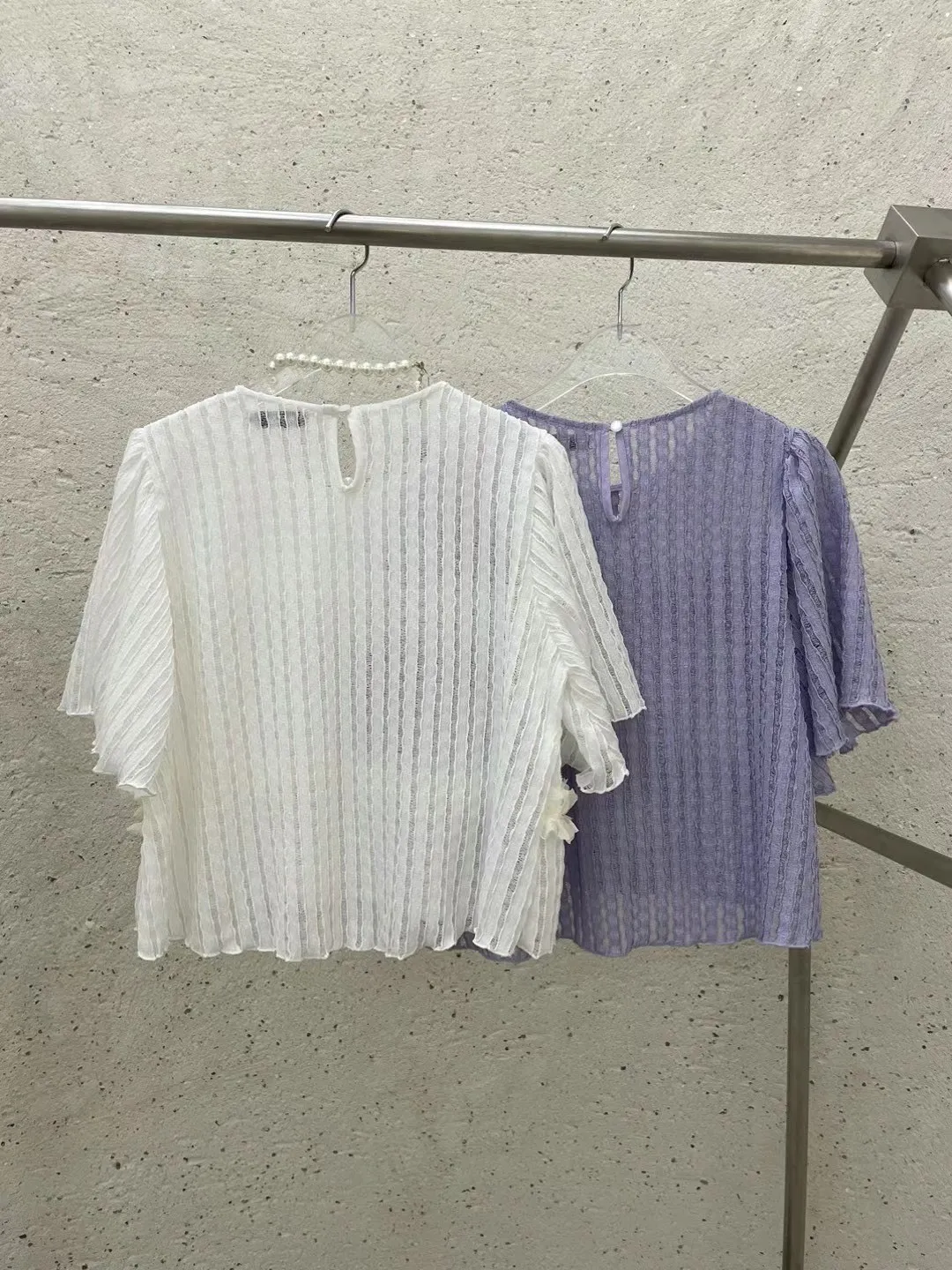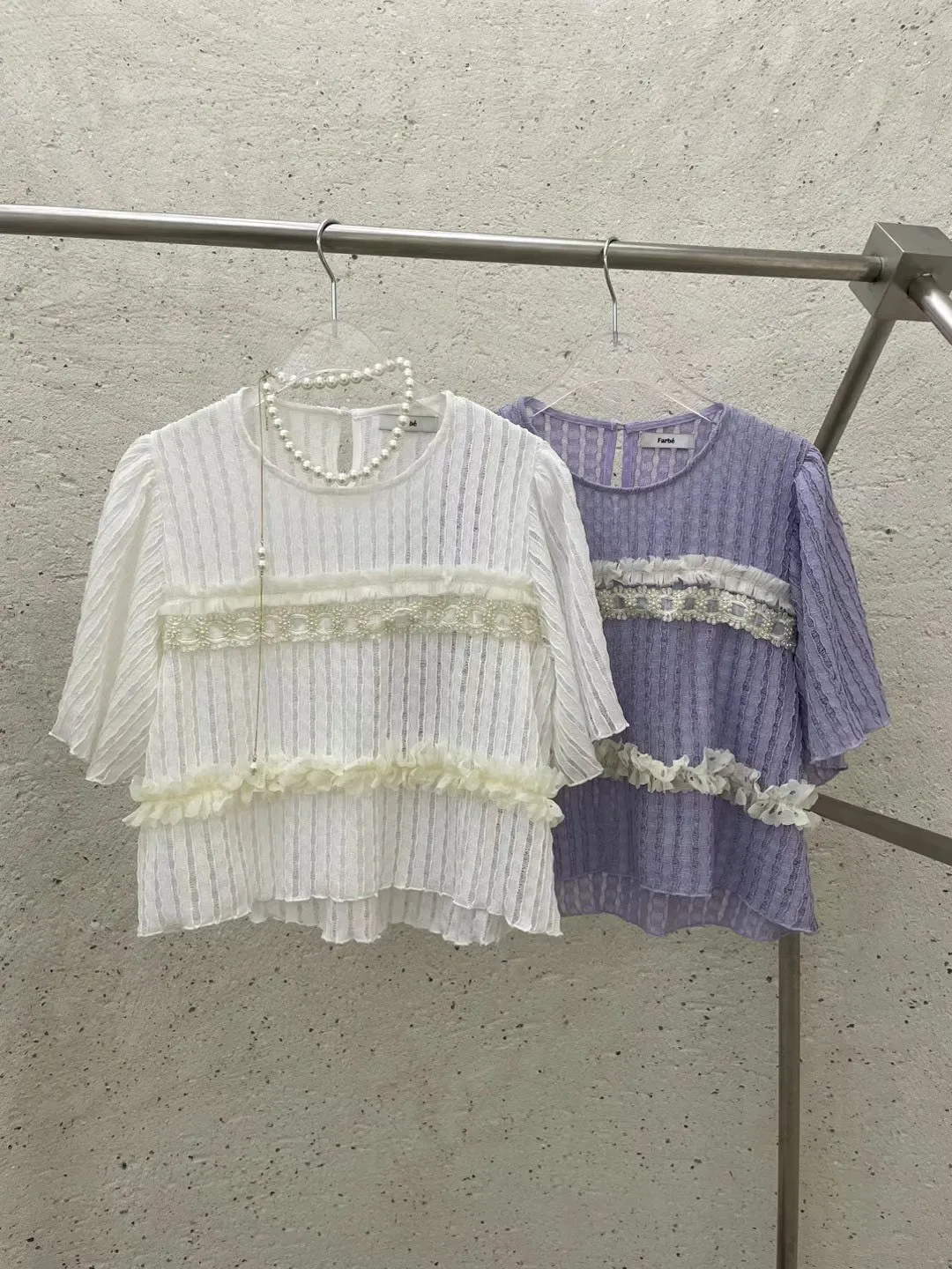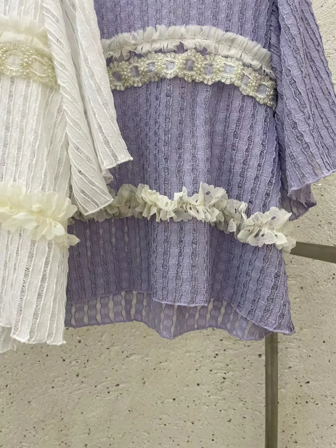 TA727推薦款珍珠蕾絲燒花美衣 白 紫 官網價$1020 線上價$990