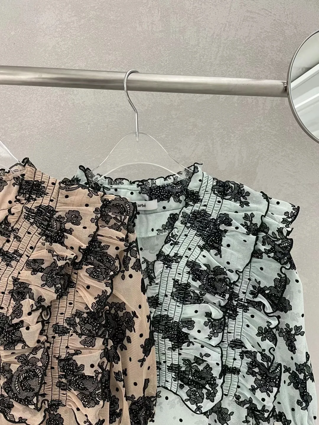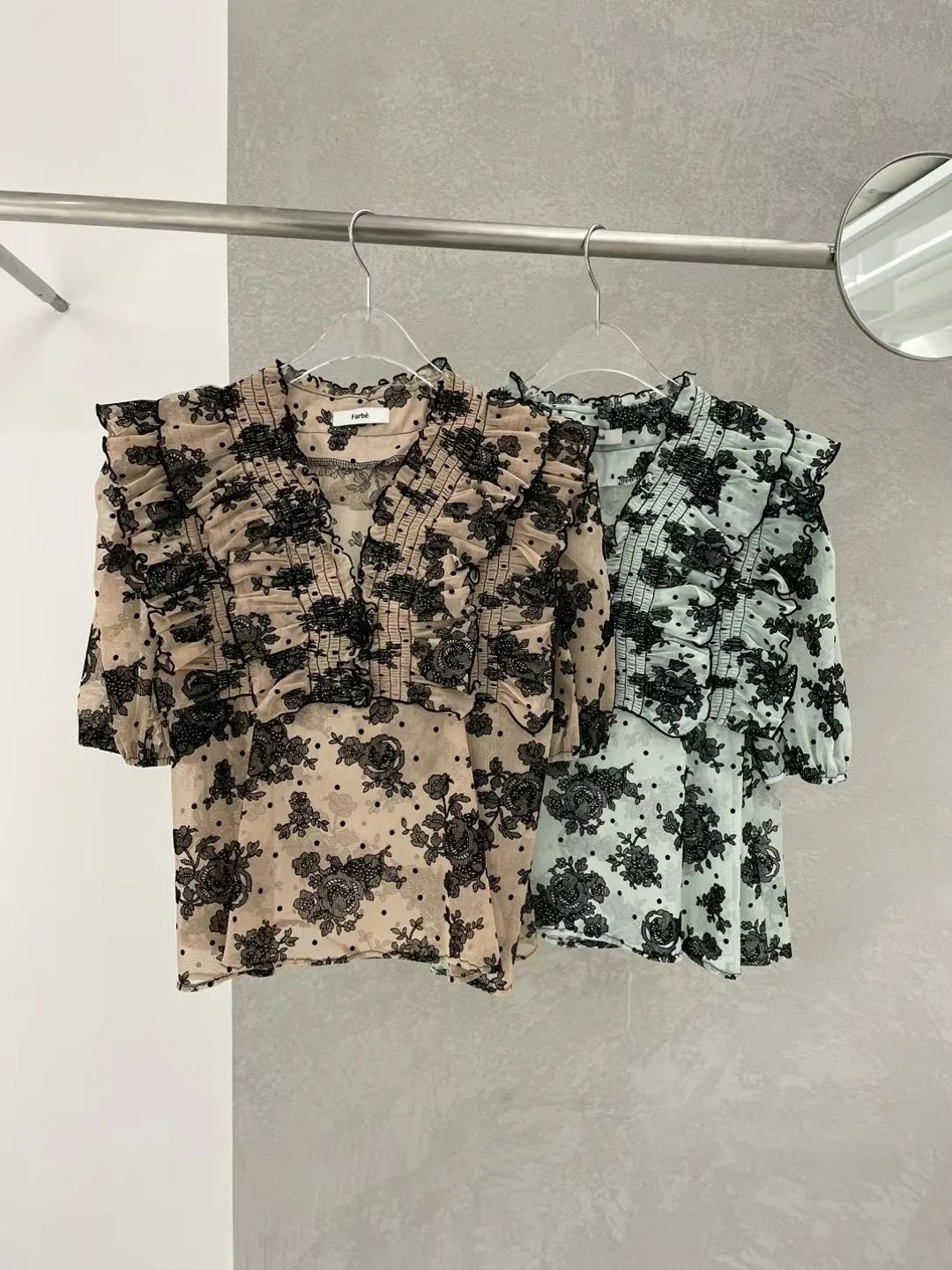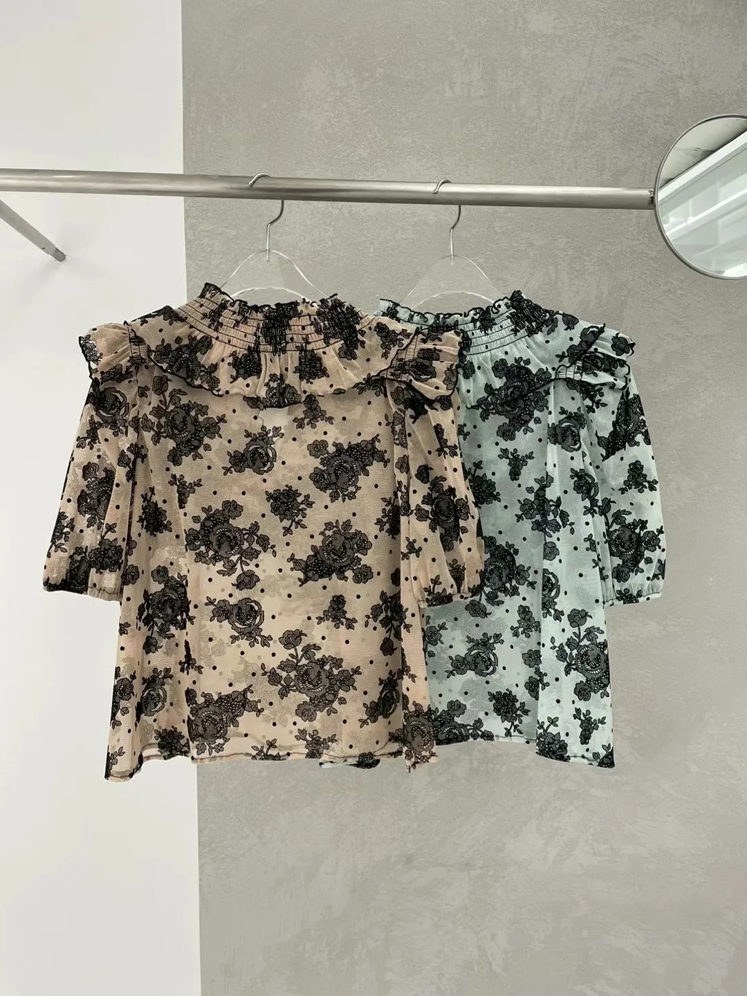 TA731波浪荷葉滾邊小花叢上衣 綠 奶茶 官網價$1210 線上價$1180