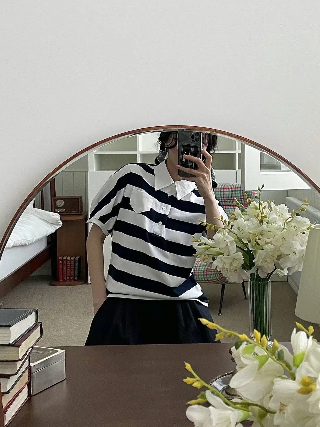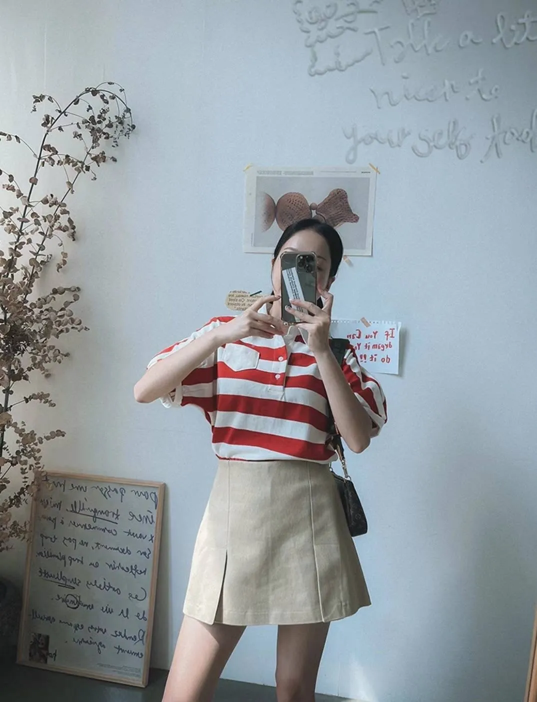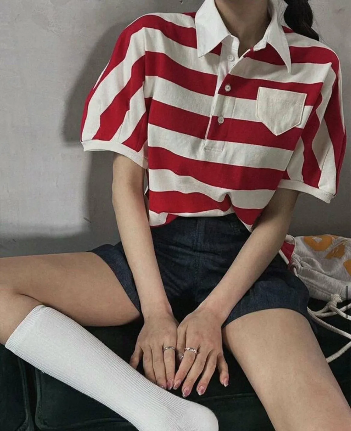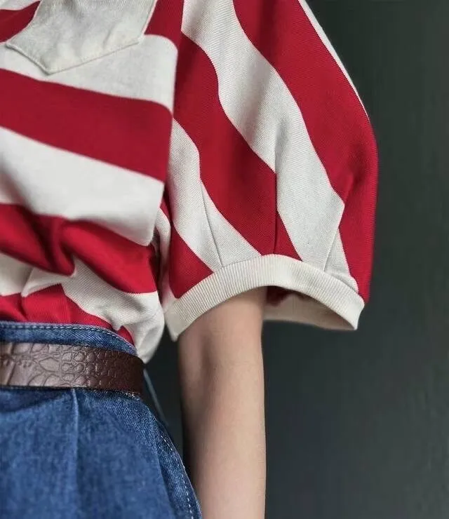 TA735可愛單口袋條紋POLO衫 紅 藍 官網價$1100 線上價$1070