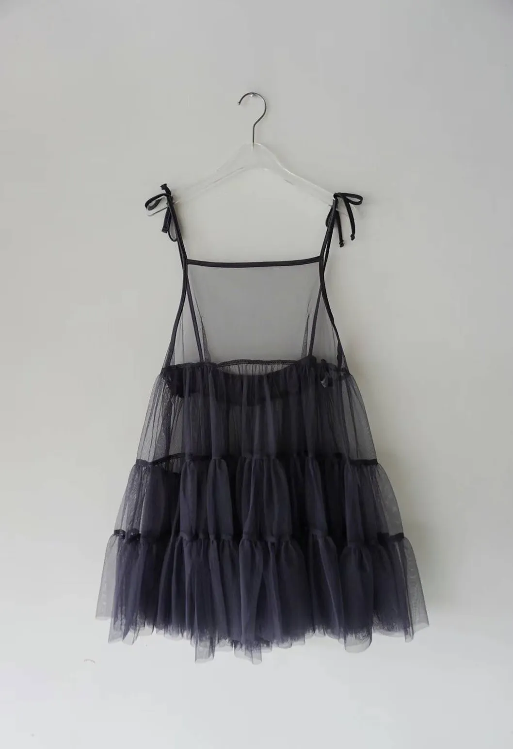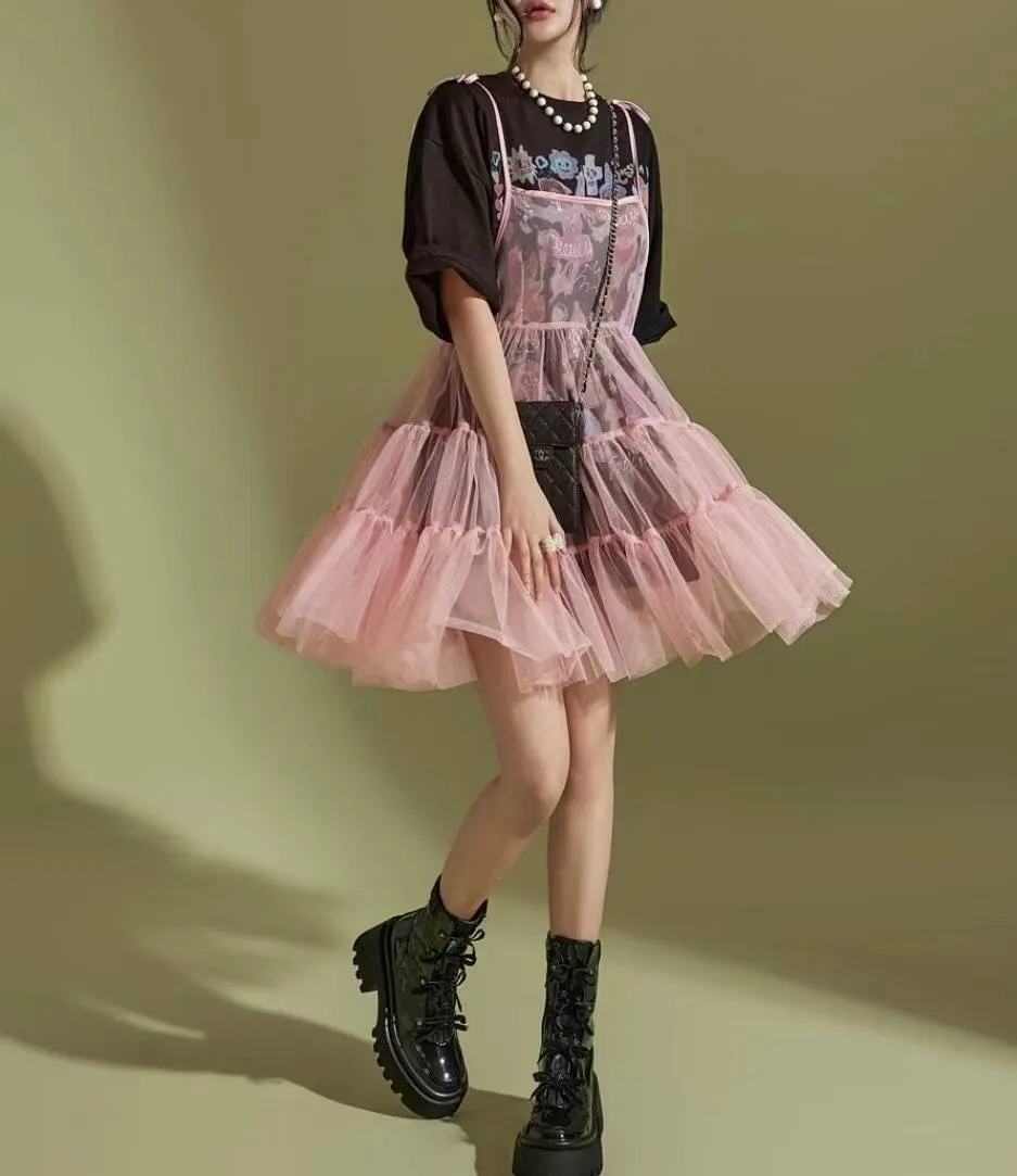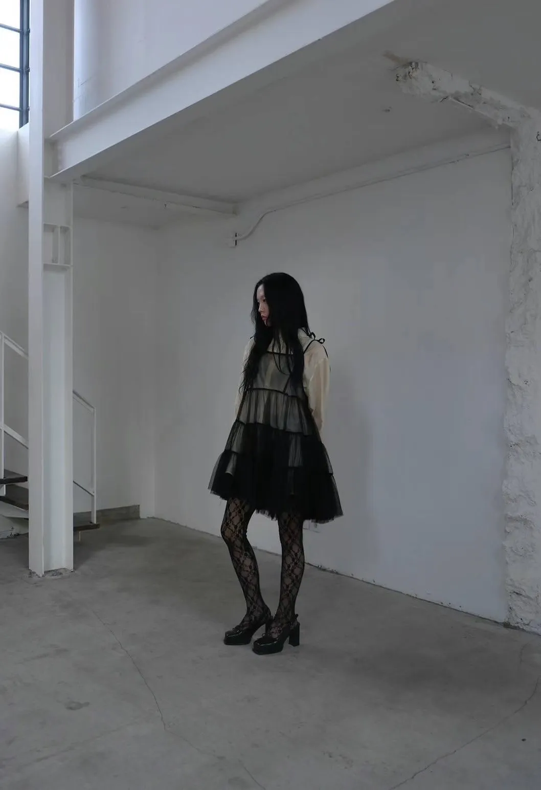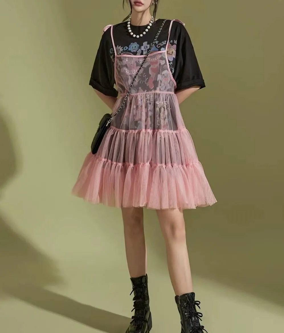 TA737細肩帶往紗透光罩衫洋裝 粉 灰 黑 官網價$1380 線上價$1350