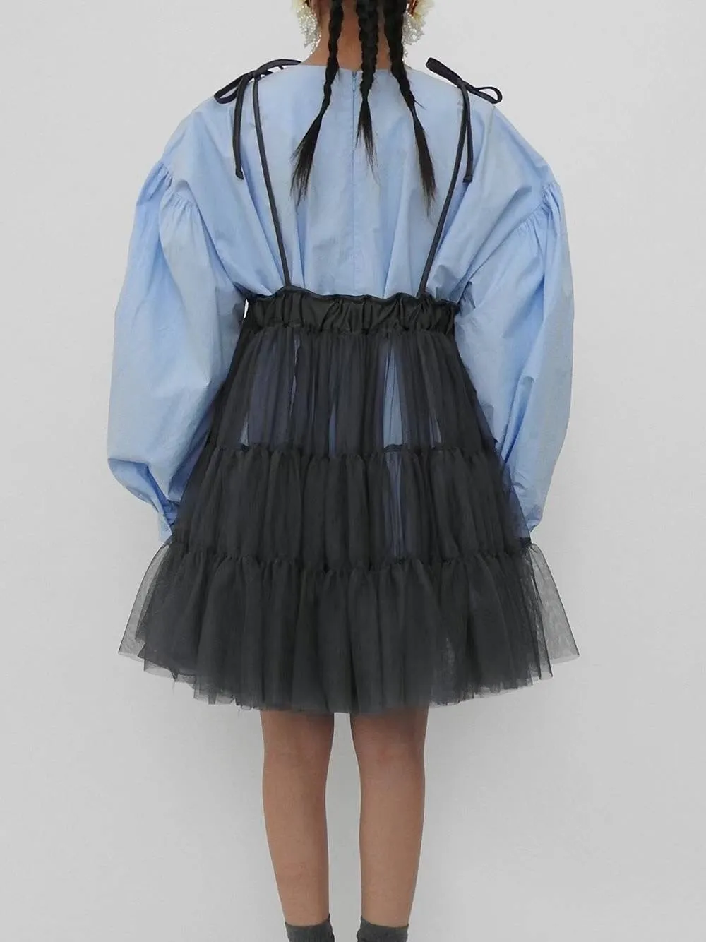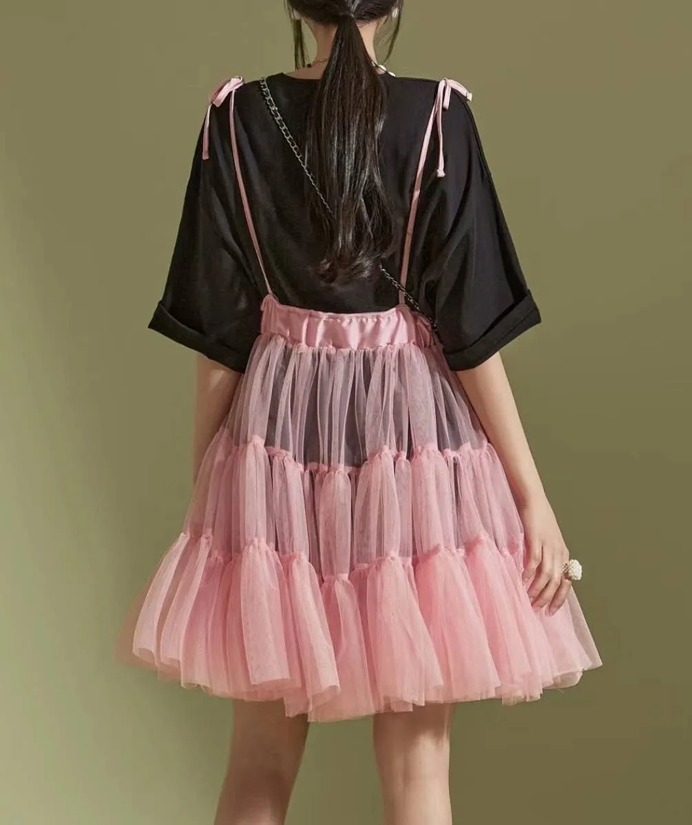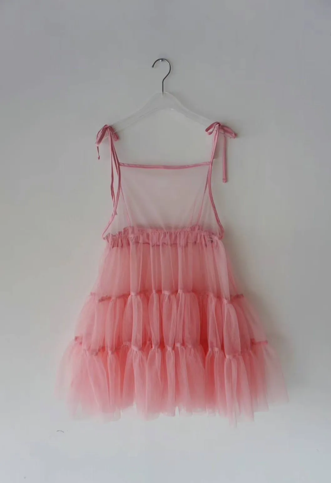 TA737細肩帶往紗透光罩衫洋裝 粉 灰 黑 官網價$1380 線上價$1350