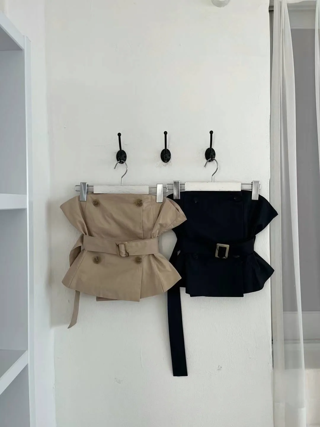 TA742平口設計感抹胸上衣 藍 奶茶 官網價$1050 線上價$1020