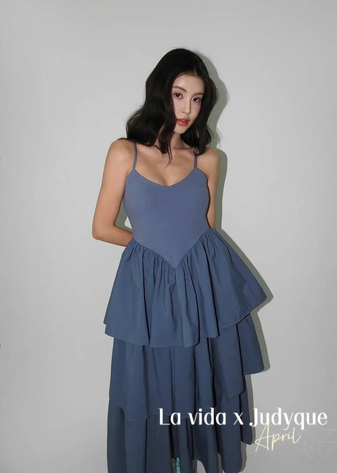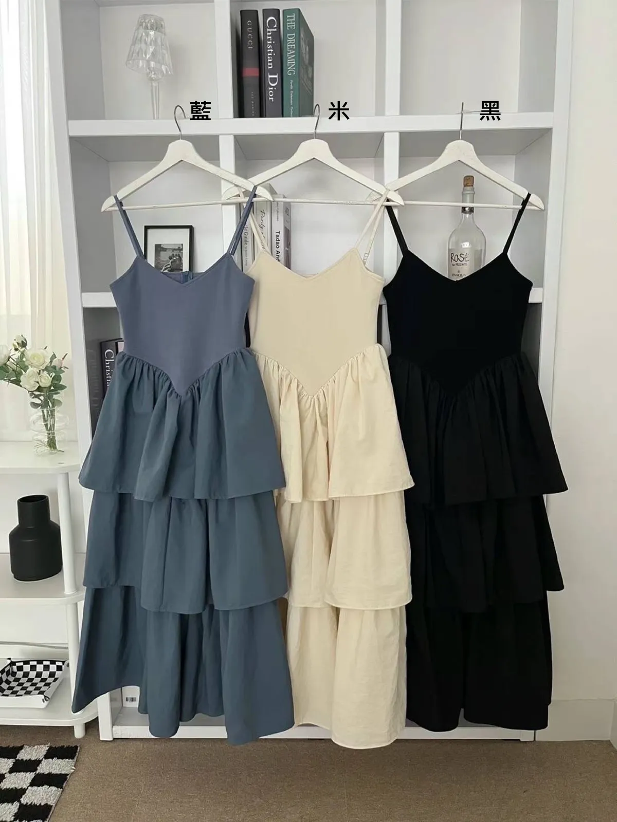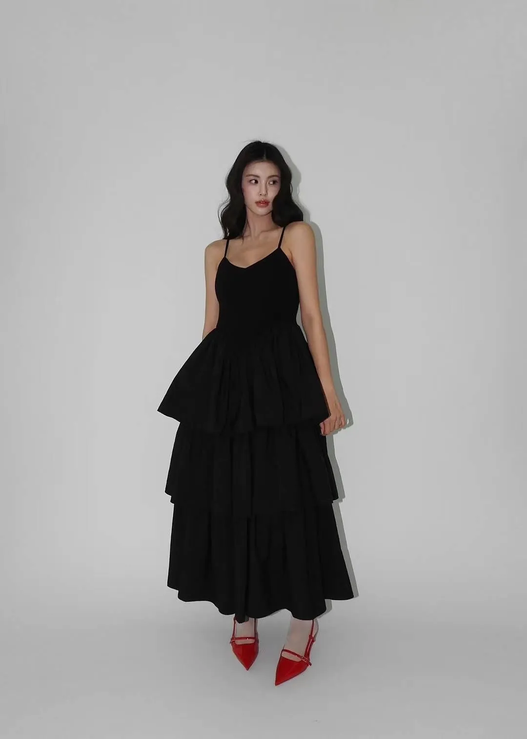 TA746細肩帶三層蛋糕洋裝 米 藍 黑 官網價$1920 線上價$1890