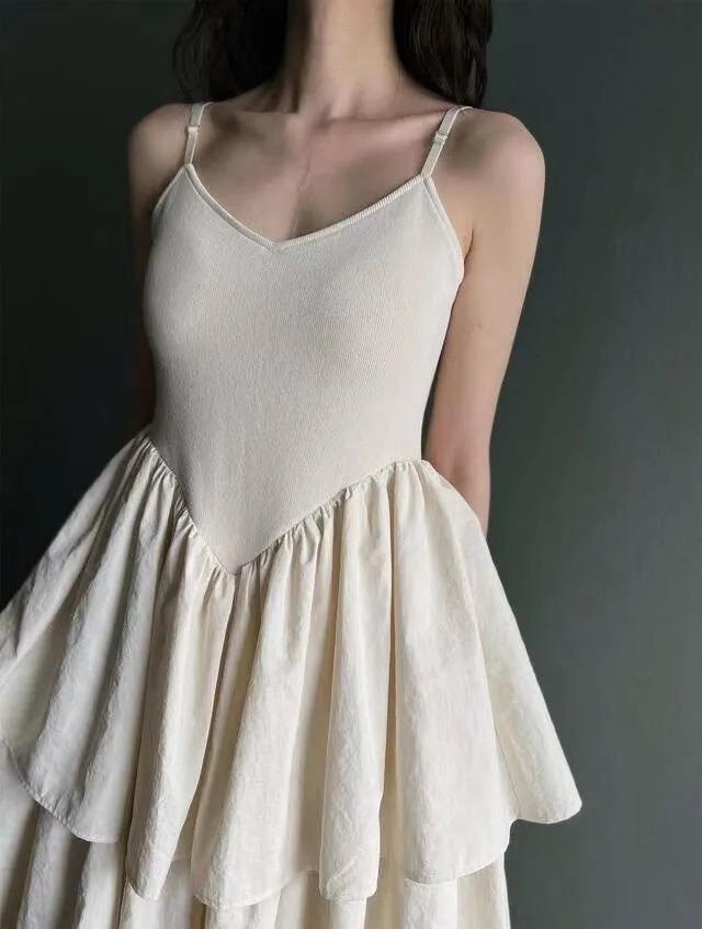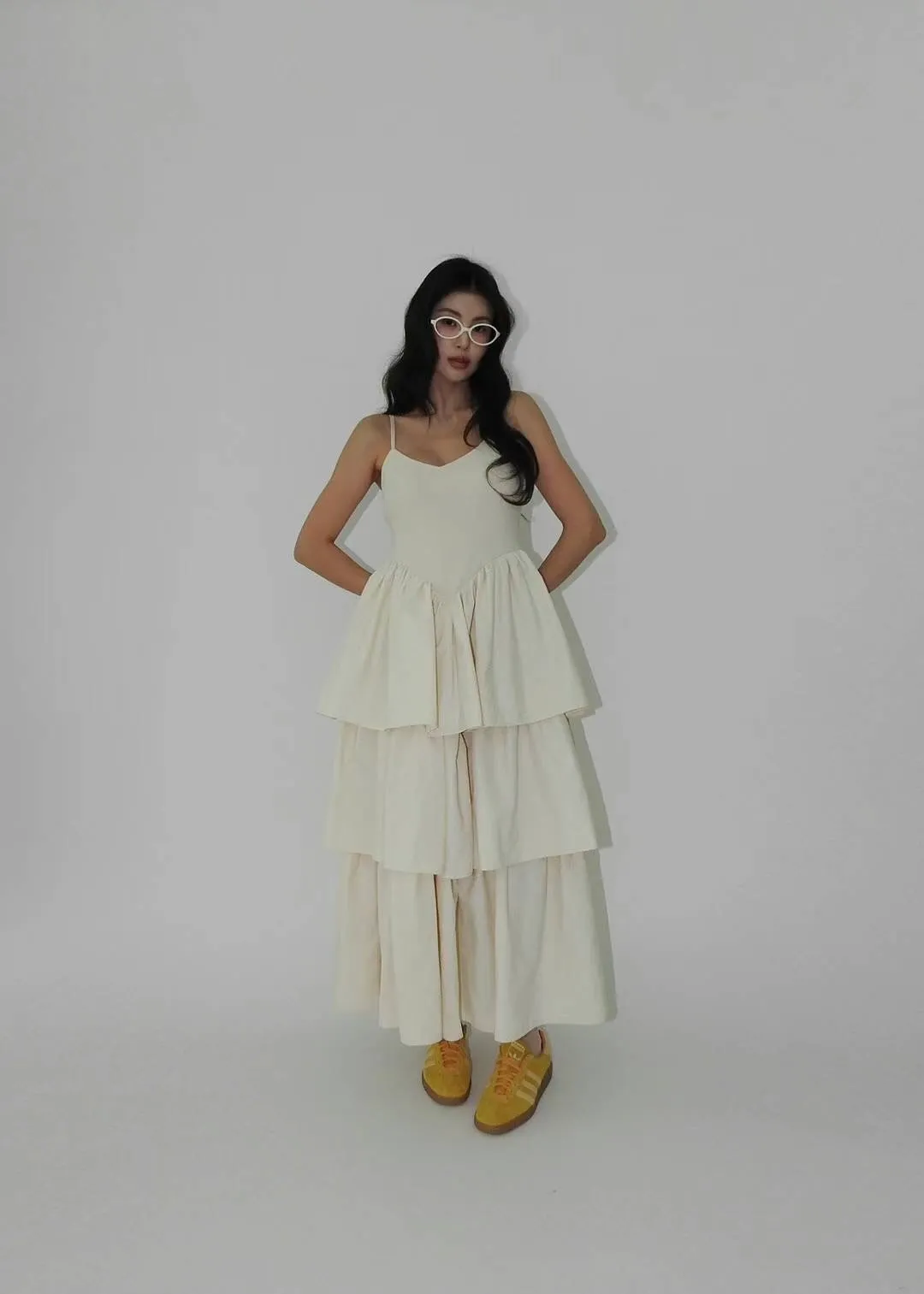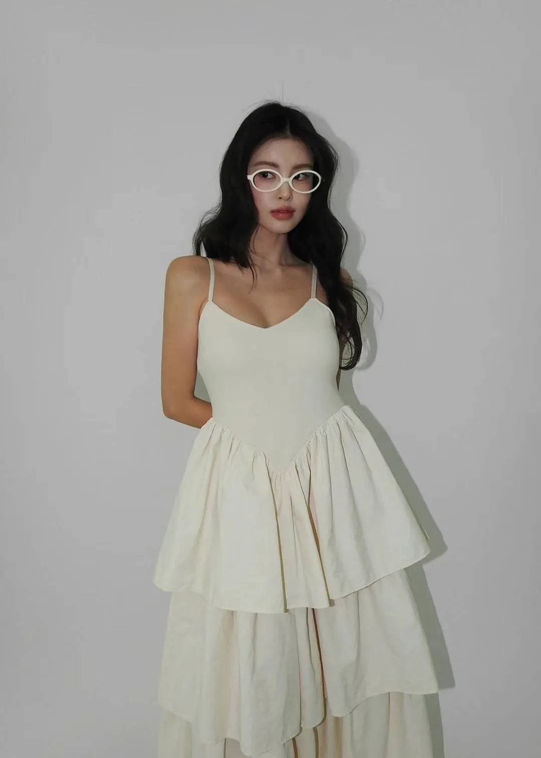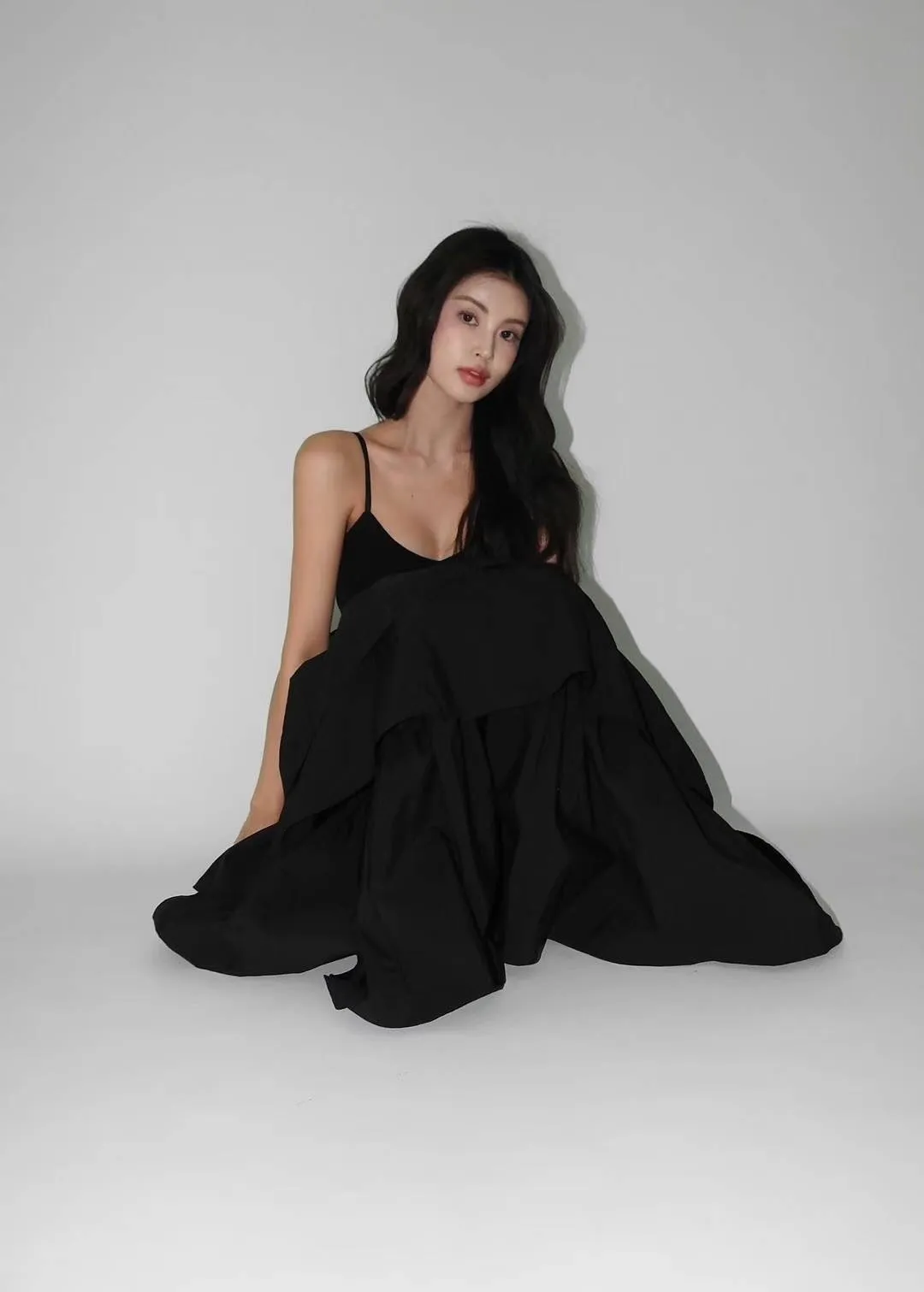 TA746細肩帶三層蛋糕洋裝 米 藍 黑 官網價$1920 線上價$1890