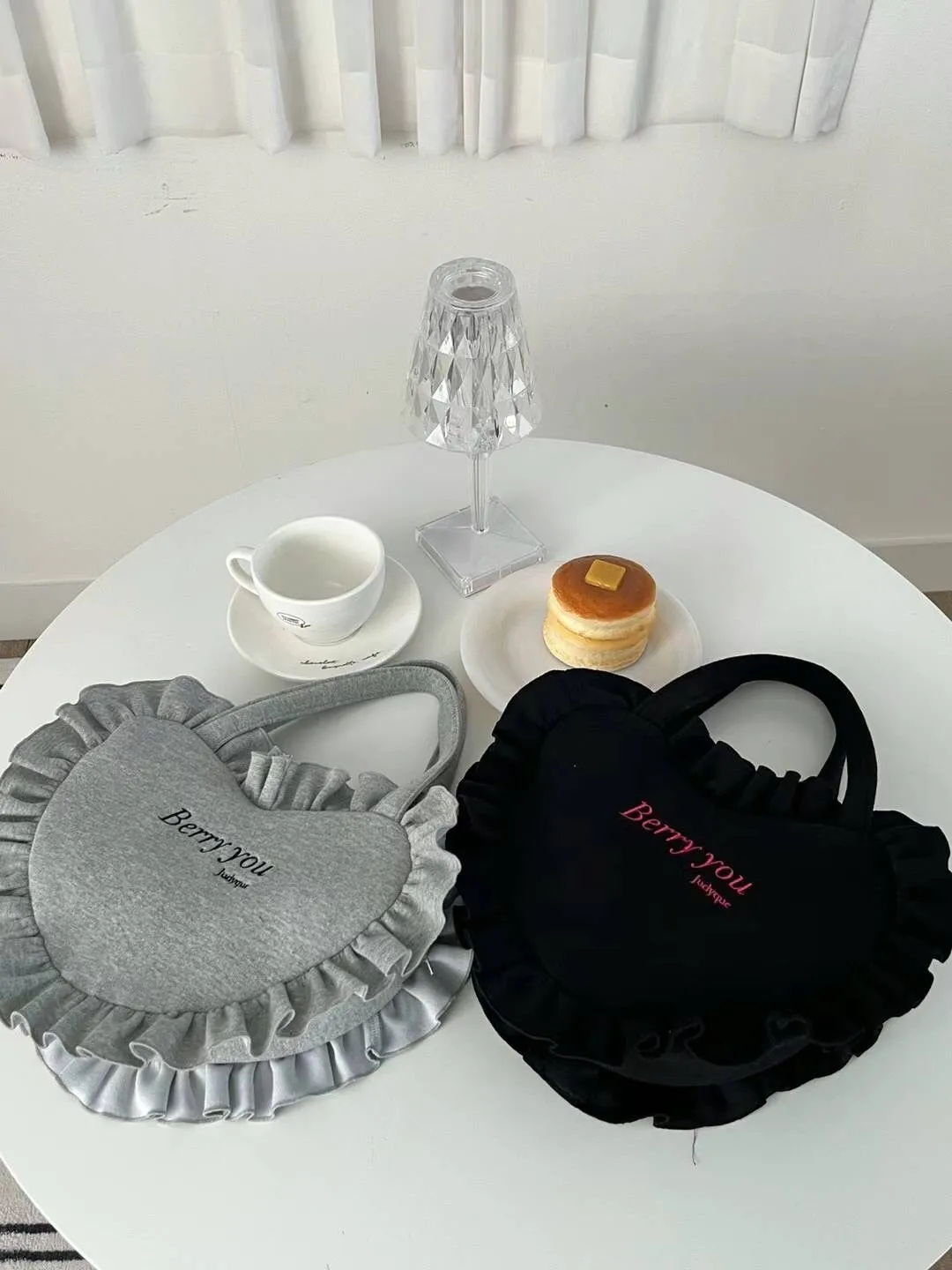 TA747刺繡英文荷葉滾邊包包 灰 黑 官網價$1020 線上價$990