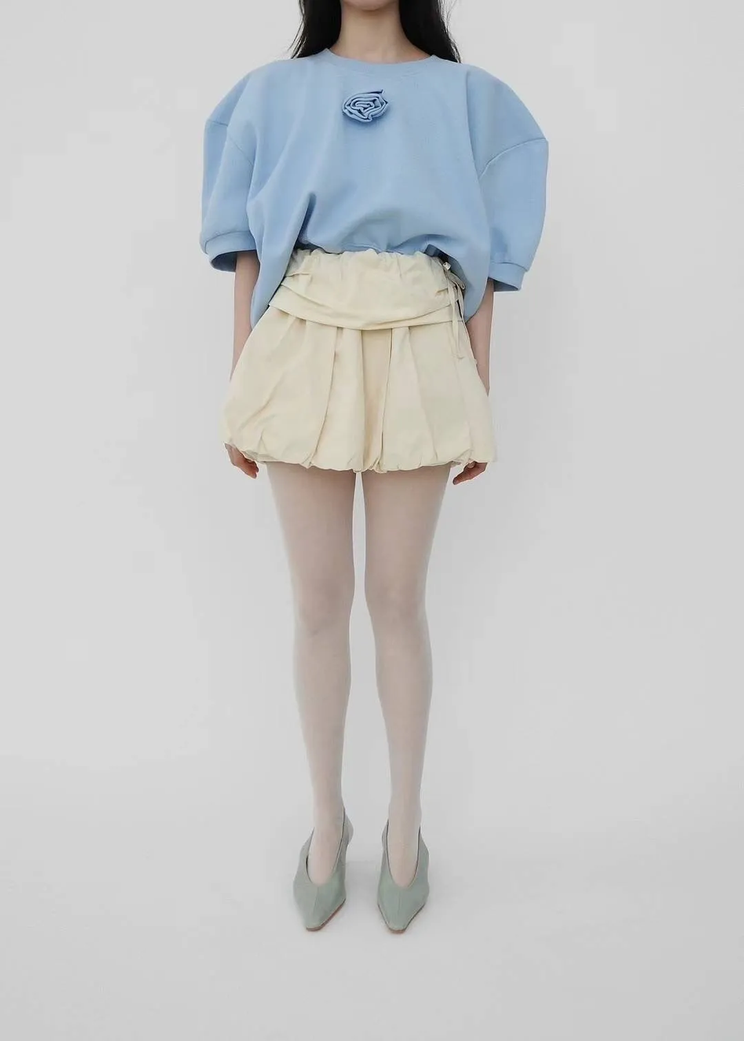 TA753玫瑰花蓬蓬袖上衣 白 灰 藍 官網價$1050 線上價$1020