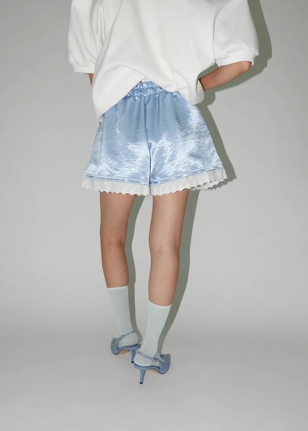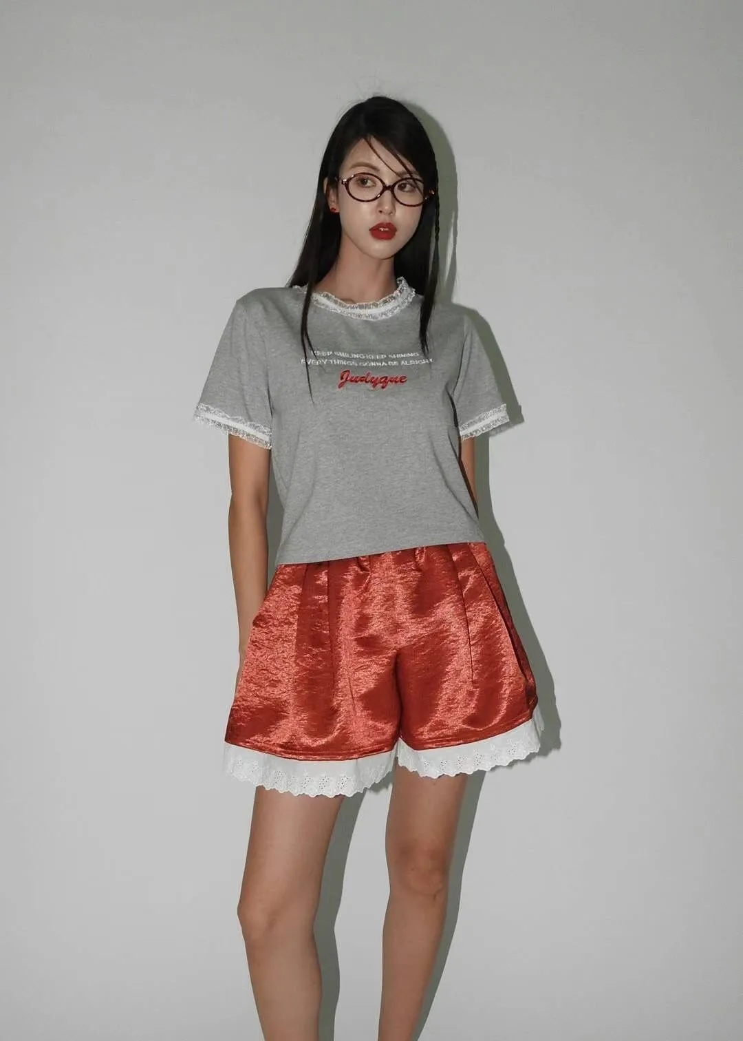 TA761光澤感蕾絲短褲 綠 咖 藍 黑 官網價$760 線上價$730