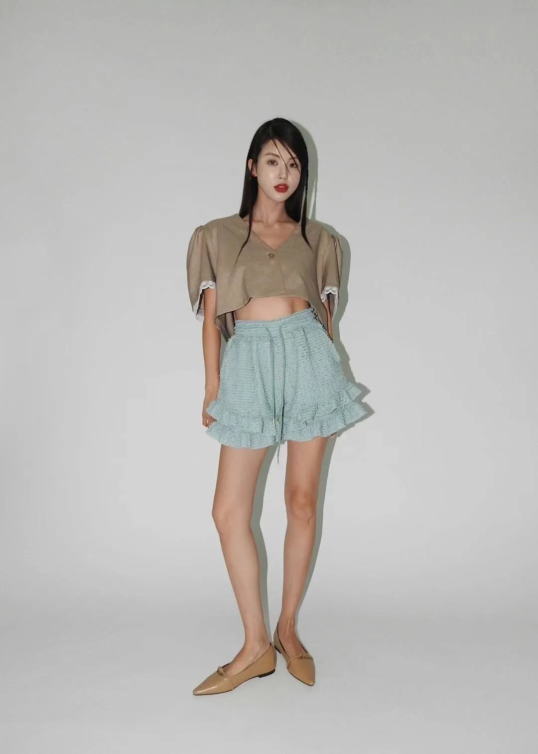 TA765荷葉小滾邊短褲 米 綠 黑 官網價$1280 線上價$1250