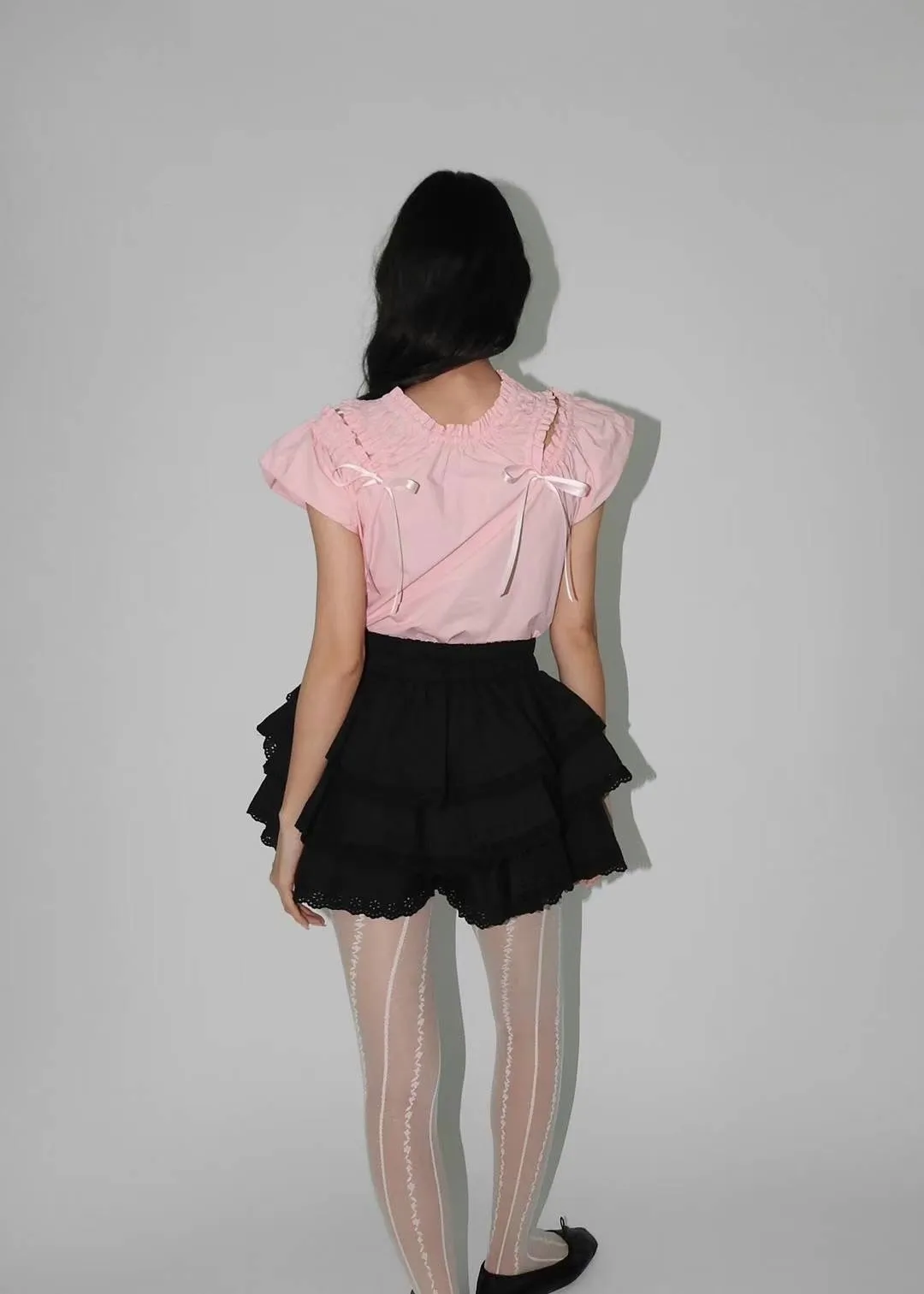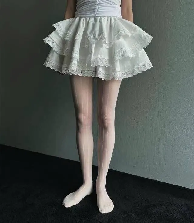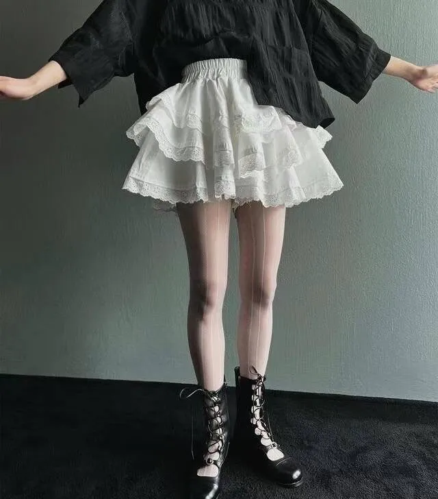 TA770多層次蕾絲燒花褲裙 白 黑 官網價$1320 線上價$1290