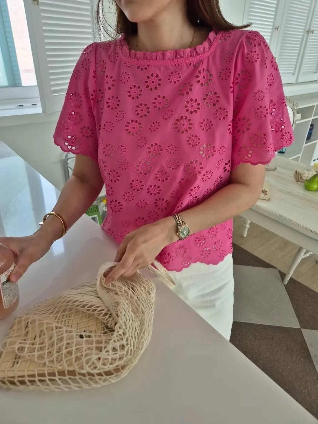 TA777高級簍空蕾絲刺繡美衣 粉 綠 官網價$1420 線上價$1390