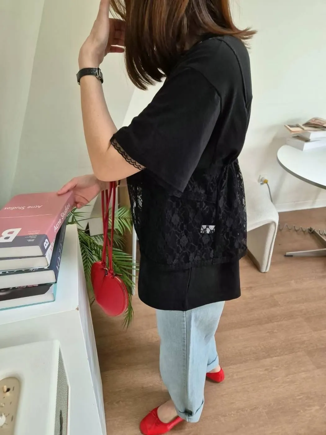 TA778細緻透光蕾絲罩衫 白 黑 官網價$790 線上價$760