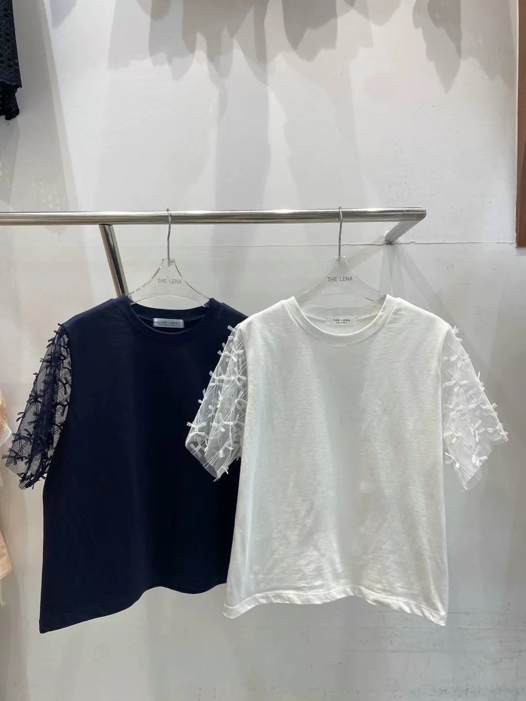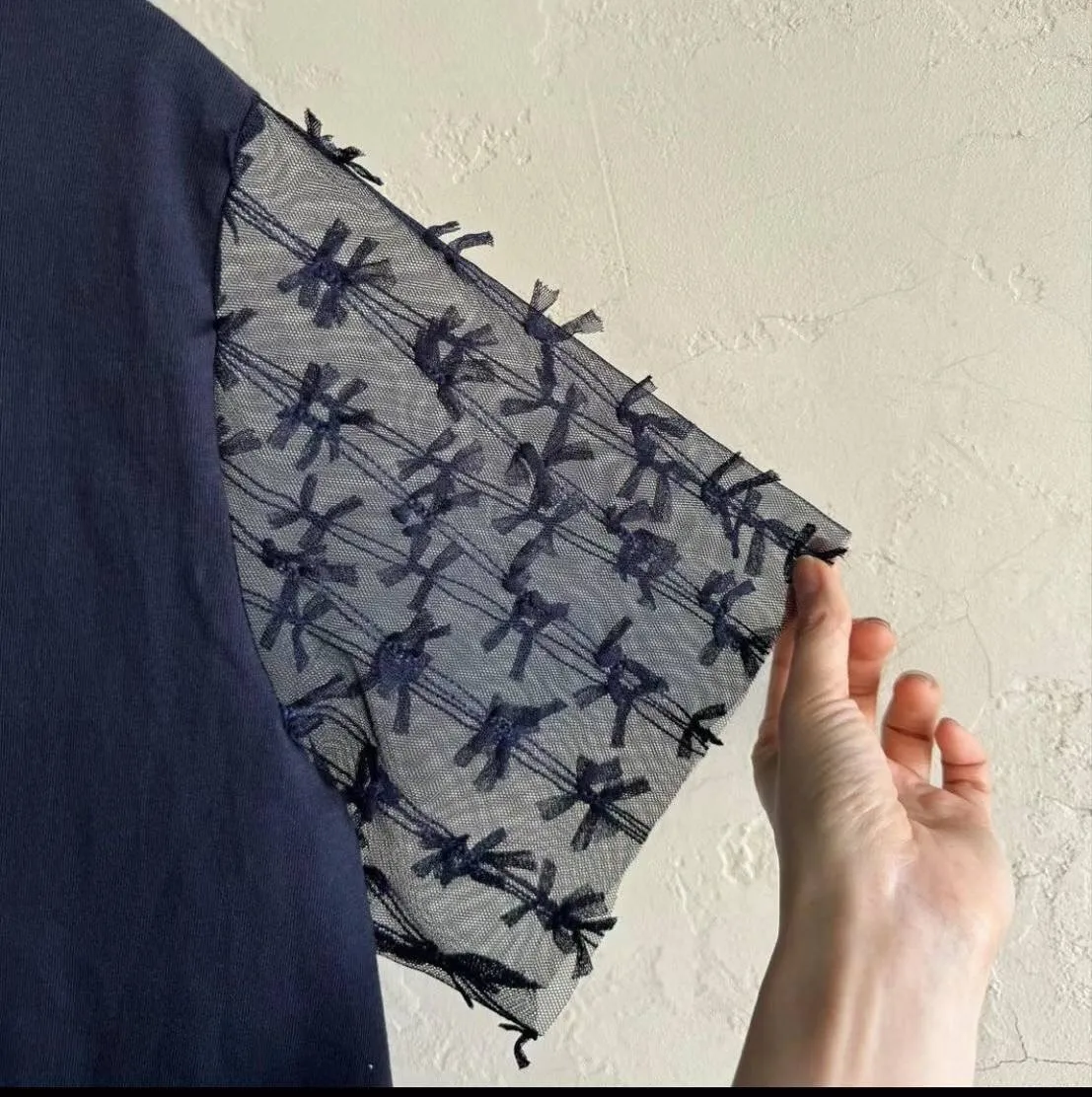 棉+網紗 柔軟親膚網紗 透光蝴蝶結網紗袖 厚度 適合台灣夏天