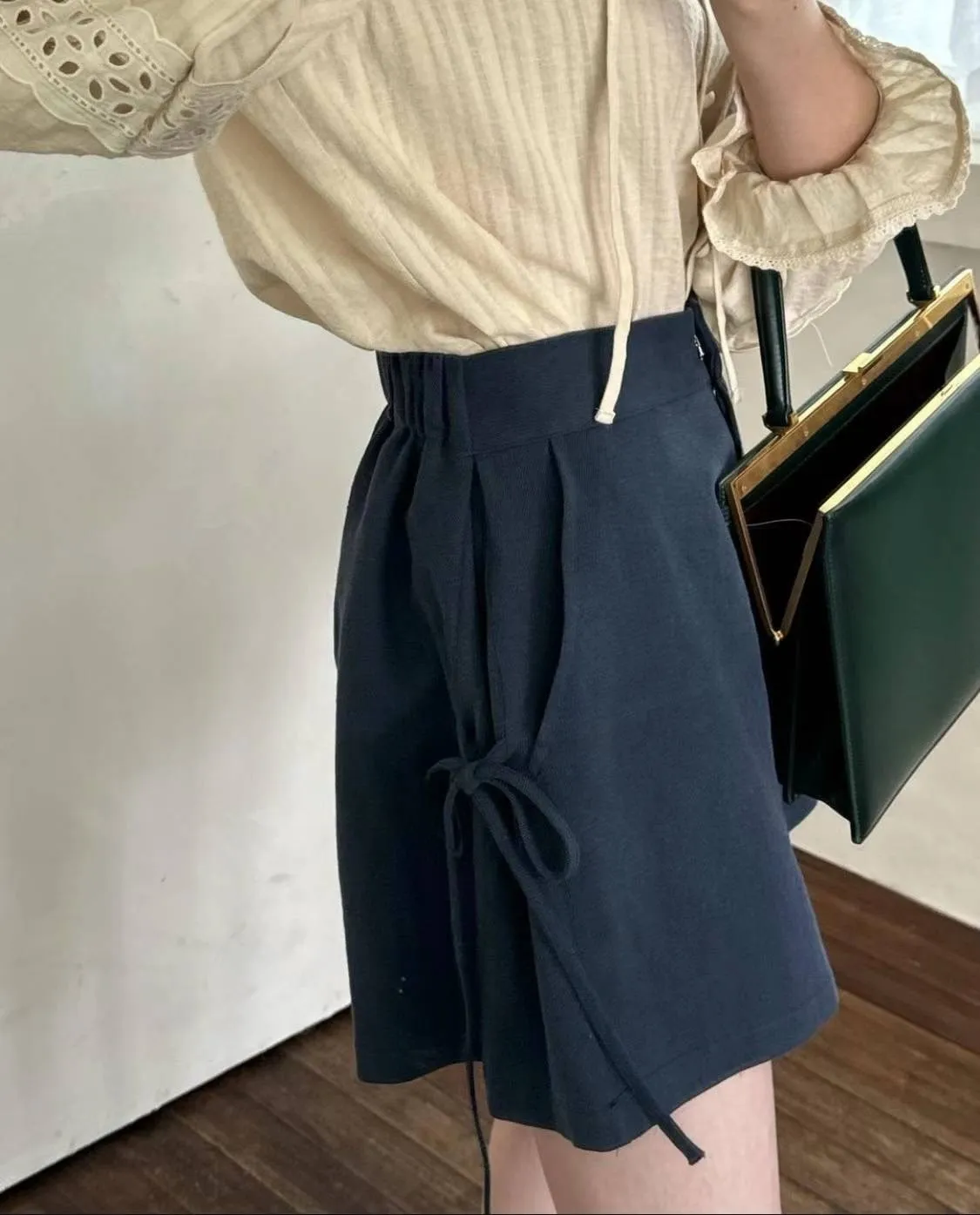 TA784雙側綁帶蝴蝶結短褲 藍 奶茶 官網價$1160 線上價$1130