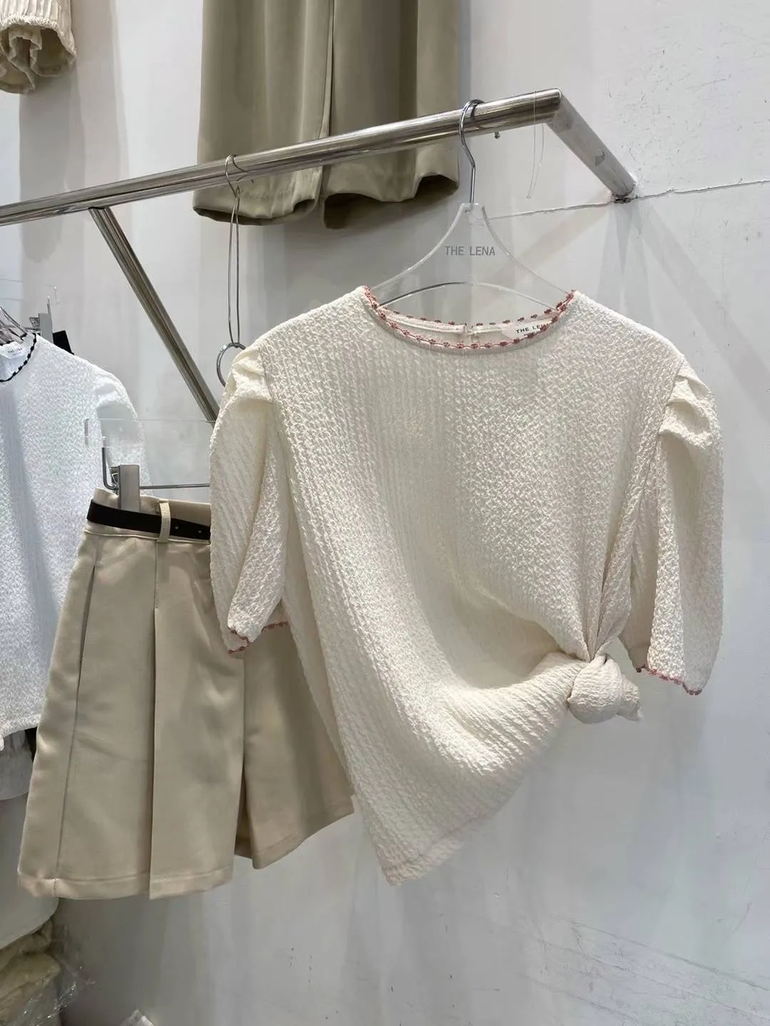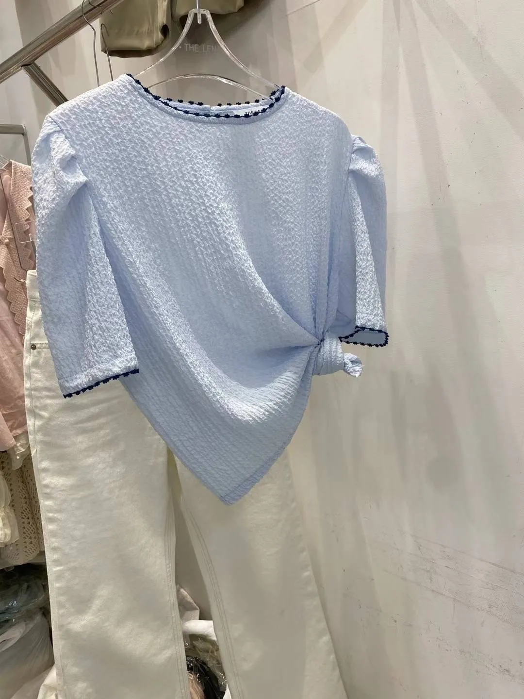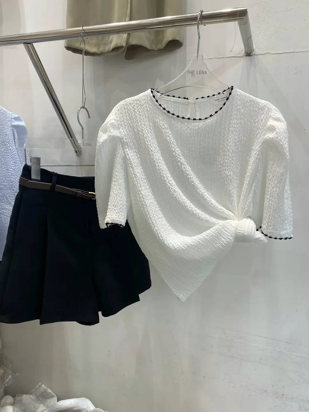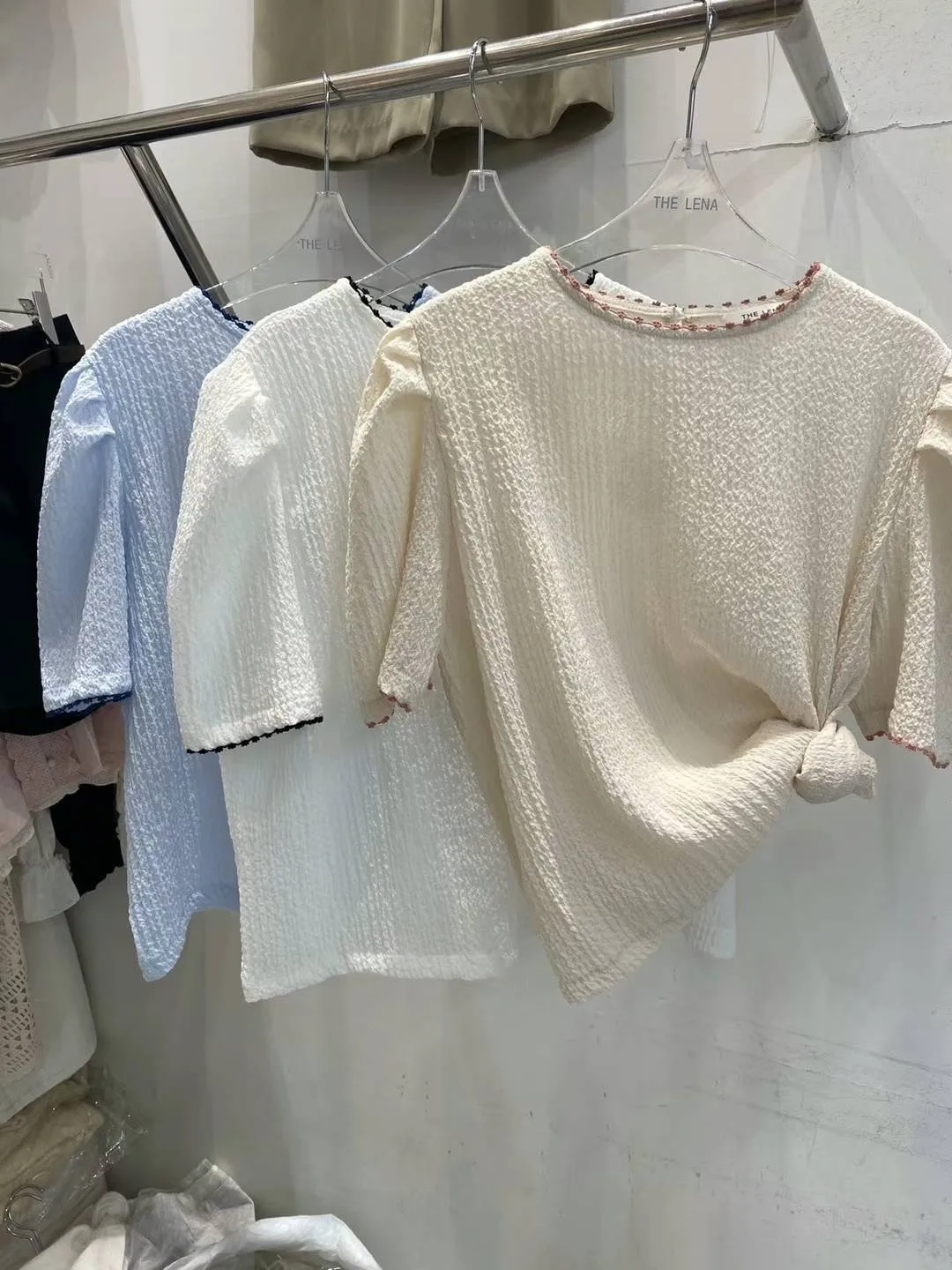 TA787細緻可愛滾邊上衣 白 米 藍 官網價$910 線上價$880