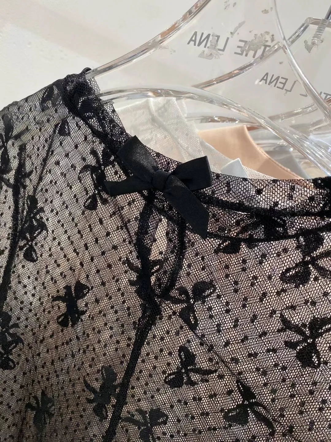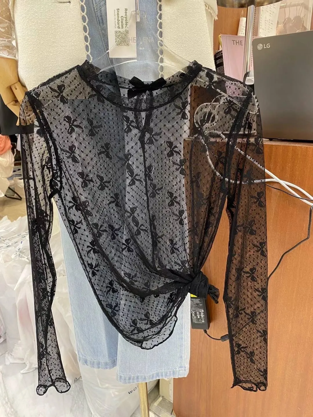 TA801透光網紗精緻罩衫 白 黑 官網價$620 線上價$590