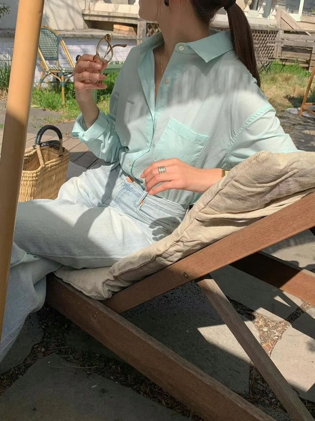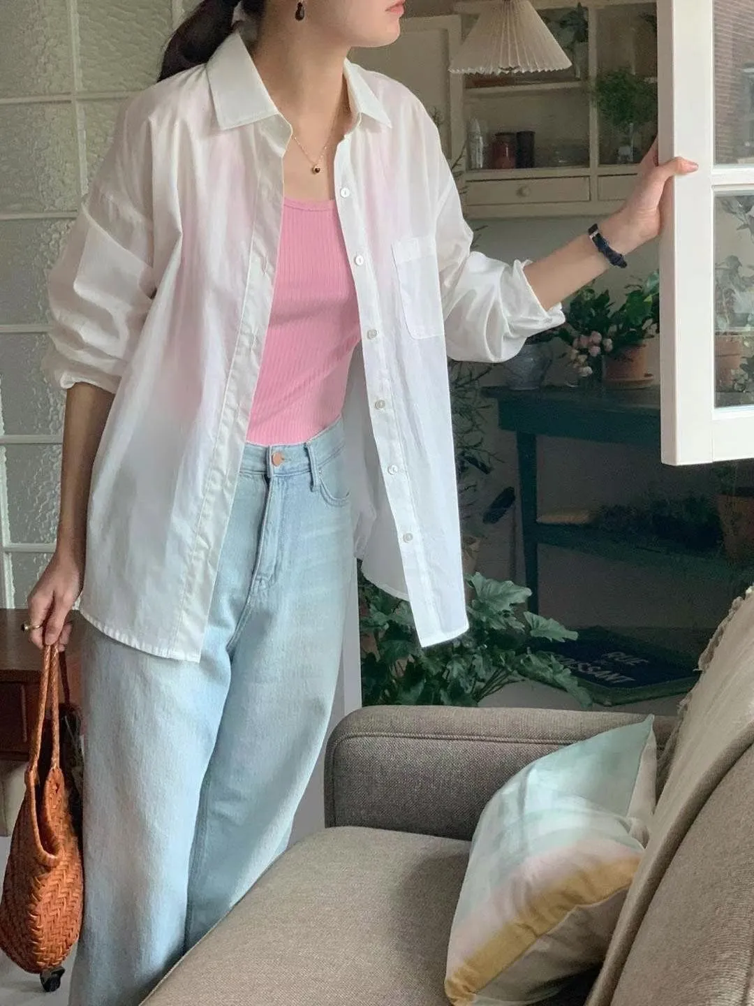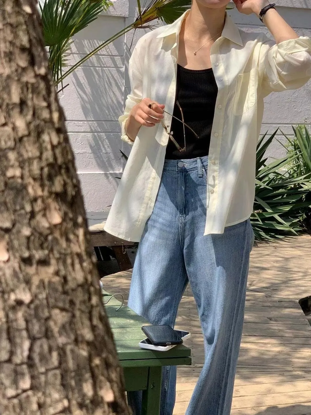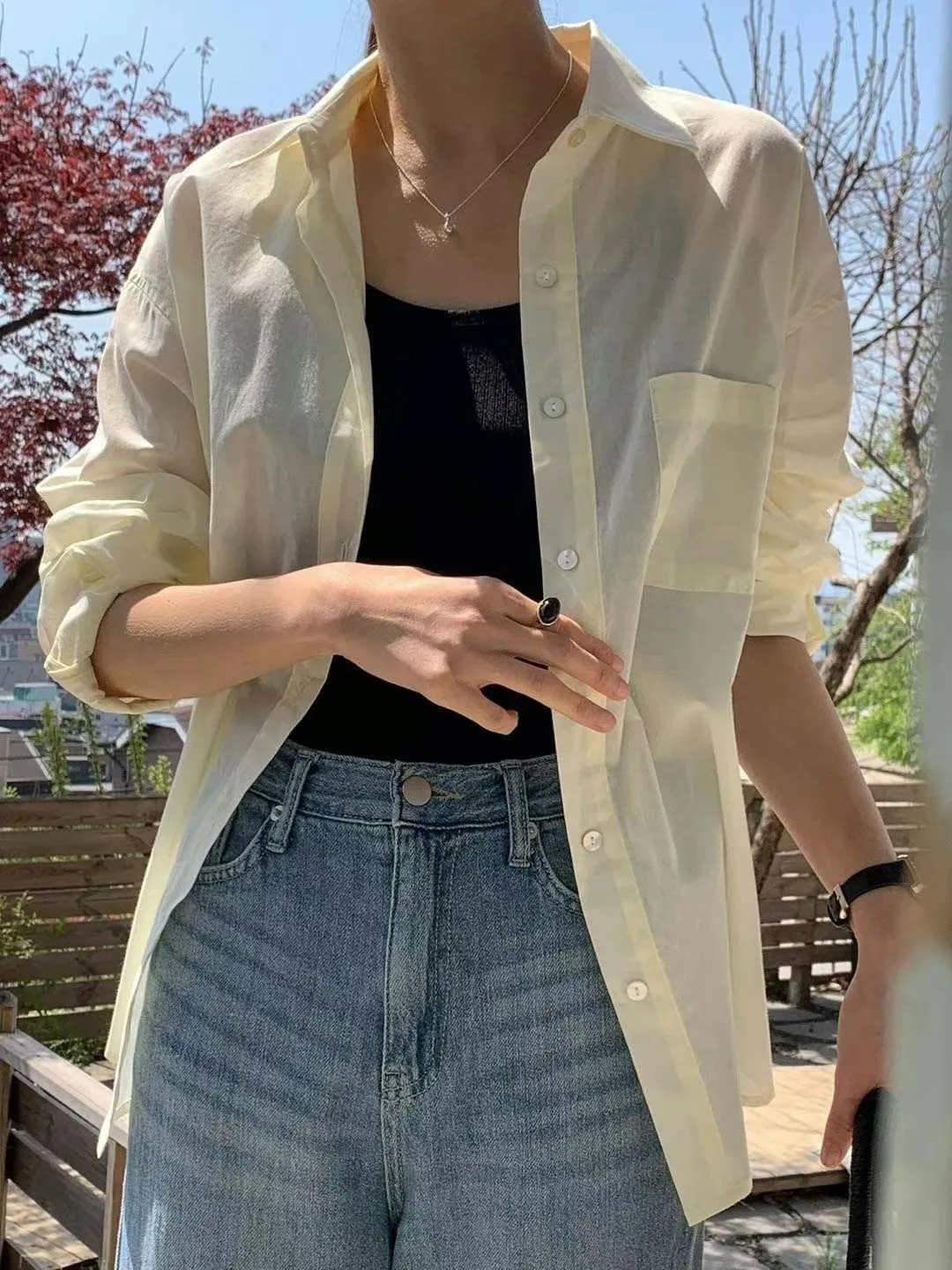棉 極薄款 透光視覺 貝殼釦 適合夏天 可襯衫可外套