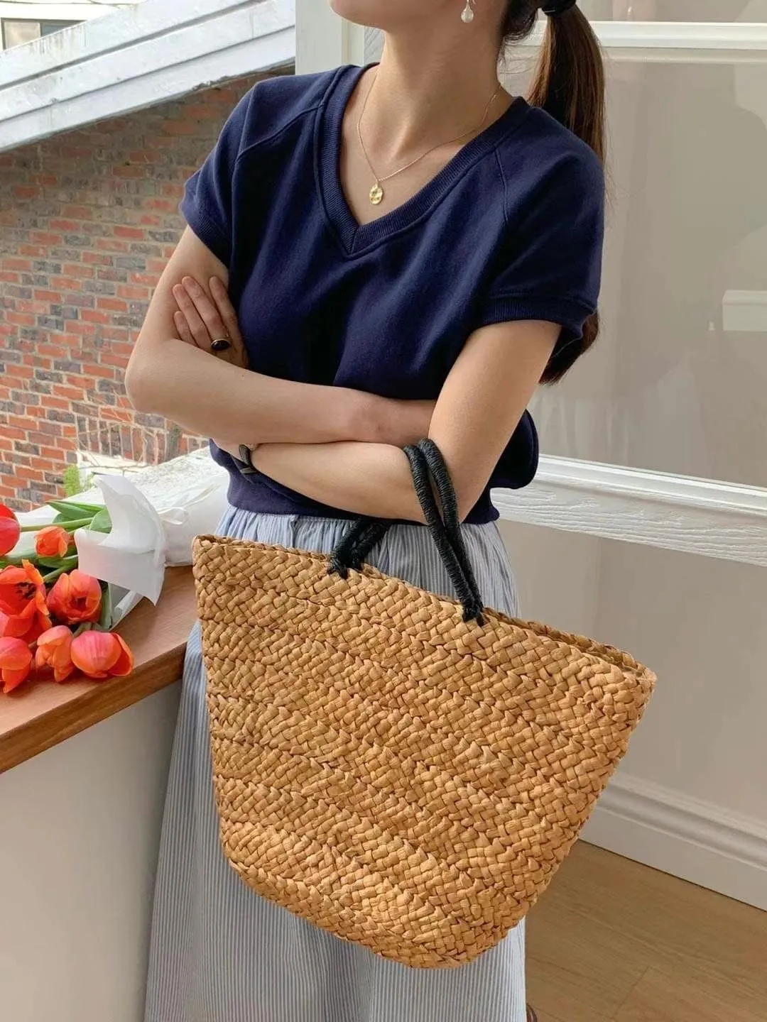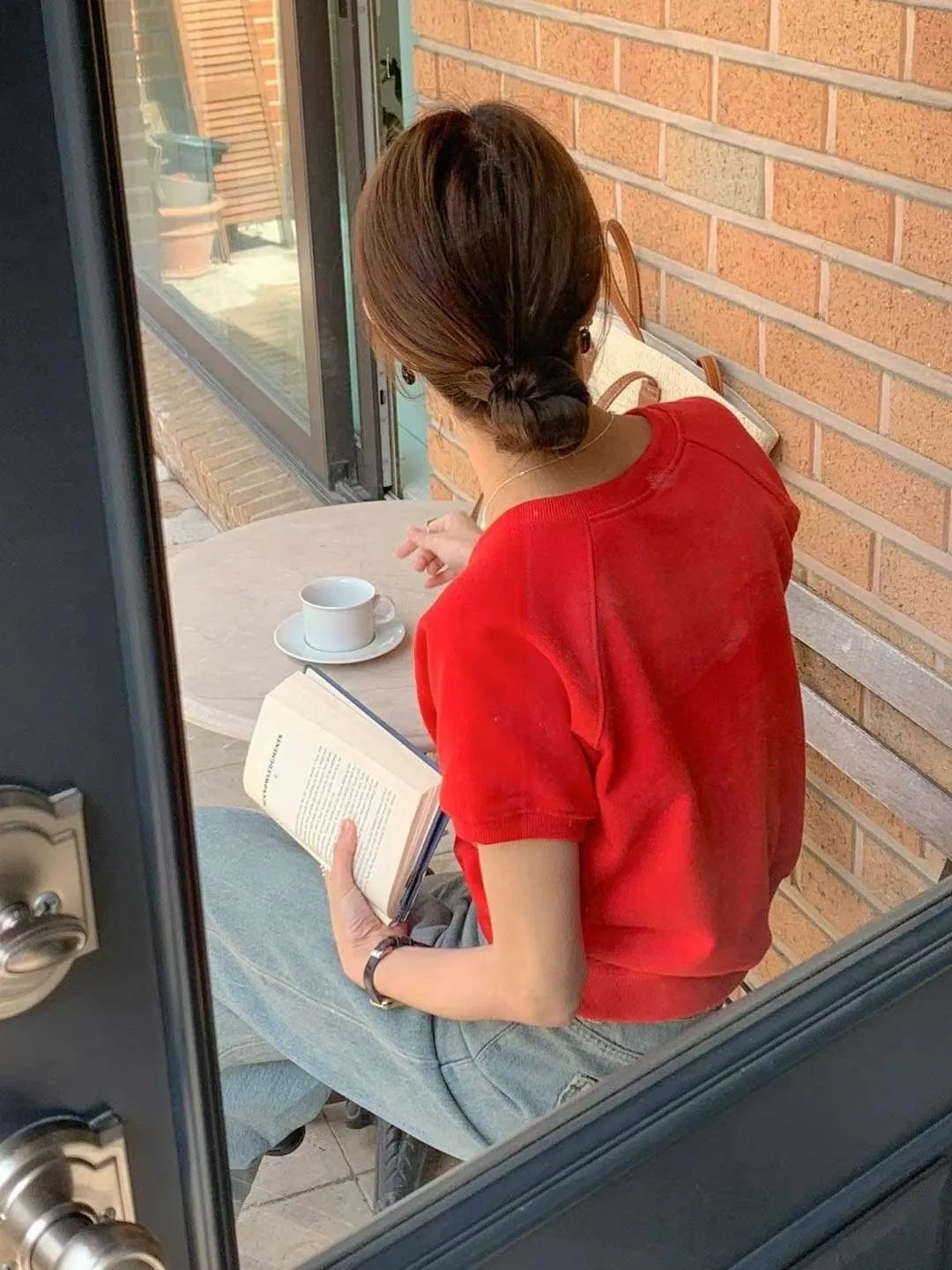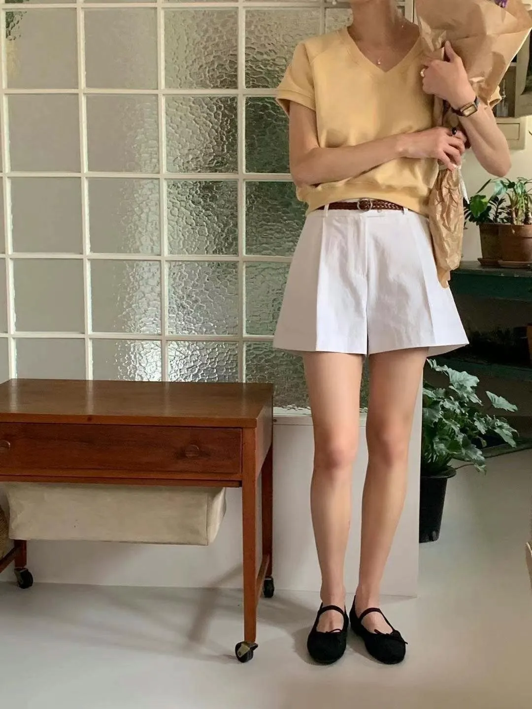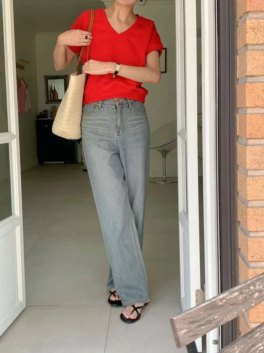 棉 落肩款 觸感舒適 V領顯瘦 偏短版下擺鬆緊 穿到M號