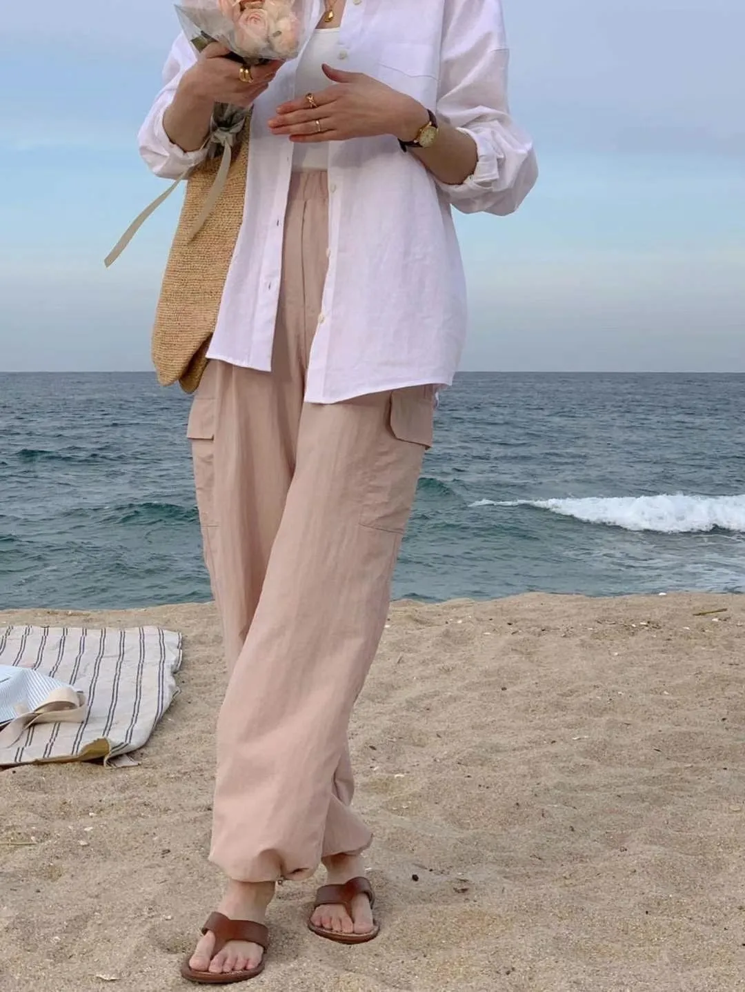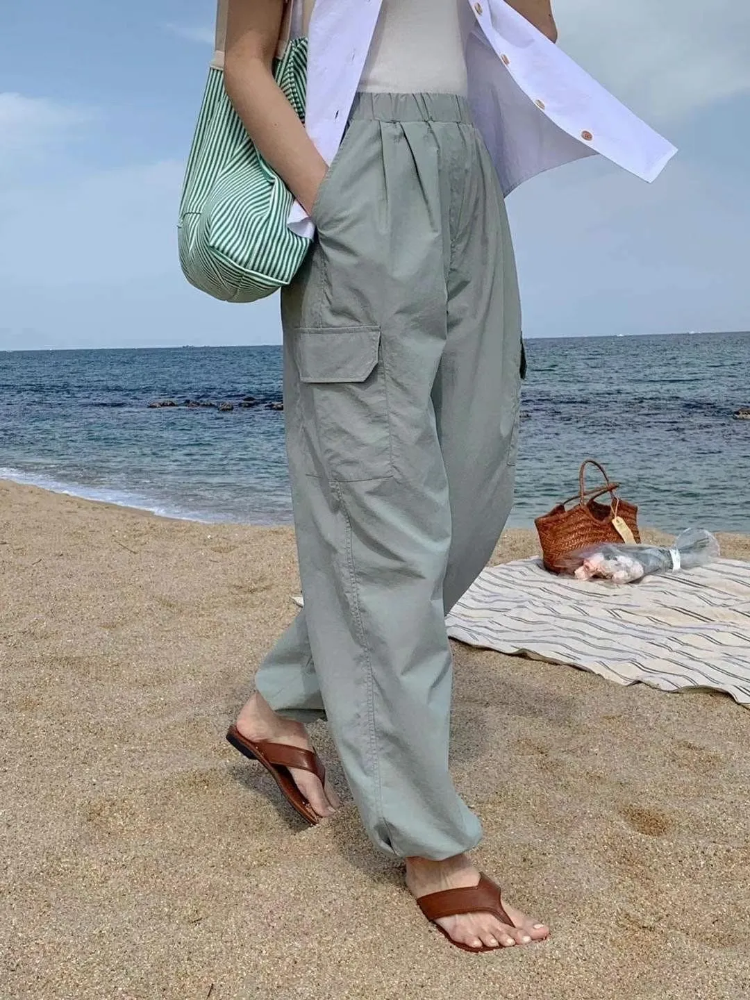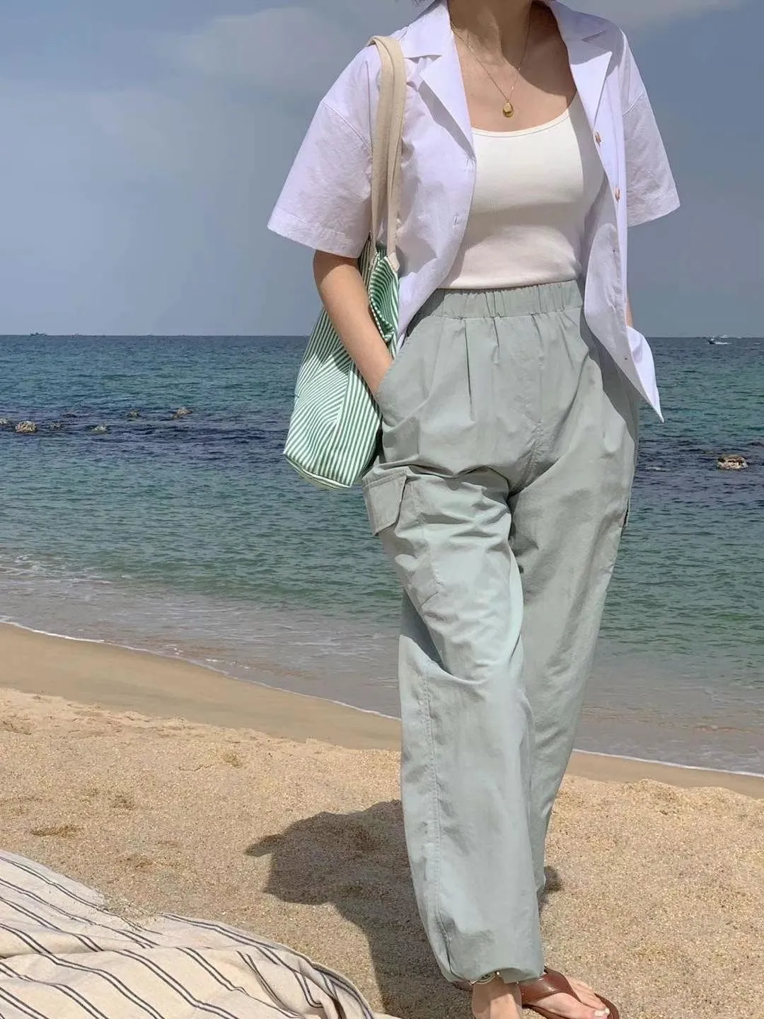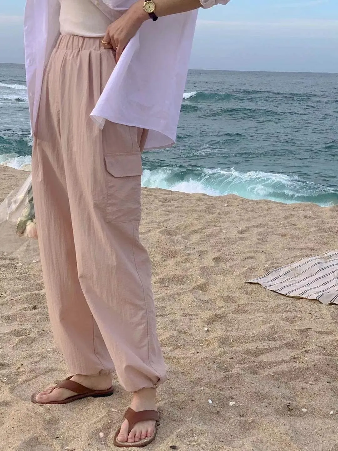 聚酯 薄款涼感 全腰鬆緊 有口袋 下擺抽繩 小L友善