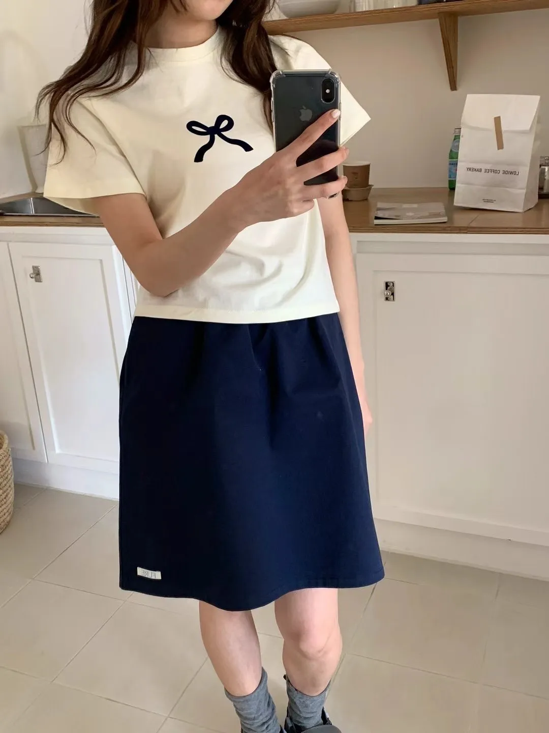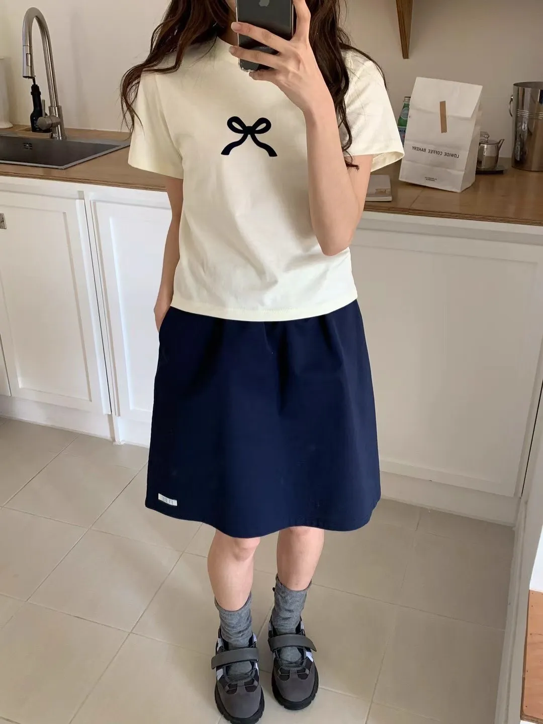 TA856冰絲棉小存在蝴蝶結短袖Tshirt(底色分色) 白 米 藍 官網價$599 線上價$569