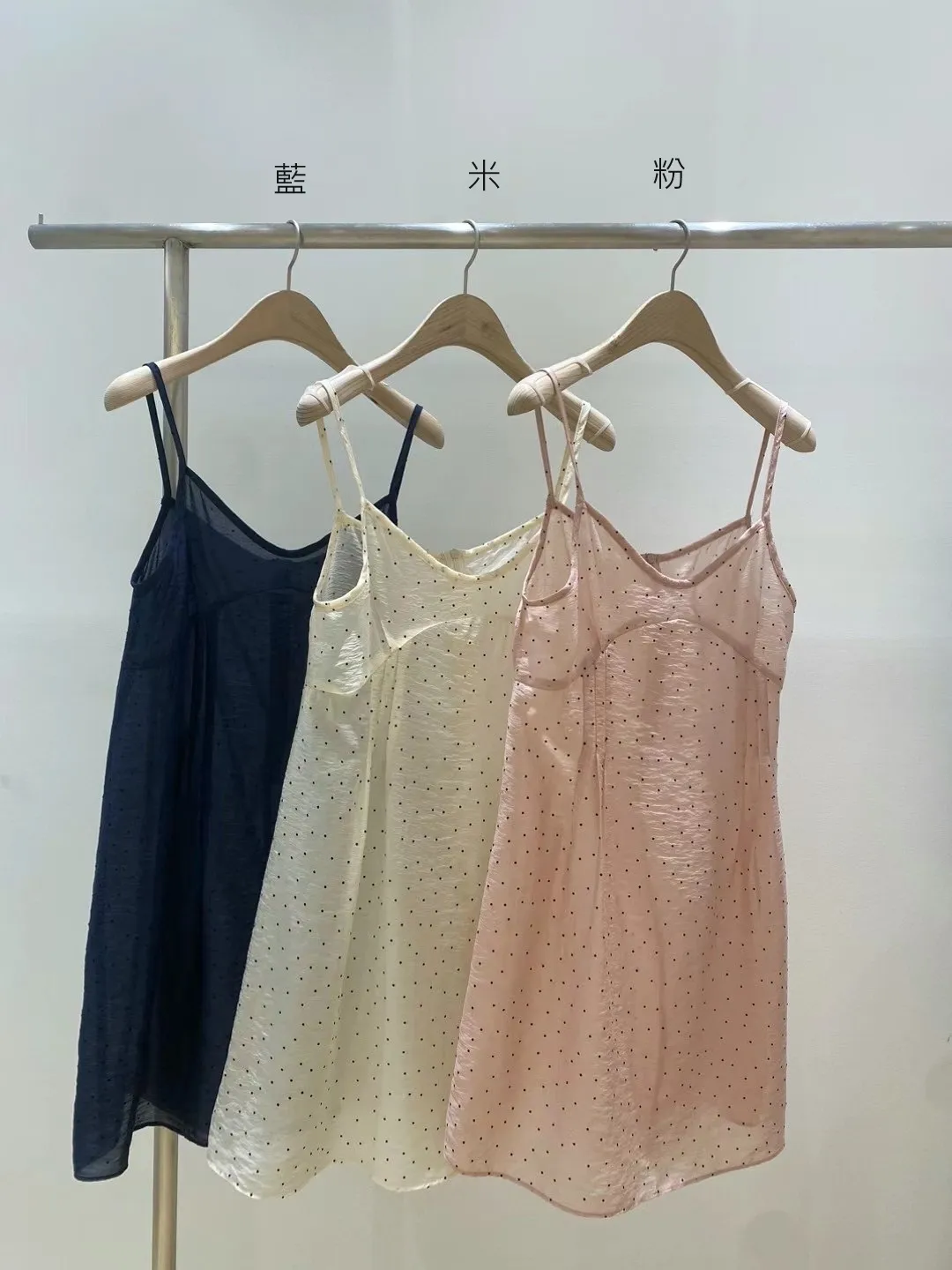 TA870點點細肩帶透光洋裝外罩衫 米 藍 粉 官網價$1180 線上價$1150