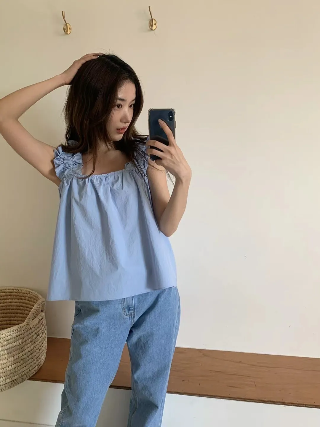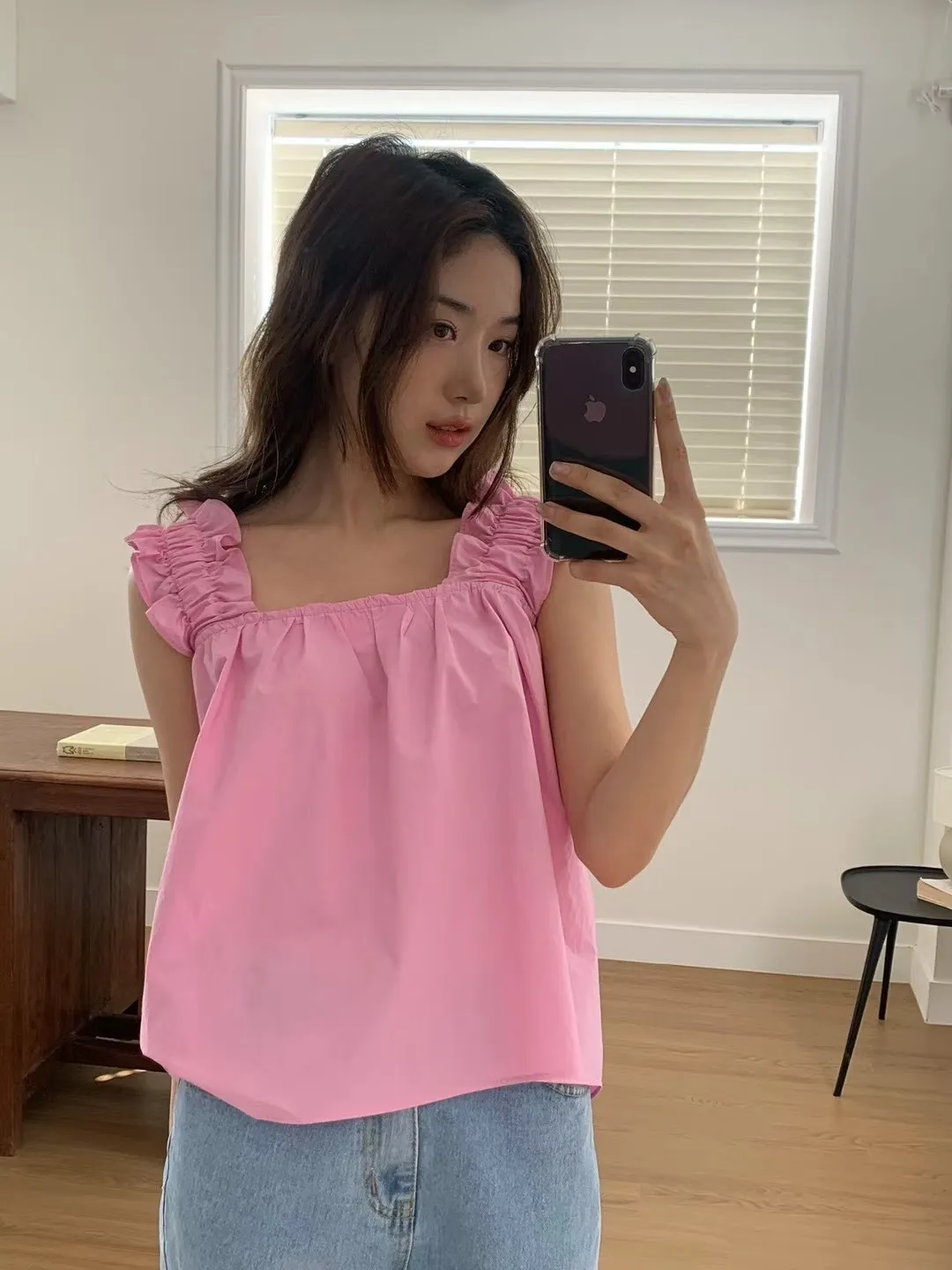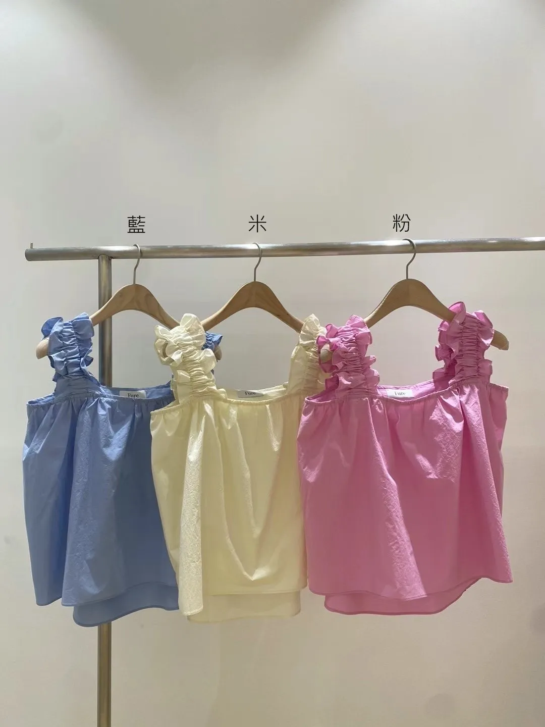 TA871度假雲朵寬肩帶平口上衣 米 粉 藍 官網價$950 線上價$920