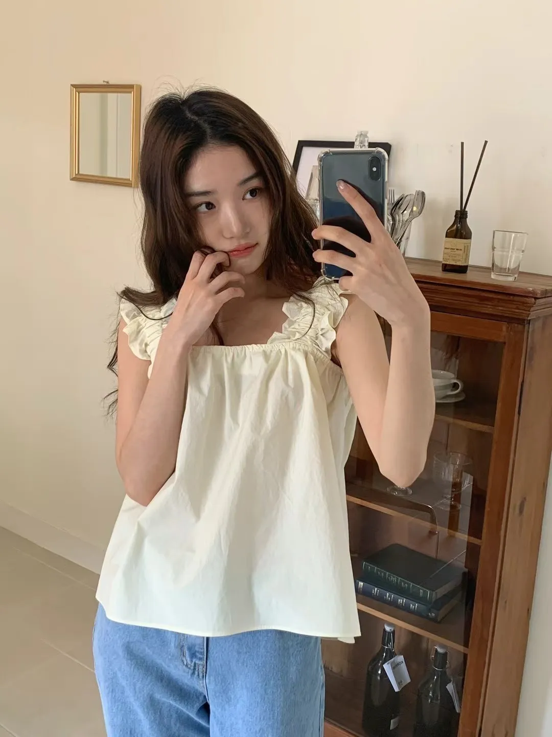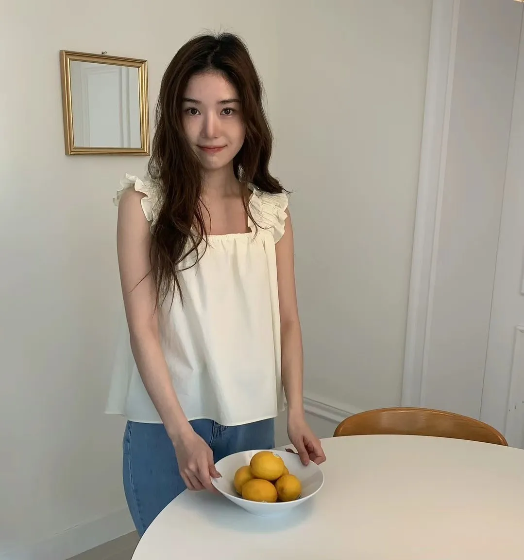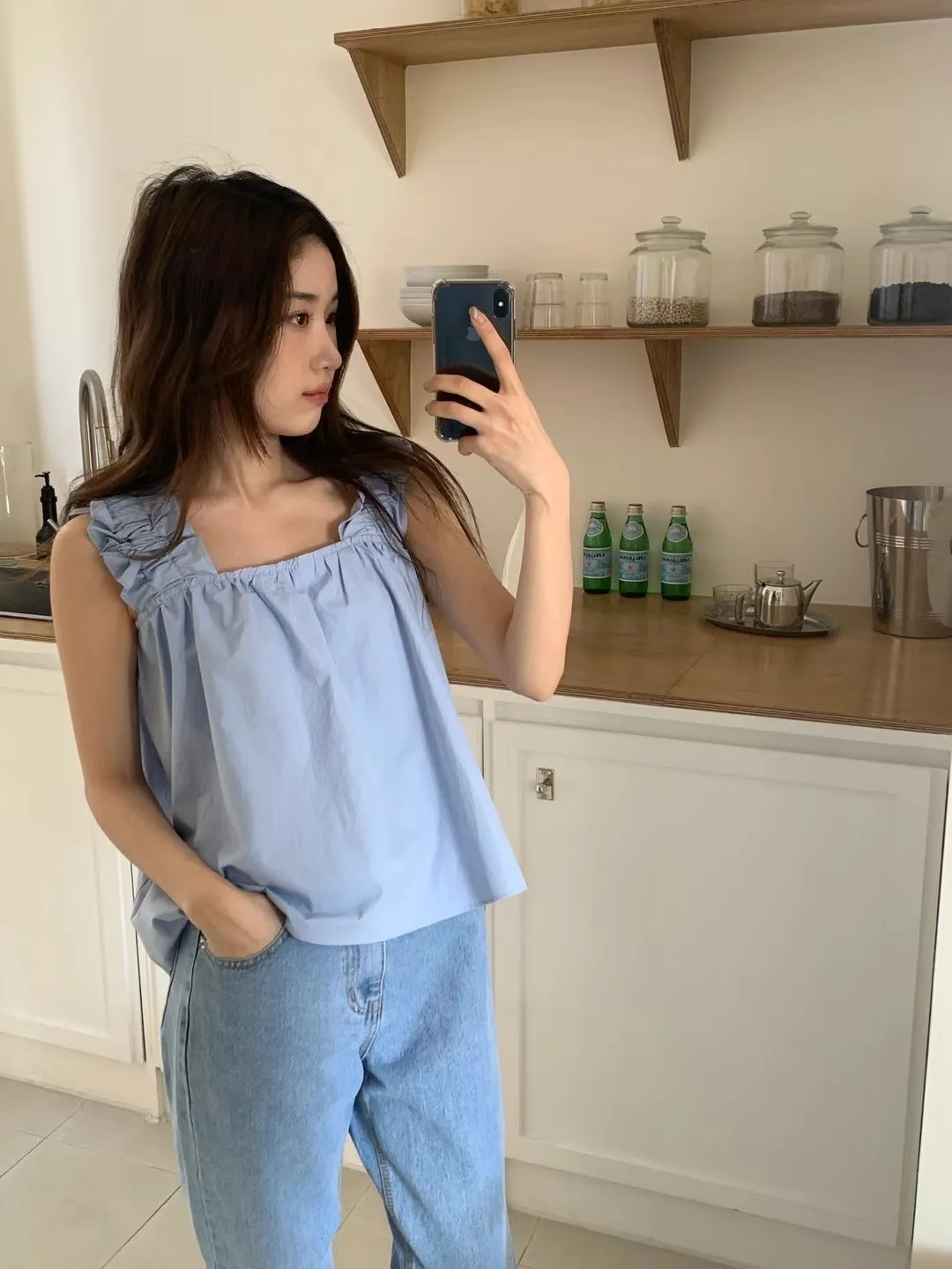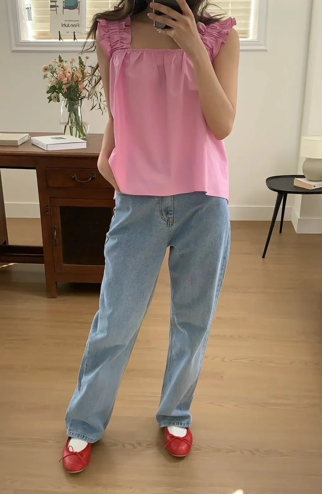 TA871度假雲朵寬肩帶平口上衣 米 粉 藍 官網價$950 線上價$920