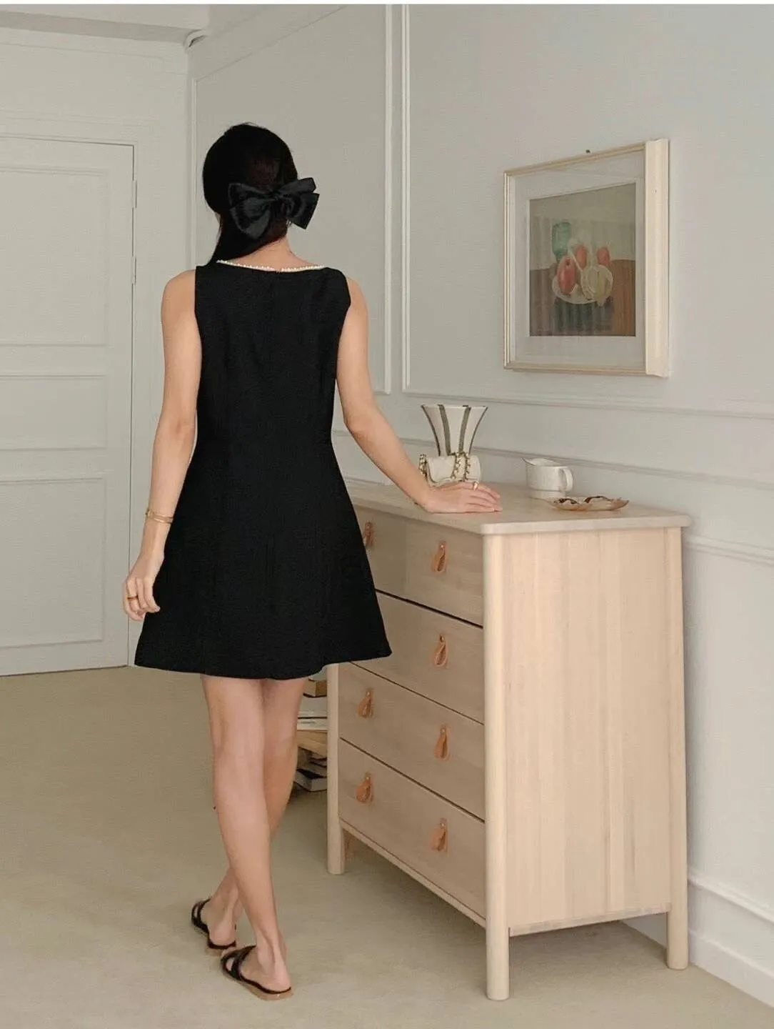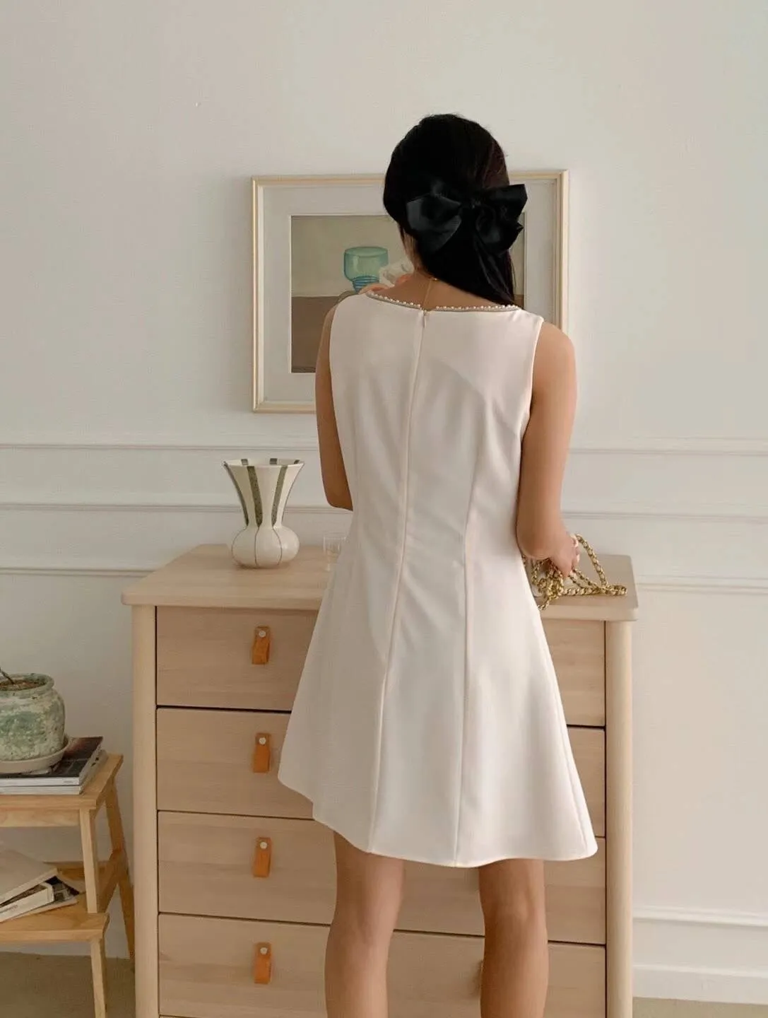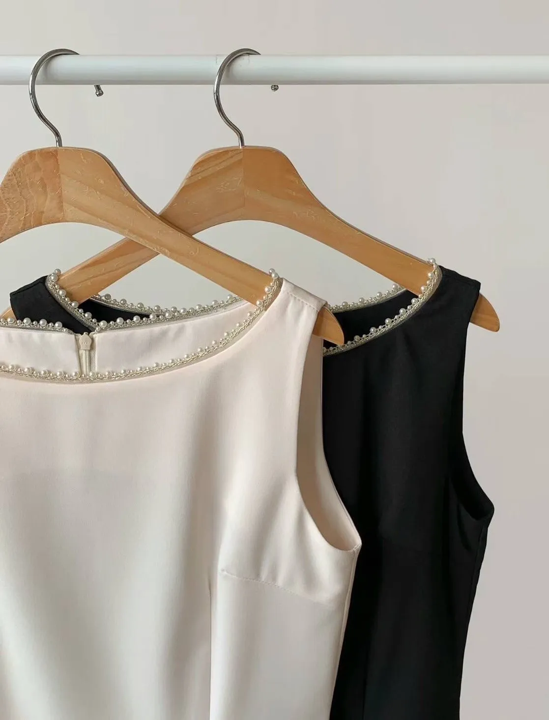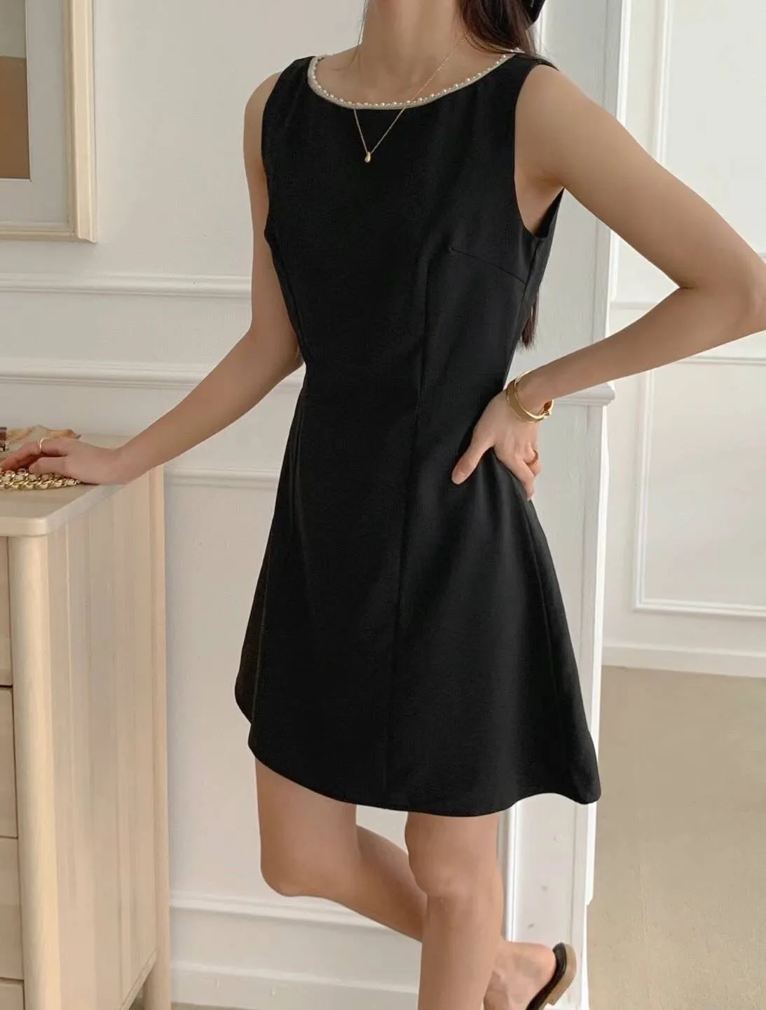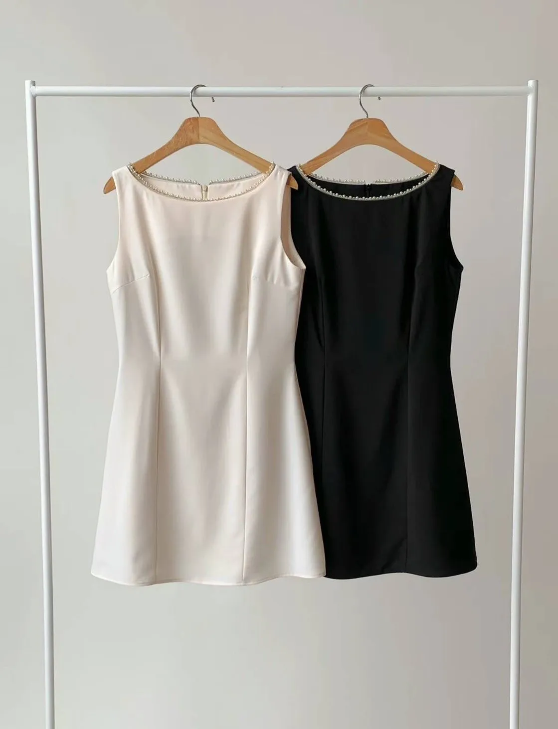 TA881層次細珍珠鑲領洋裝 米 黑 官網價$1180 線上價$1150