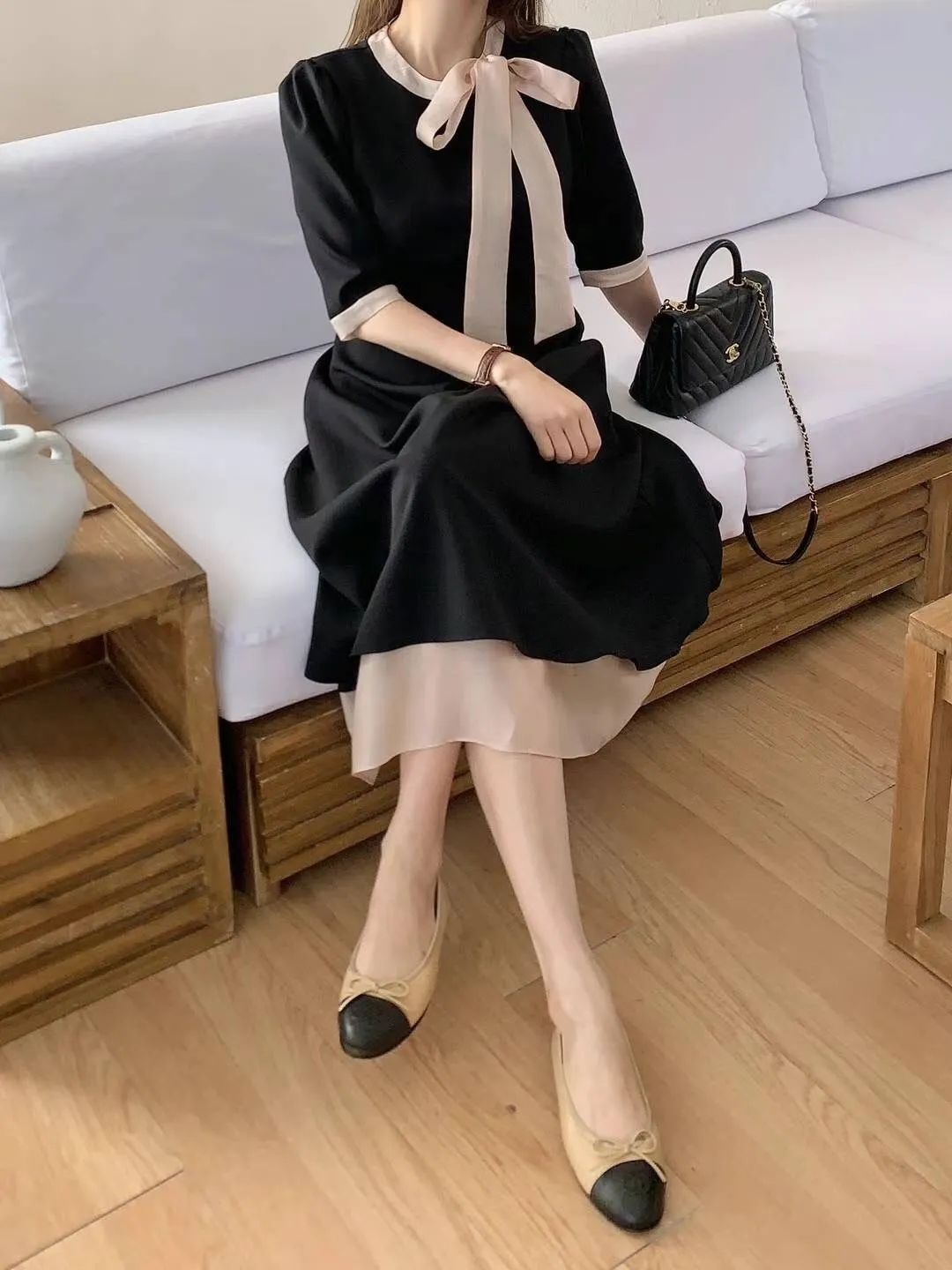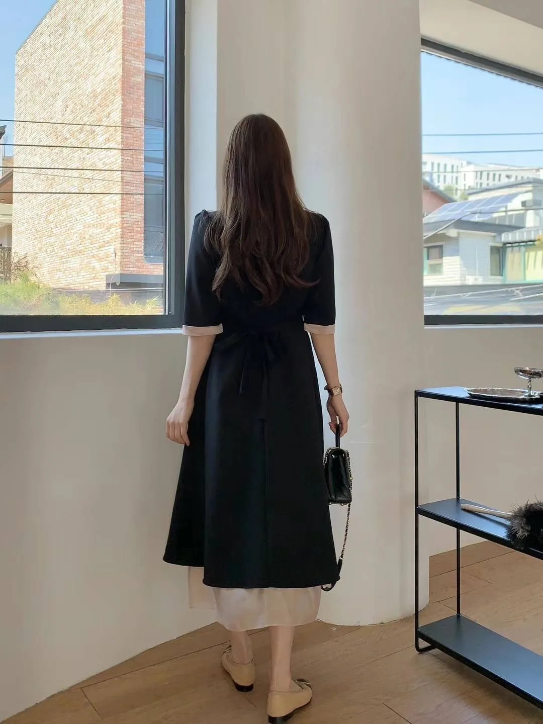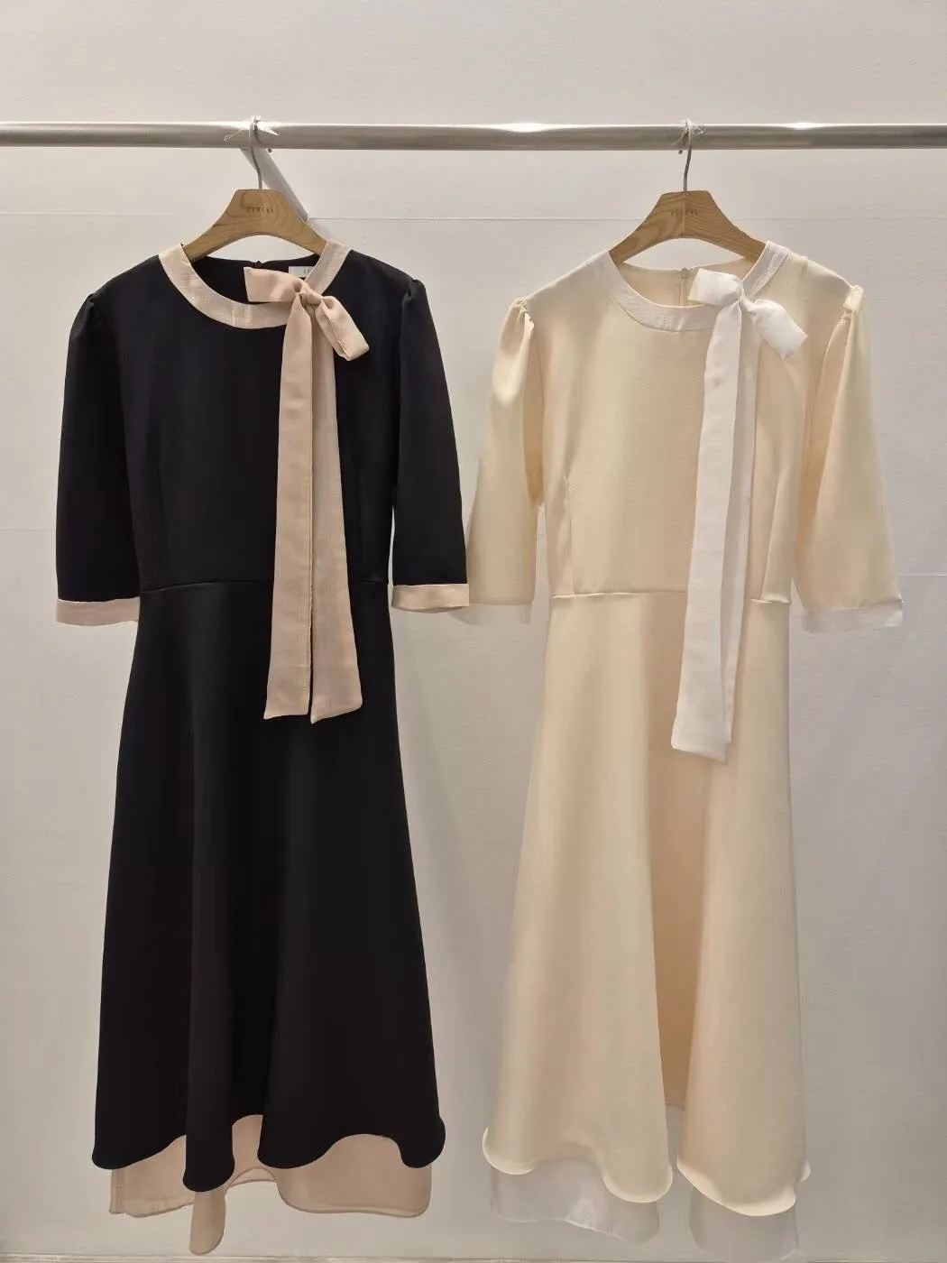 TA884優雅靈魂胸綁帶洋裝 米 黑 官網價$1250 線上價$1220