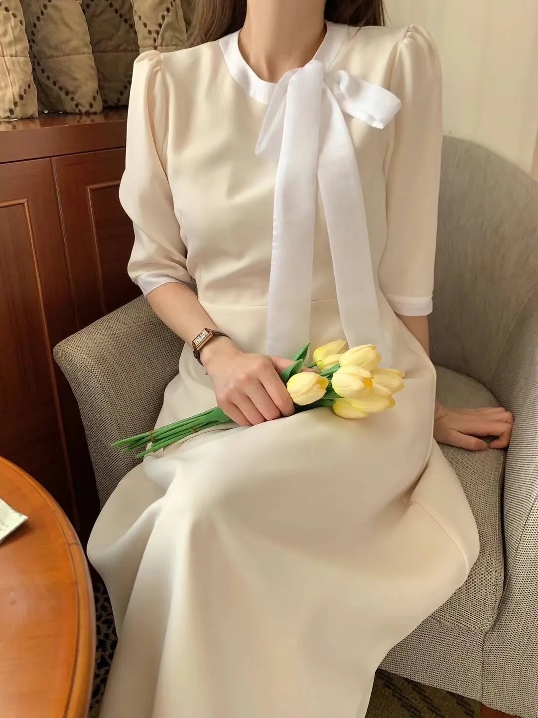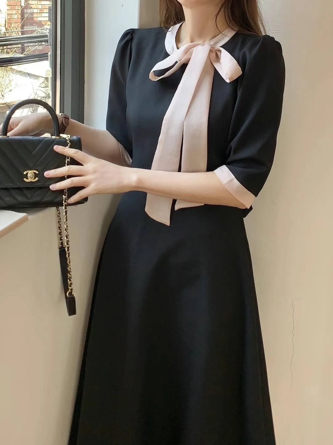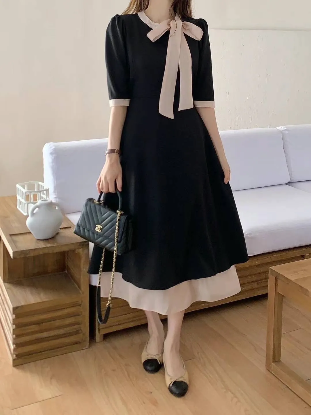 TA884優雅靈魂胸綁帶洋裝 米 黑 官網價$1250 線上價$1220