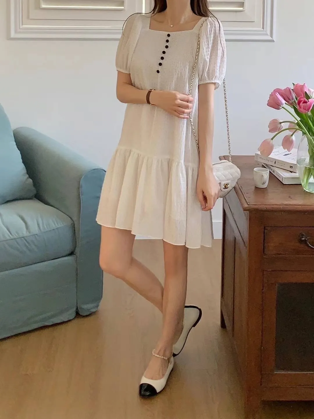 TA888方領細緻點點俏麗洋裝 白 橘 官網價$1250 線上價$1220