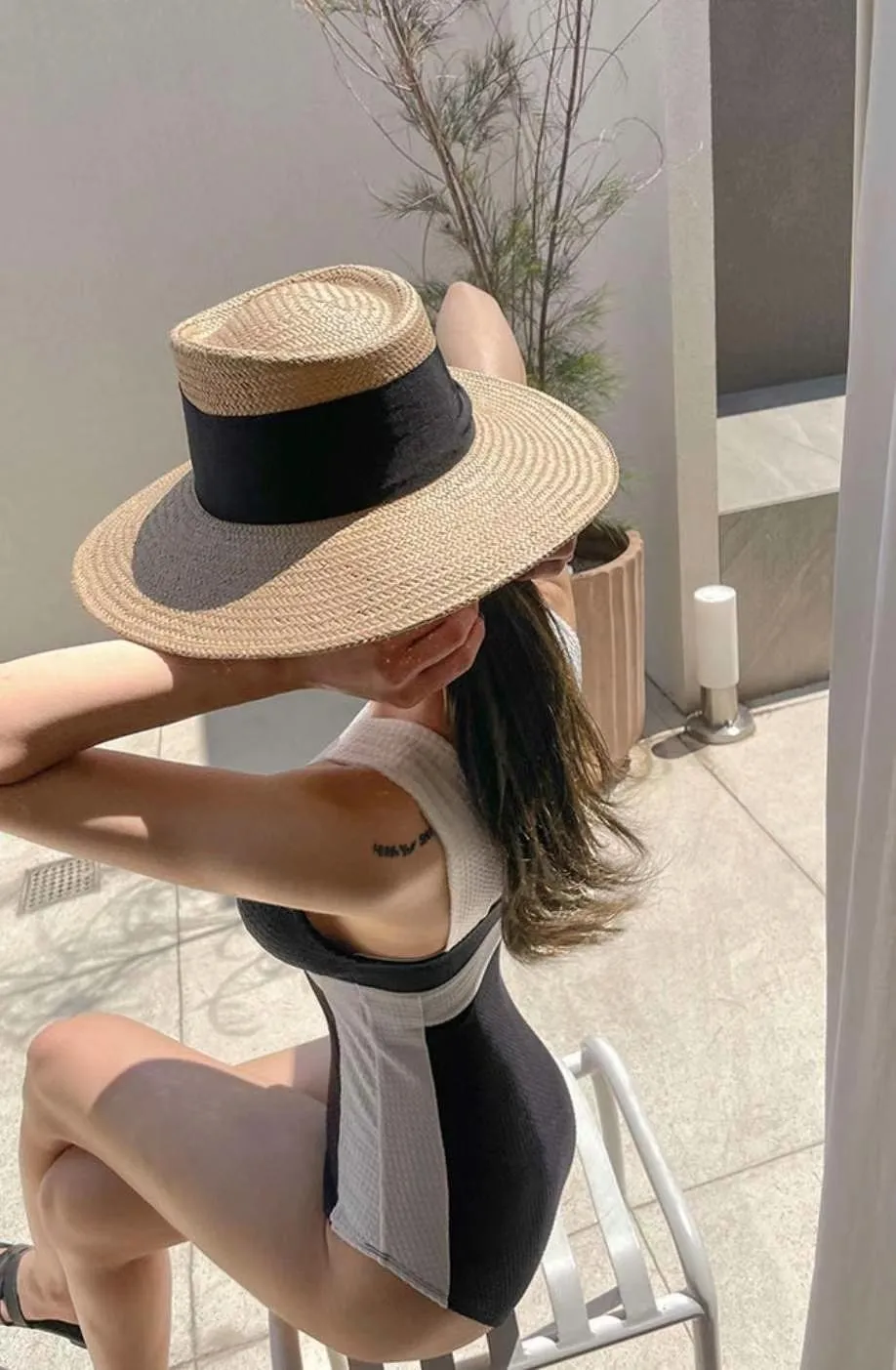 可調頭圍 寬帽沿小臉 遮陽防曬 灰色帽子=白色緞帶