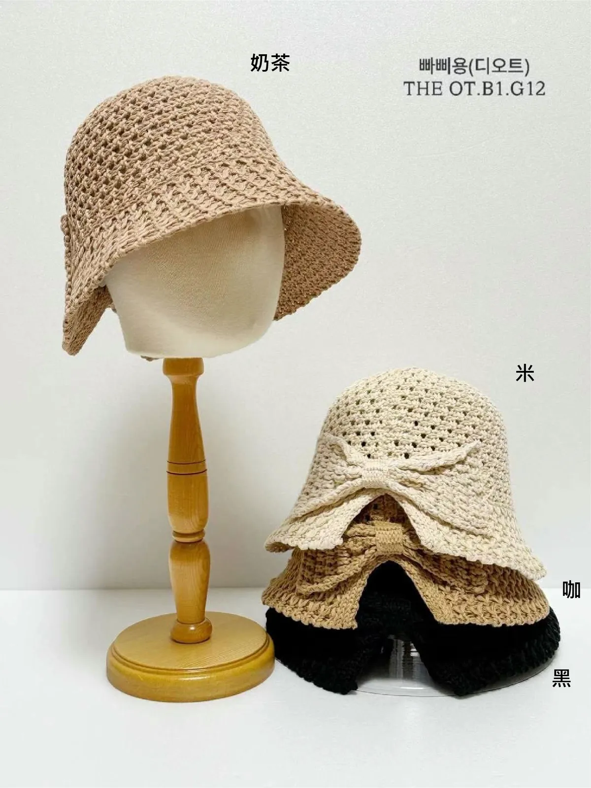 棉針織 同色系蝴蝶結 通風遮陽款 夏日合適