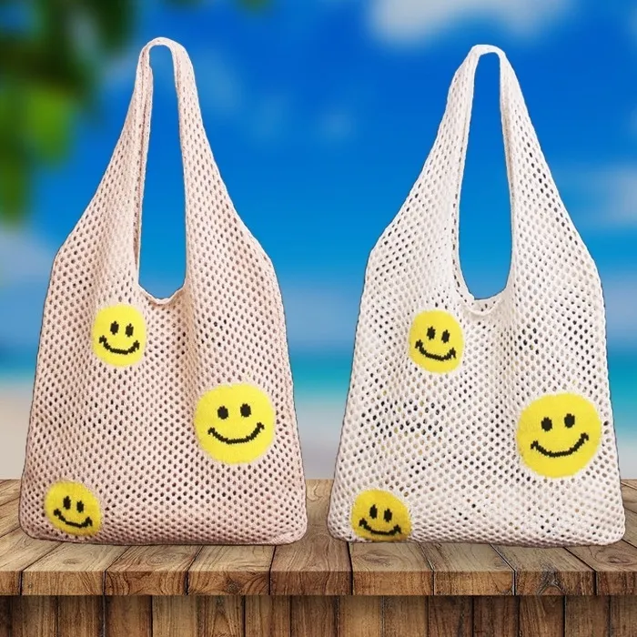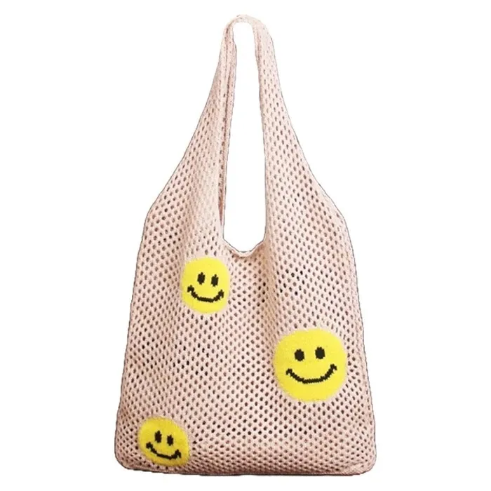 TH106潮流可愛笑臉針織提袋包 白 咖 綠 黑 官網價$420 線上價$390