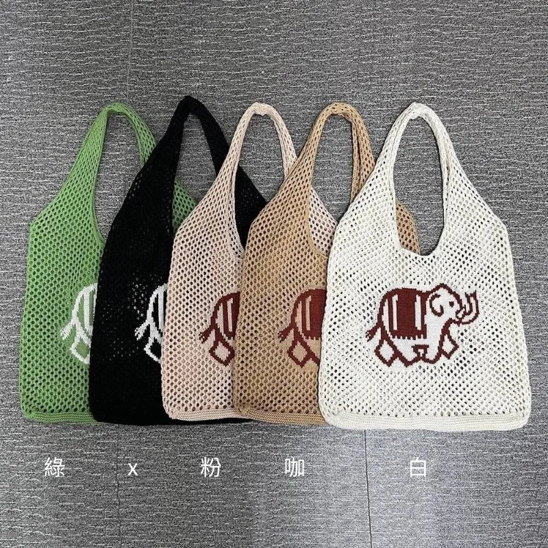 TH109可愛網狀簍空洞洞大象提袋包 白 咖 粉 綠 官網價$429 線上價$399