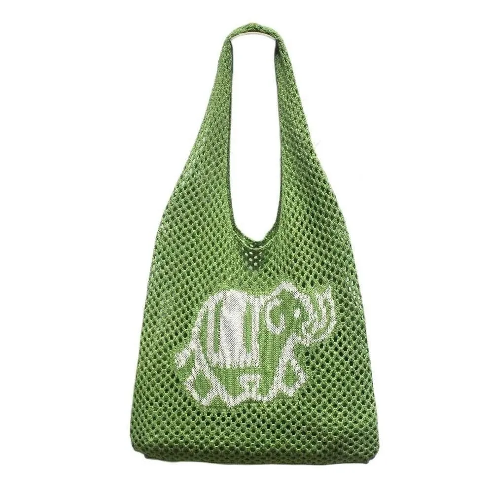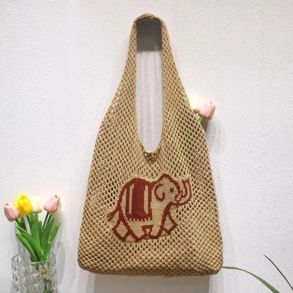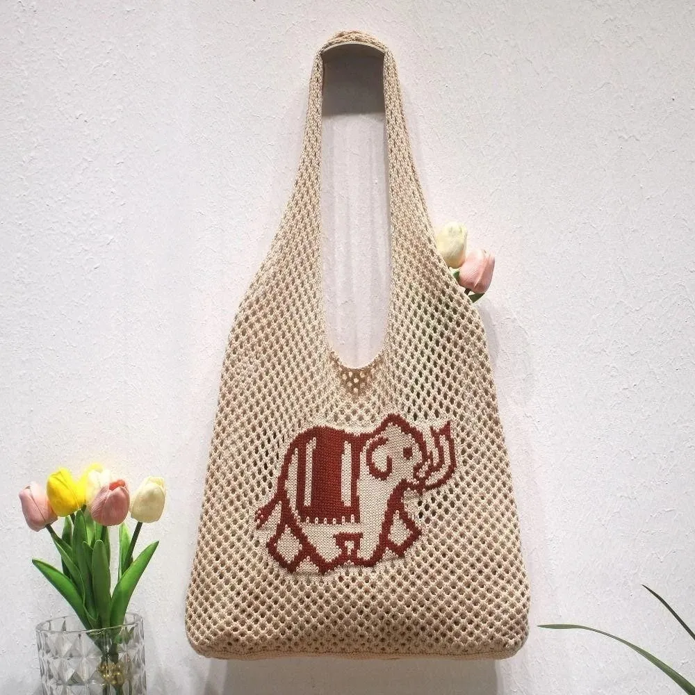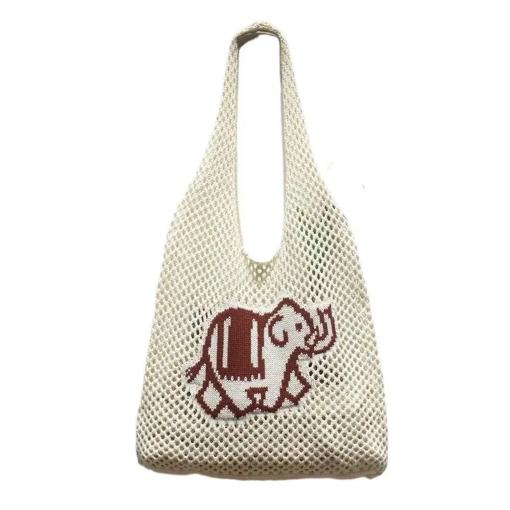 棉 精緻勾織 輕盈感簍空洞洞 可提可肩背 可愛雙面都單隻大象