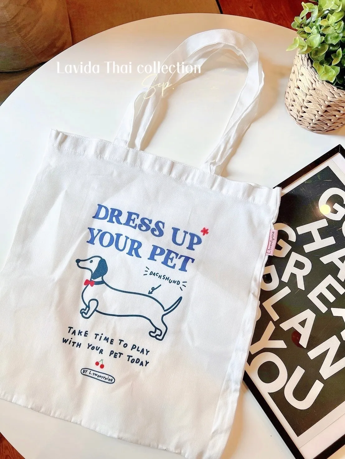 TH201 紅領帶臘腸狗帆布包 官網價$220 線上價$190