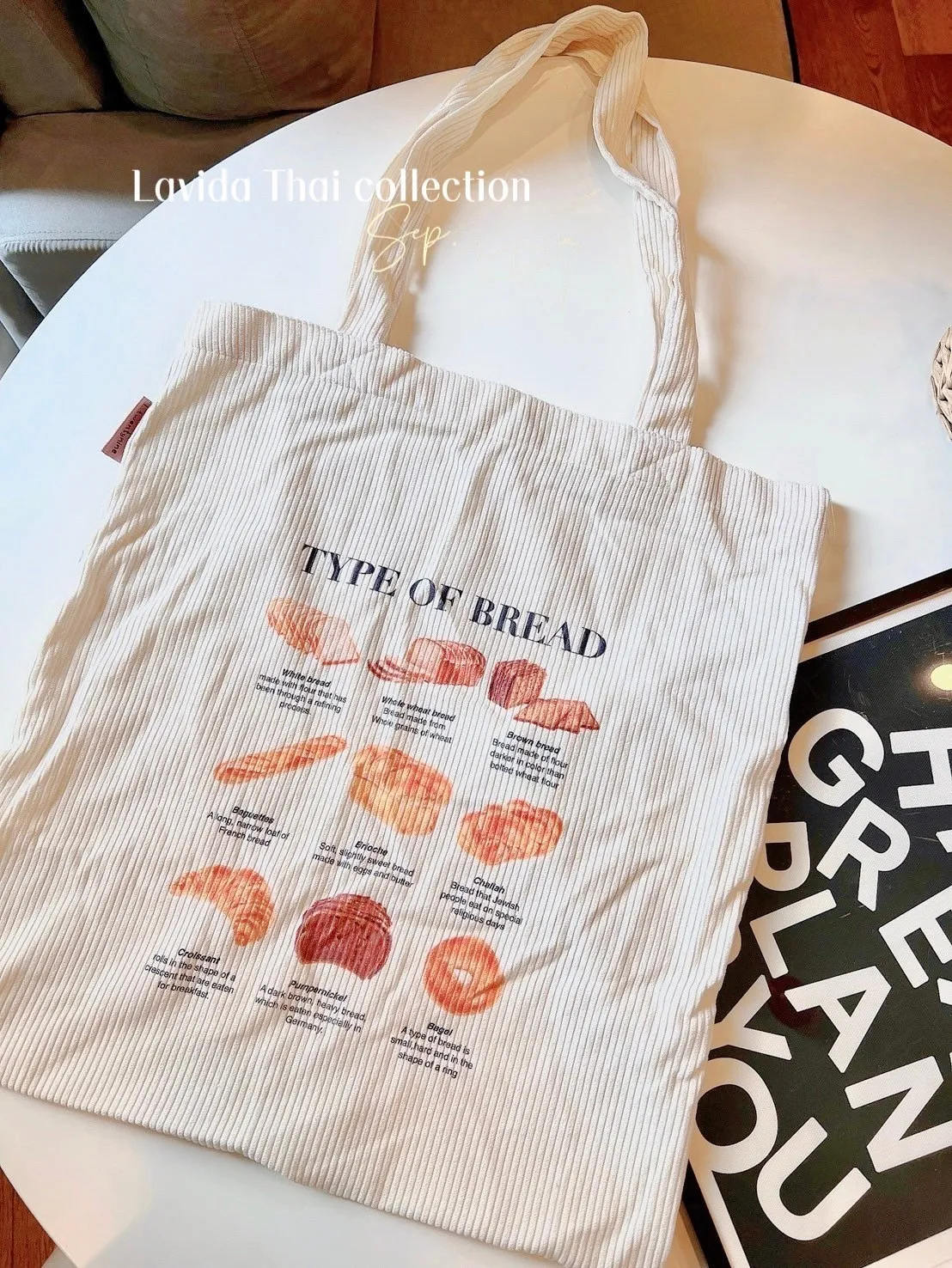 TH210可愛好吃好多麵包燈芯絨購物袋